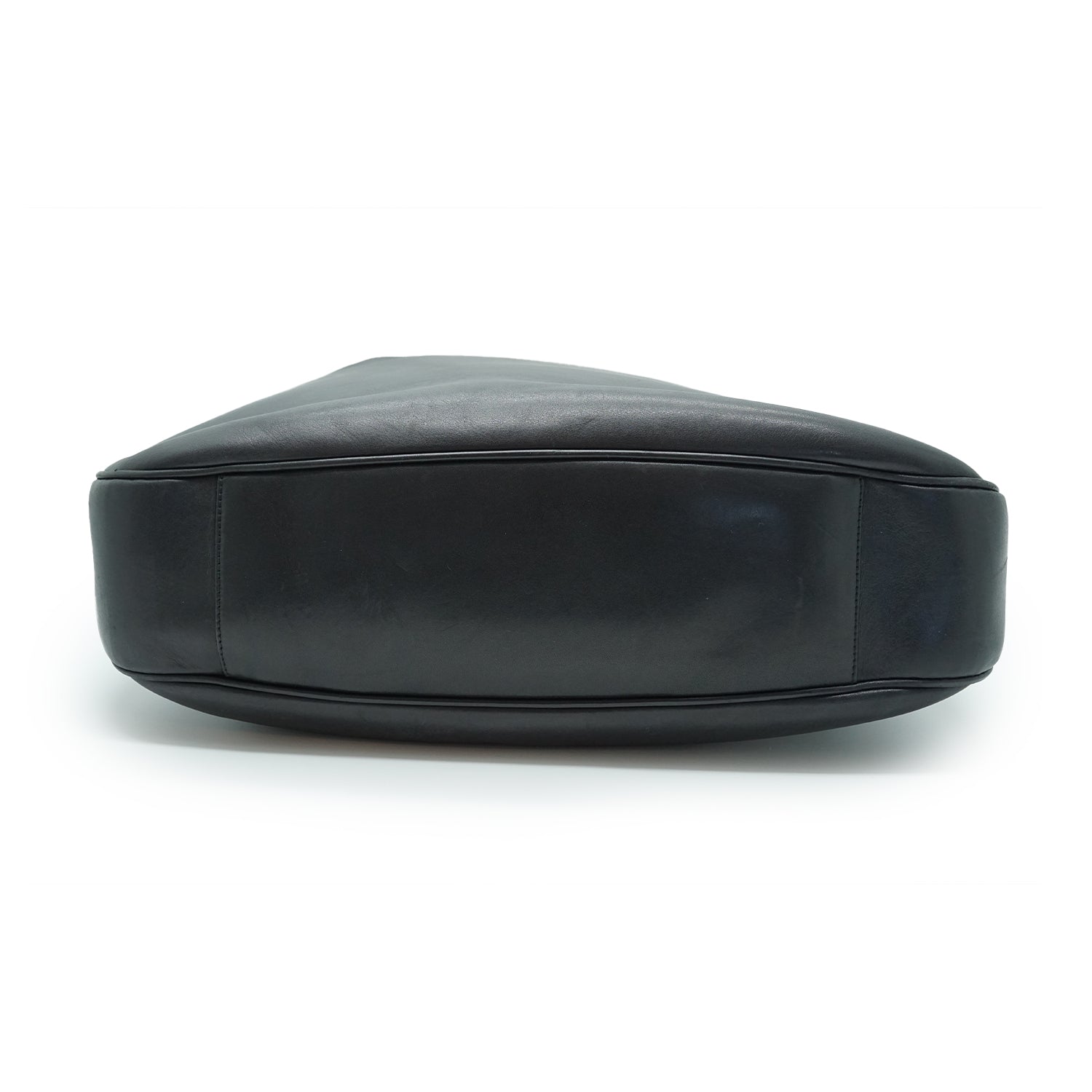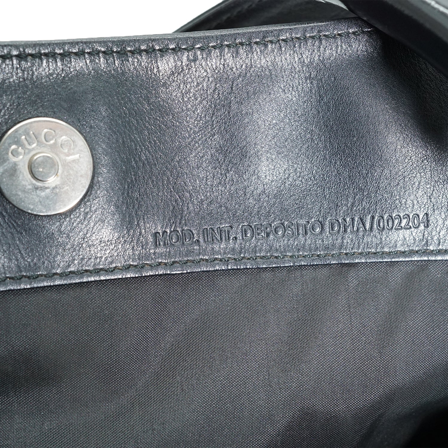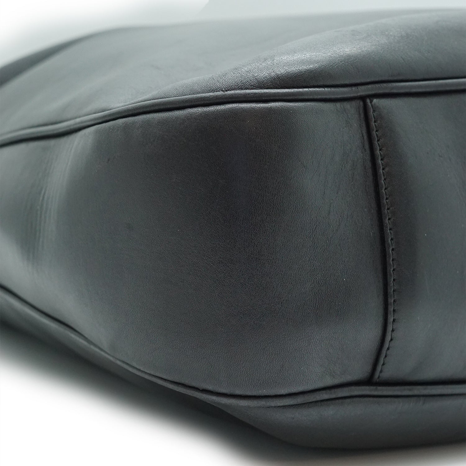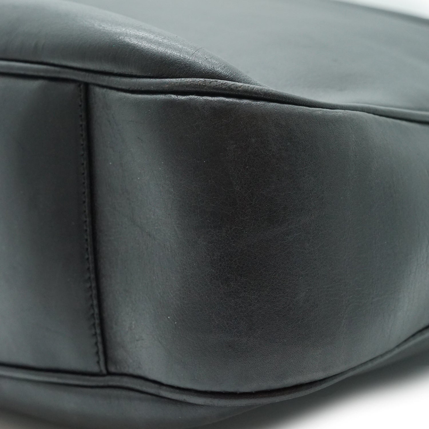 Discoloration: Some hardware tarnish, minor leather discoloration (upper area)