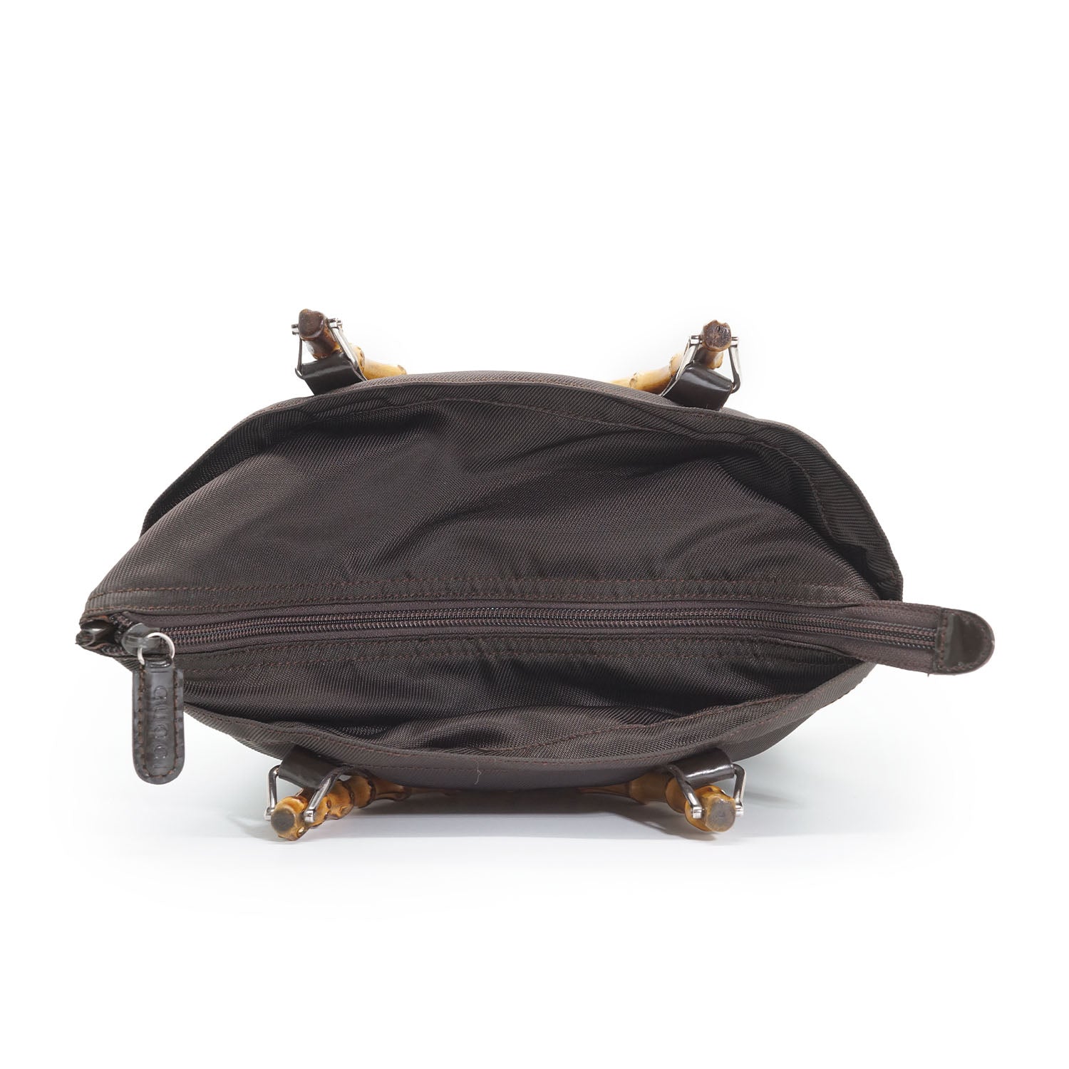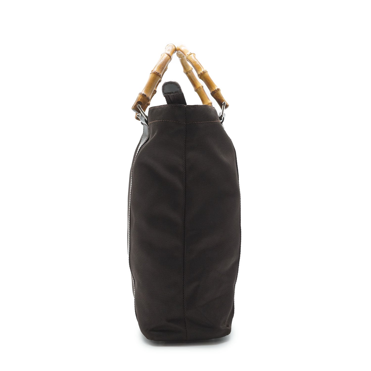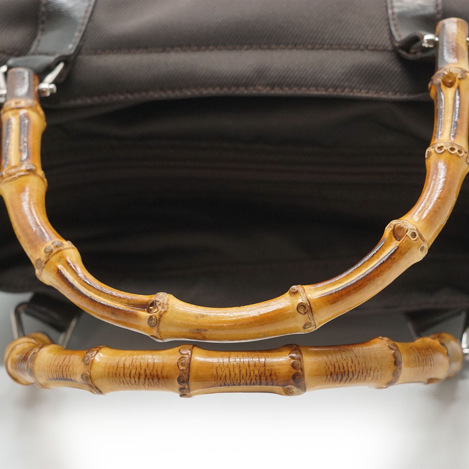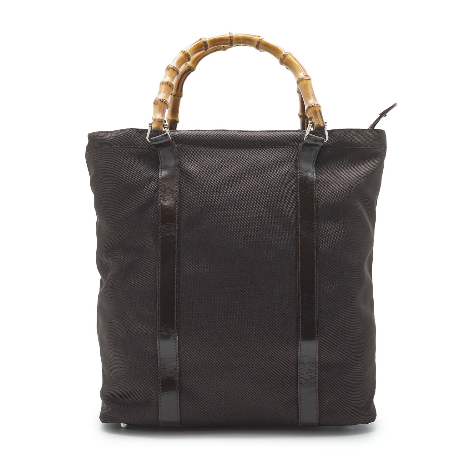 Vintage Bamboo Nylon Vertical Tote Dark Brown Nylon, Leather, PVC
