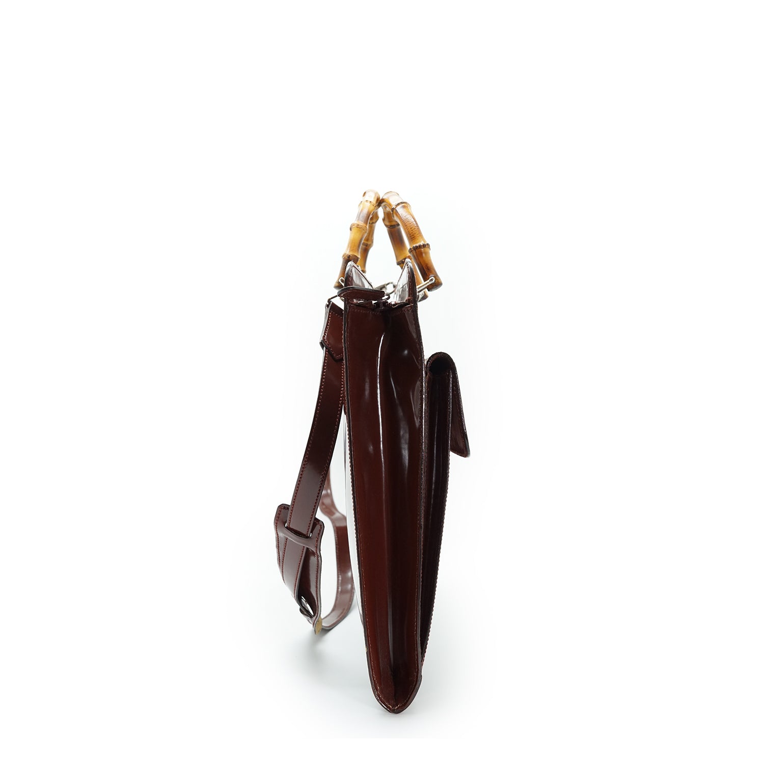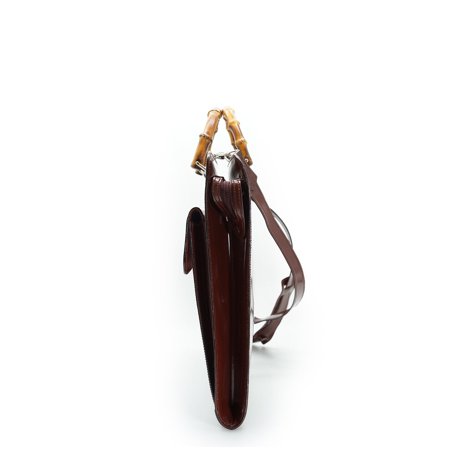Vintage Bamboo Patent Leather Briefcase Burgundy red Patent leather, Suede