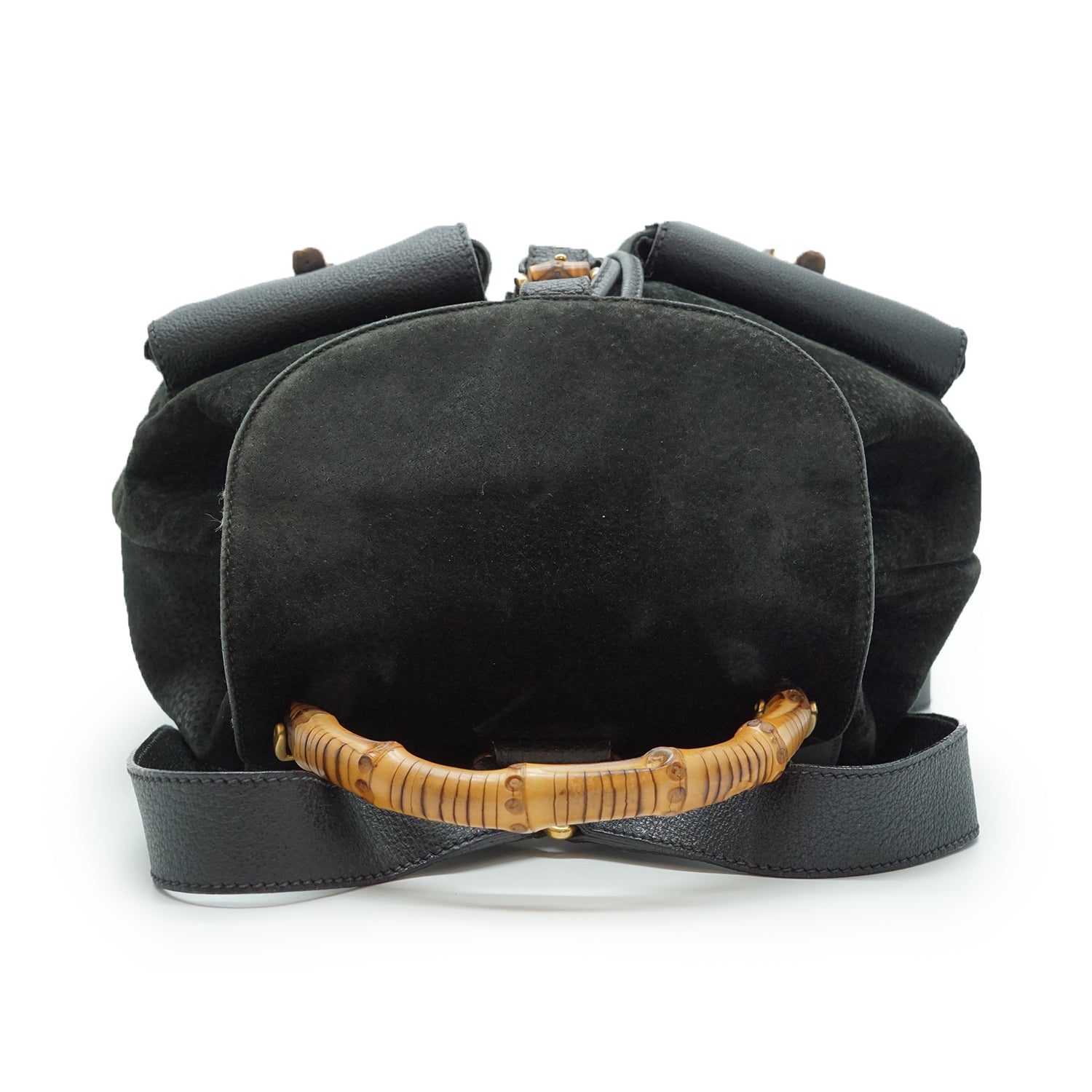Vintage Bamboo Suede Backpack GM Black Suede, Leather