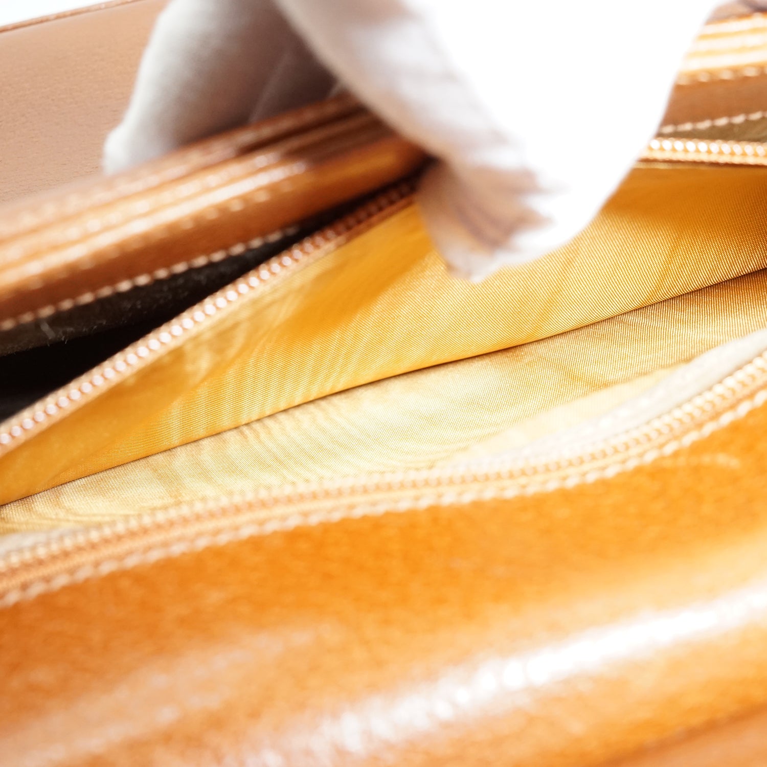 Peeling: Minor leather peeling on the outside (near the front clasp), small leather crack on one bottom corner