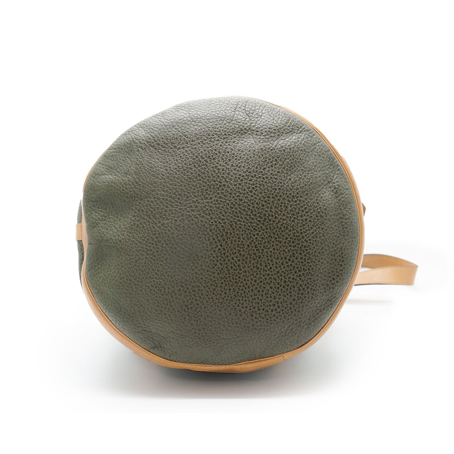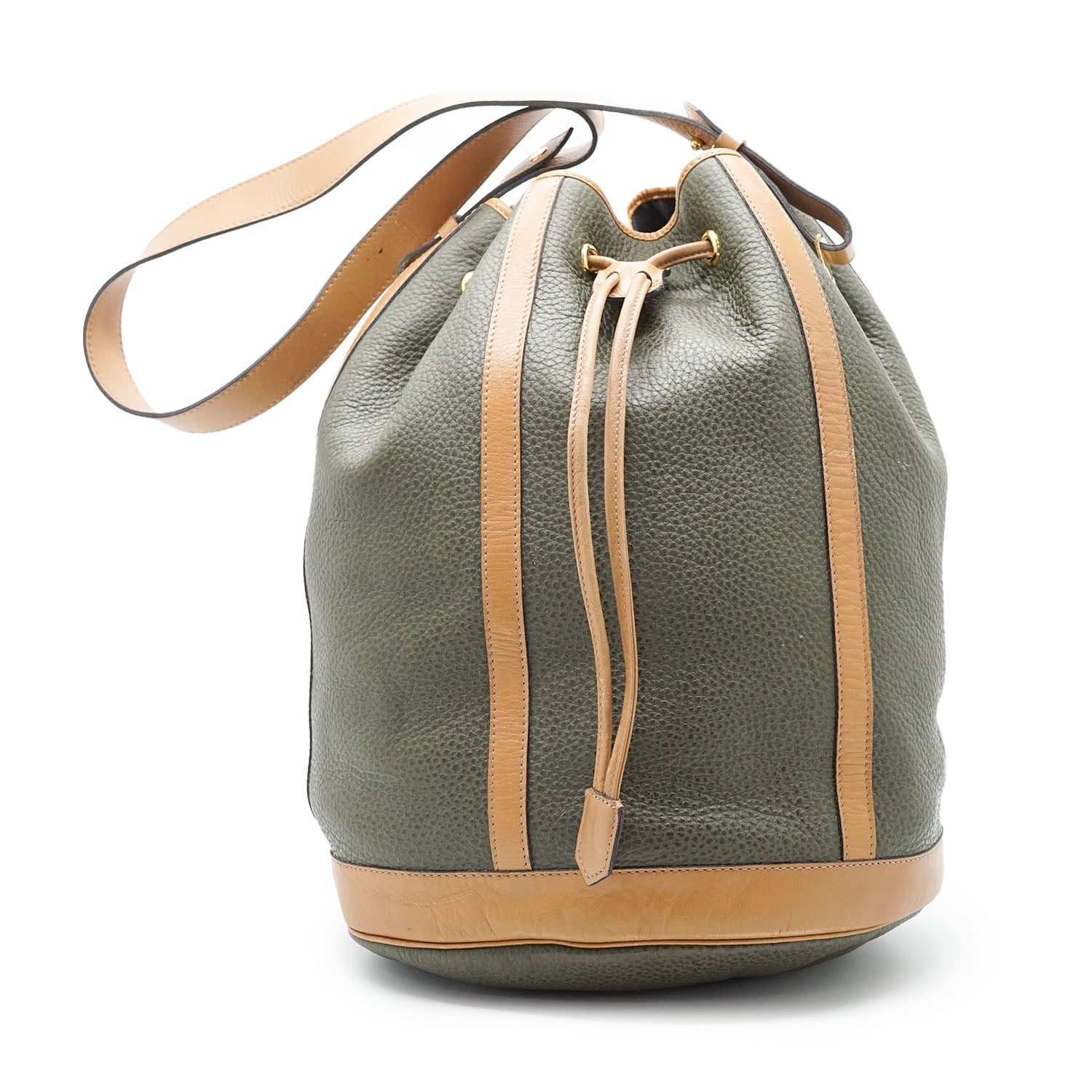 Vintage CD Large Bucket Bag Khaki Green Leather