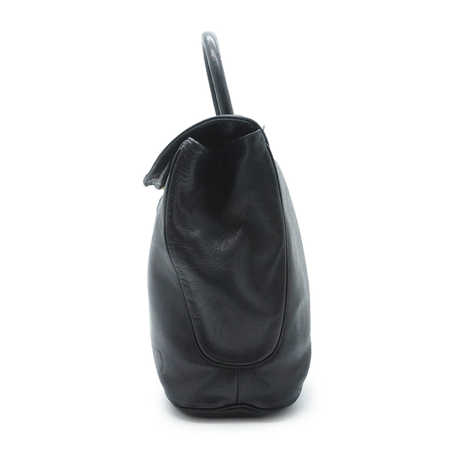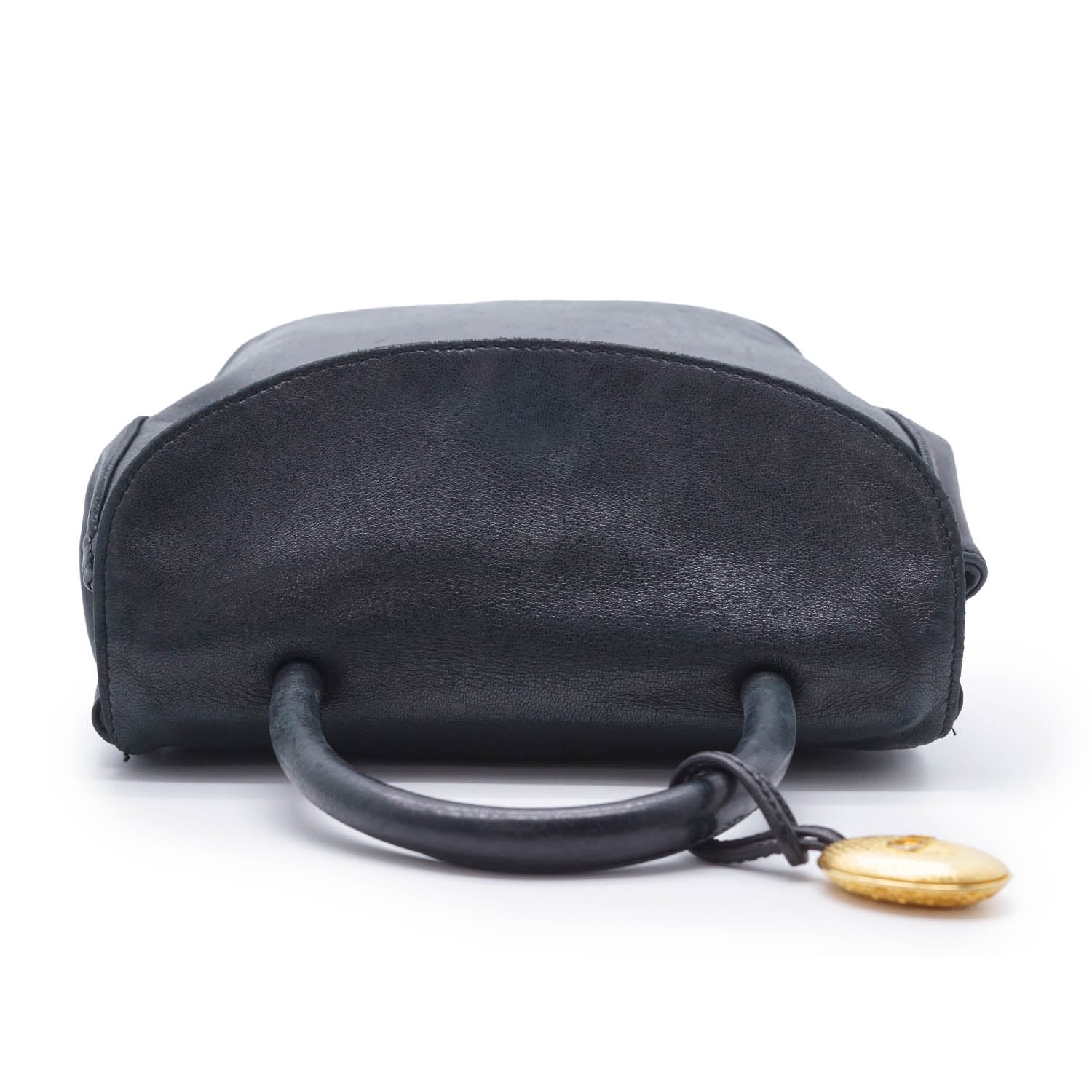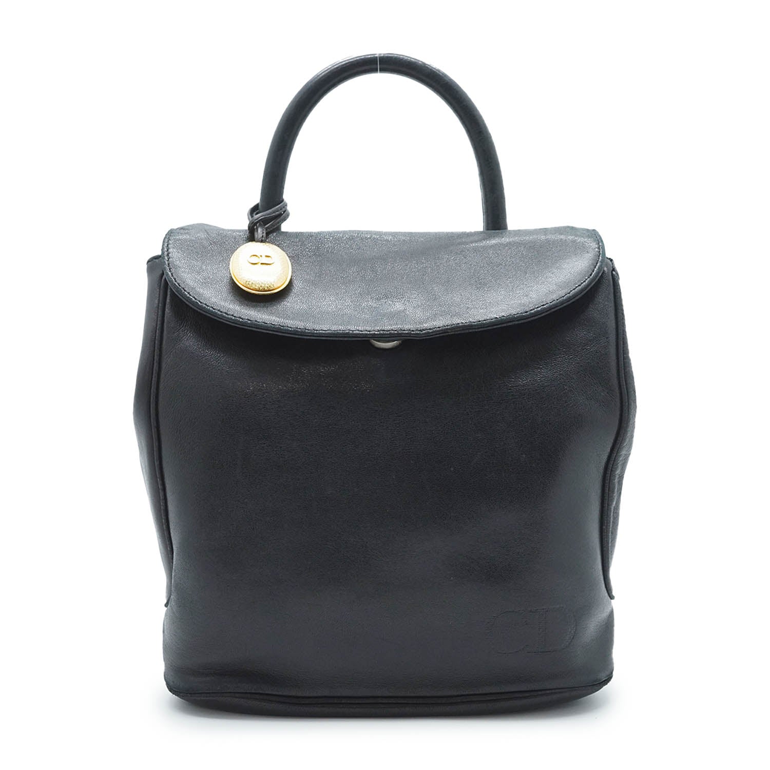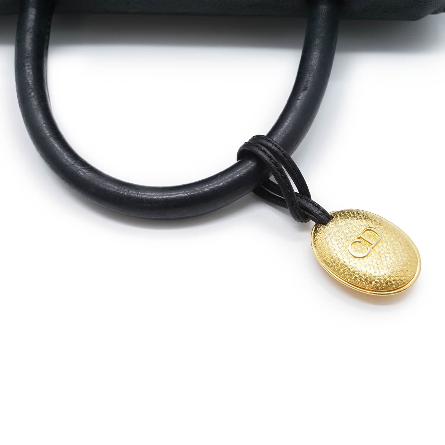 Vintage CD Logo Top Handle Bag with Charm Black Leather