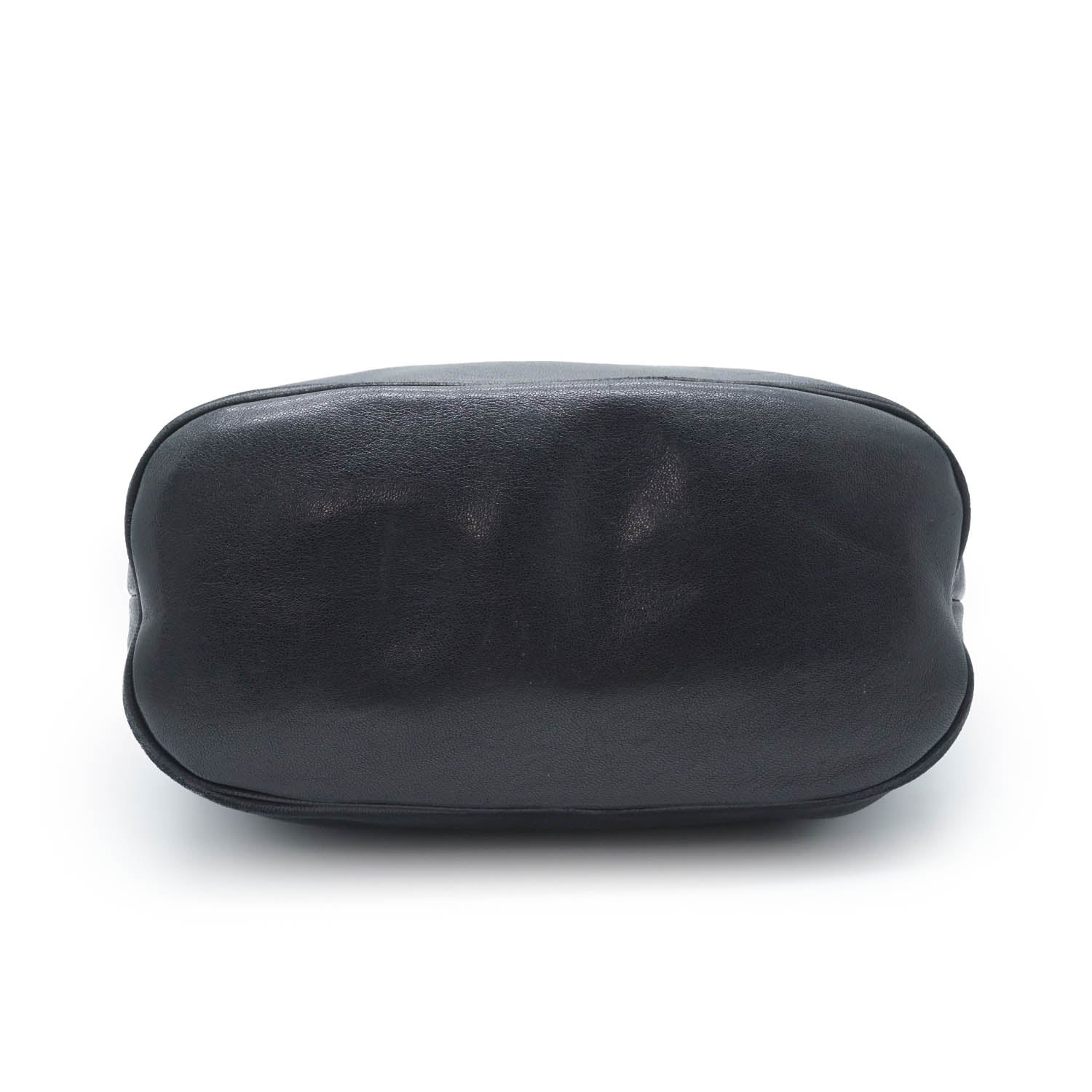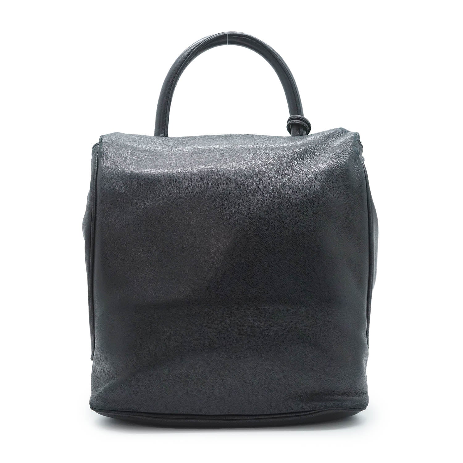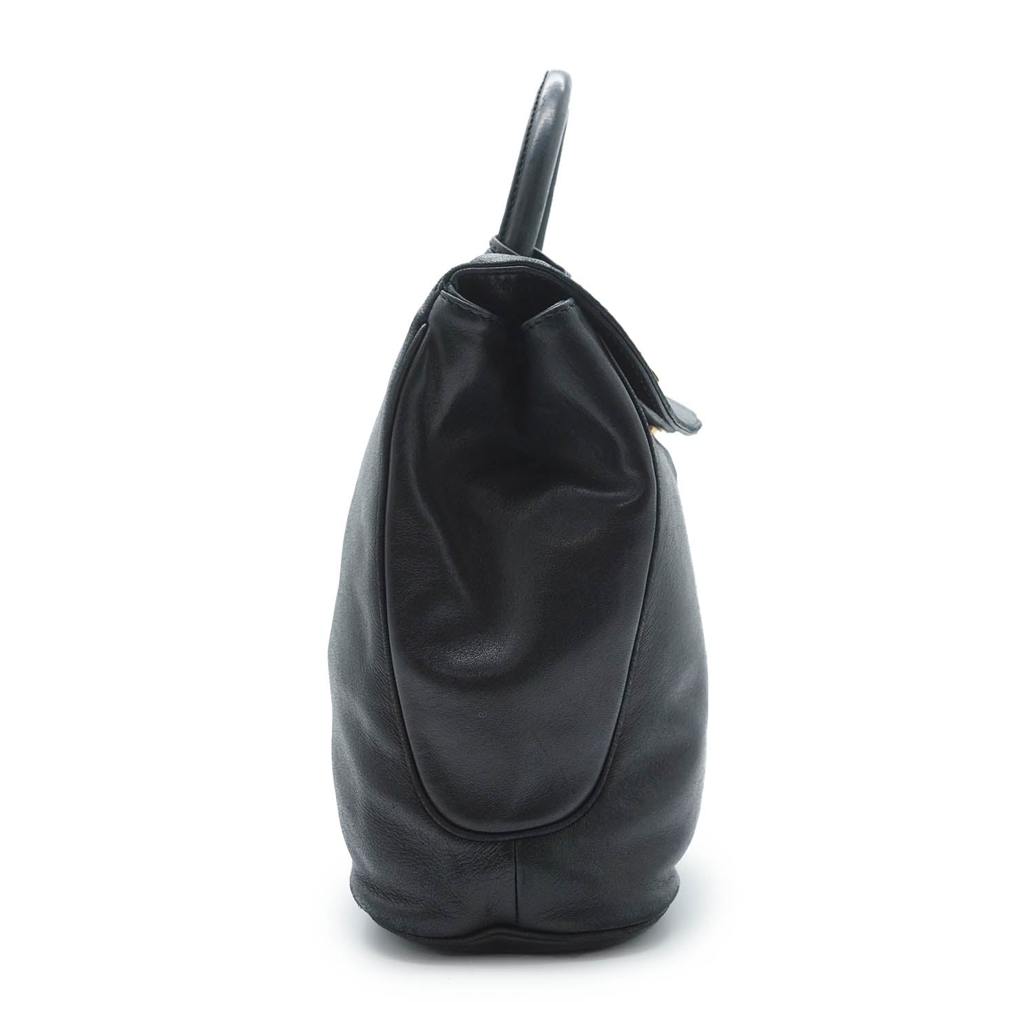 Vintage CD Logo Top Handle Bag with Charm Black Leather