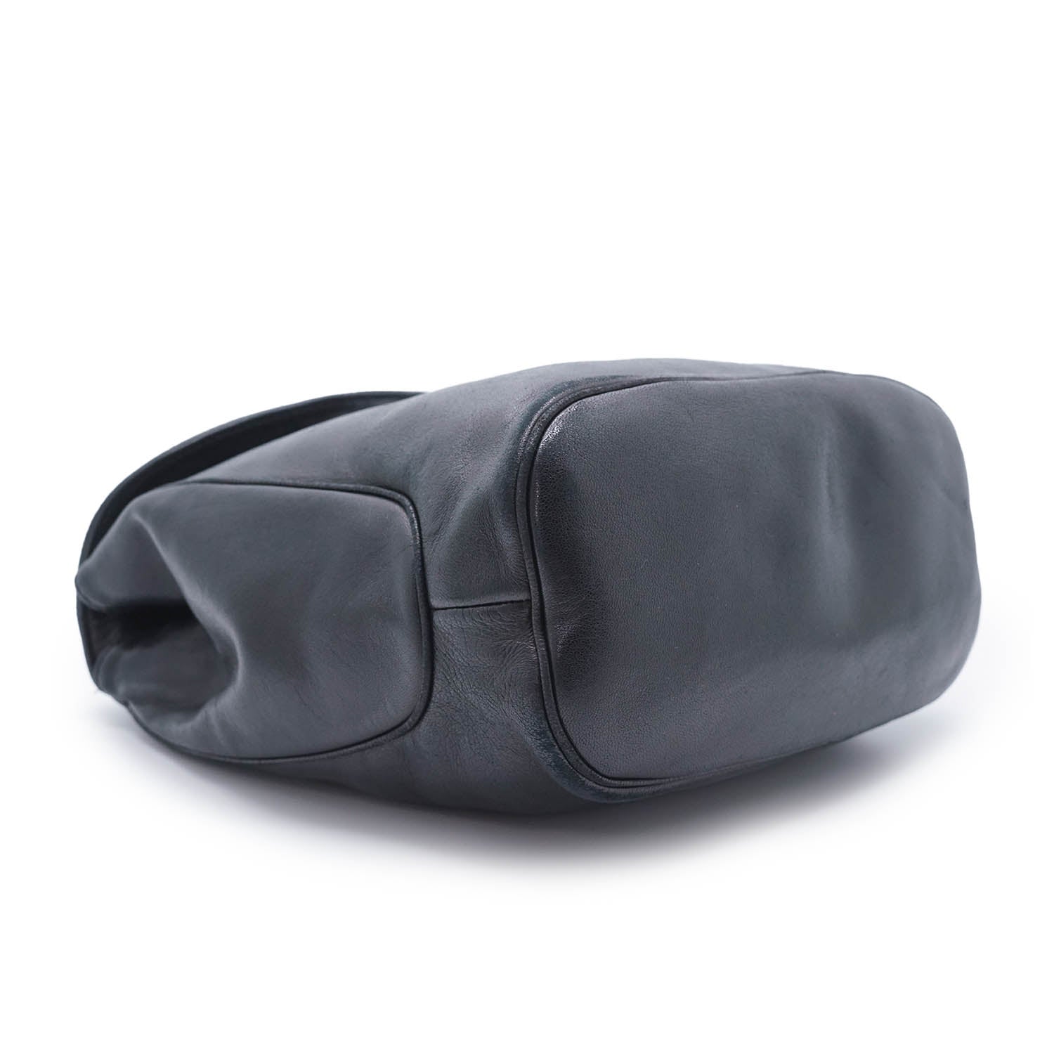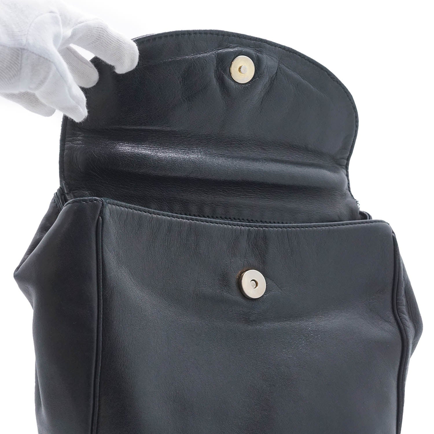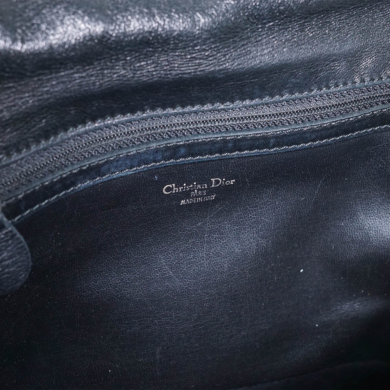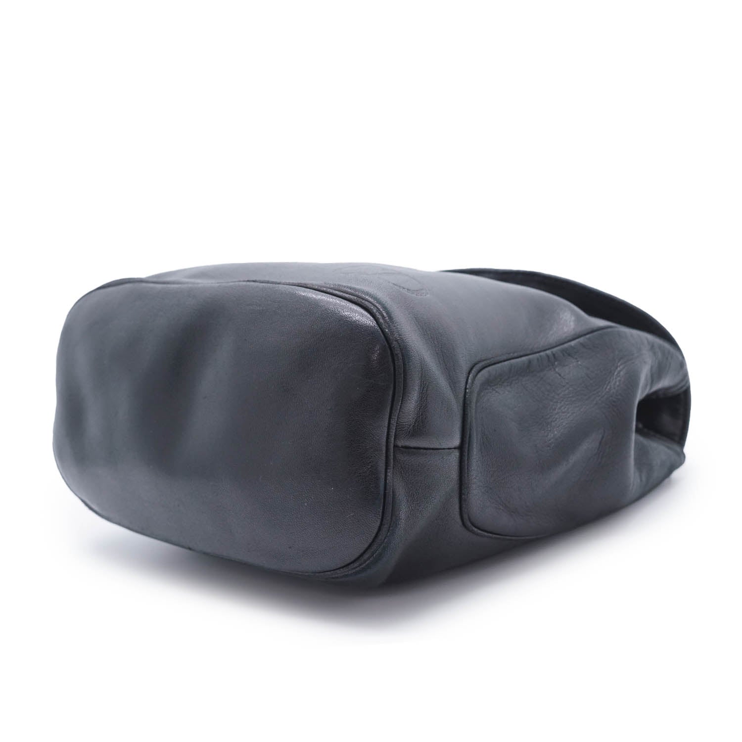 Vintage CD Logo Top Handle Bag with Charm Black Leather