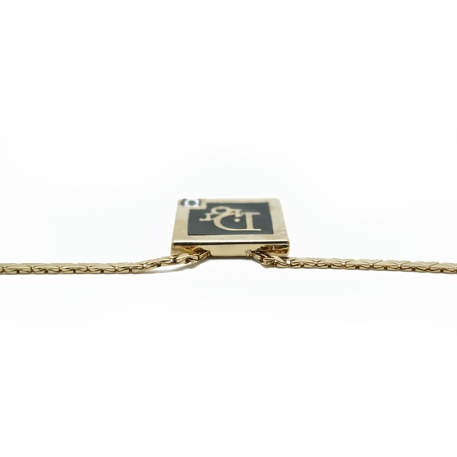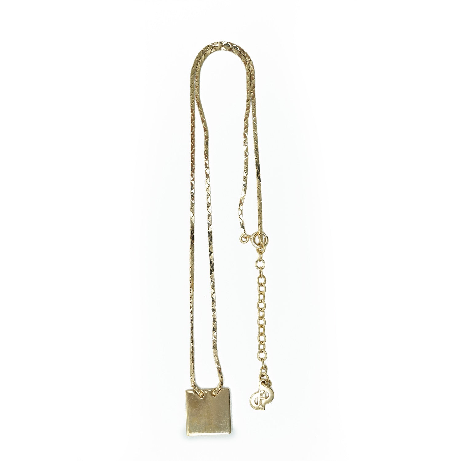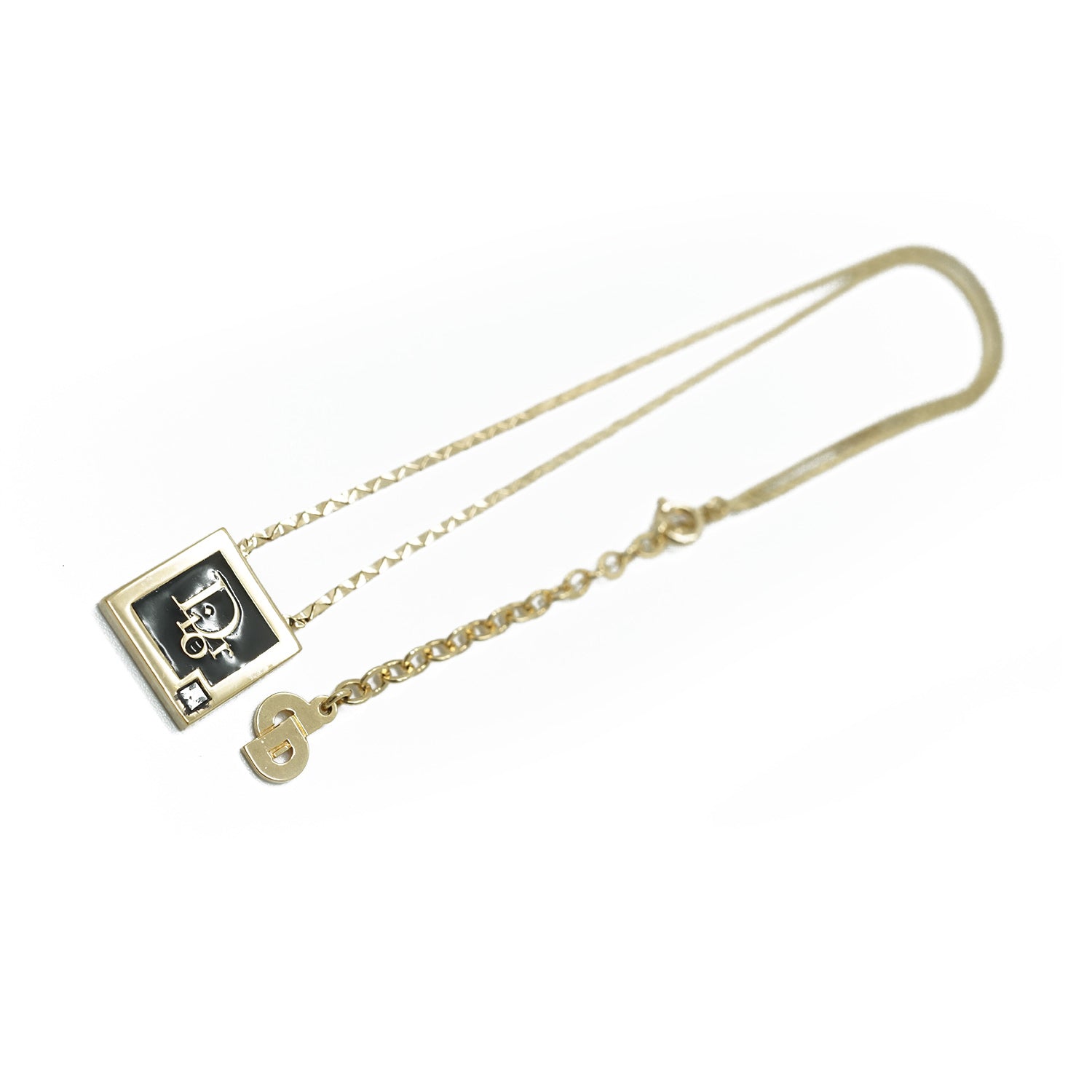 Vintage Dior Logo Square Plate Rhinestone Necklace Gold Brass