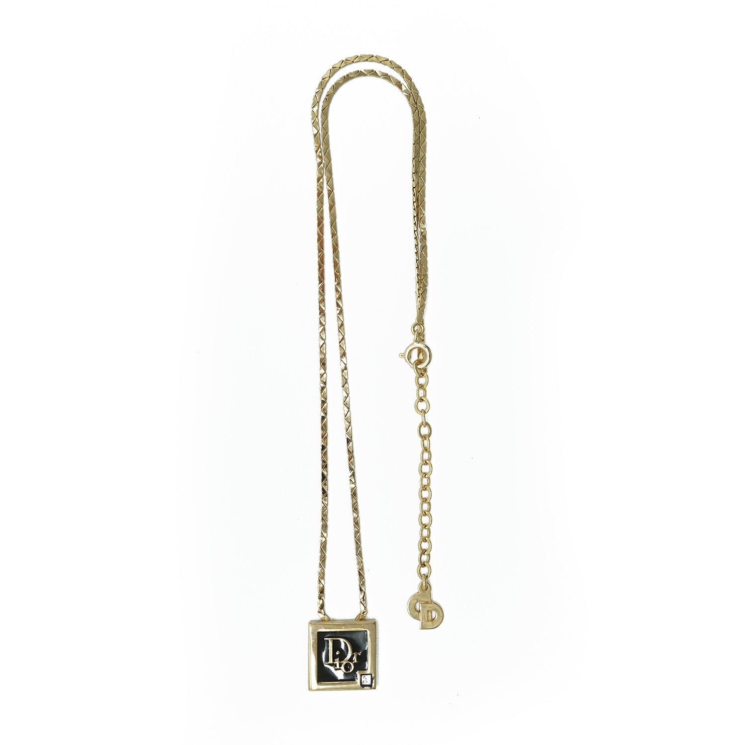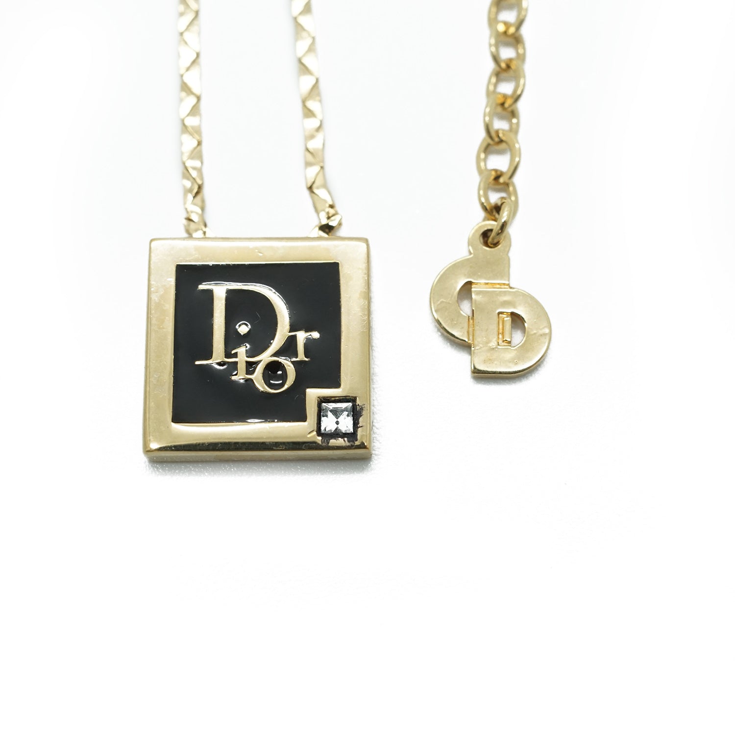 Vintage Dior Logo Square Plate Rhinestone Necklace