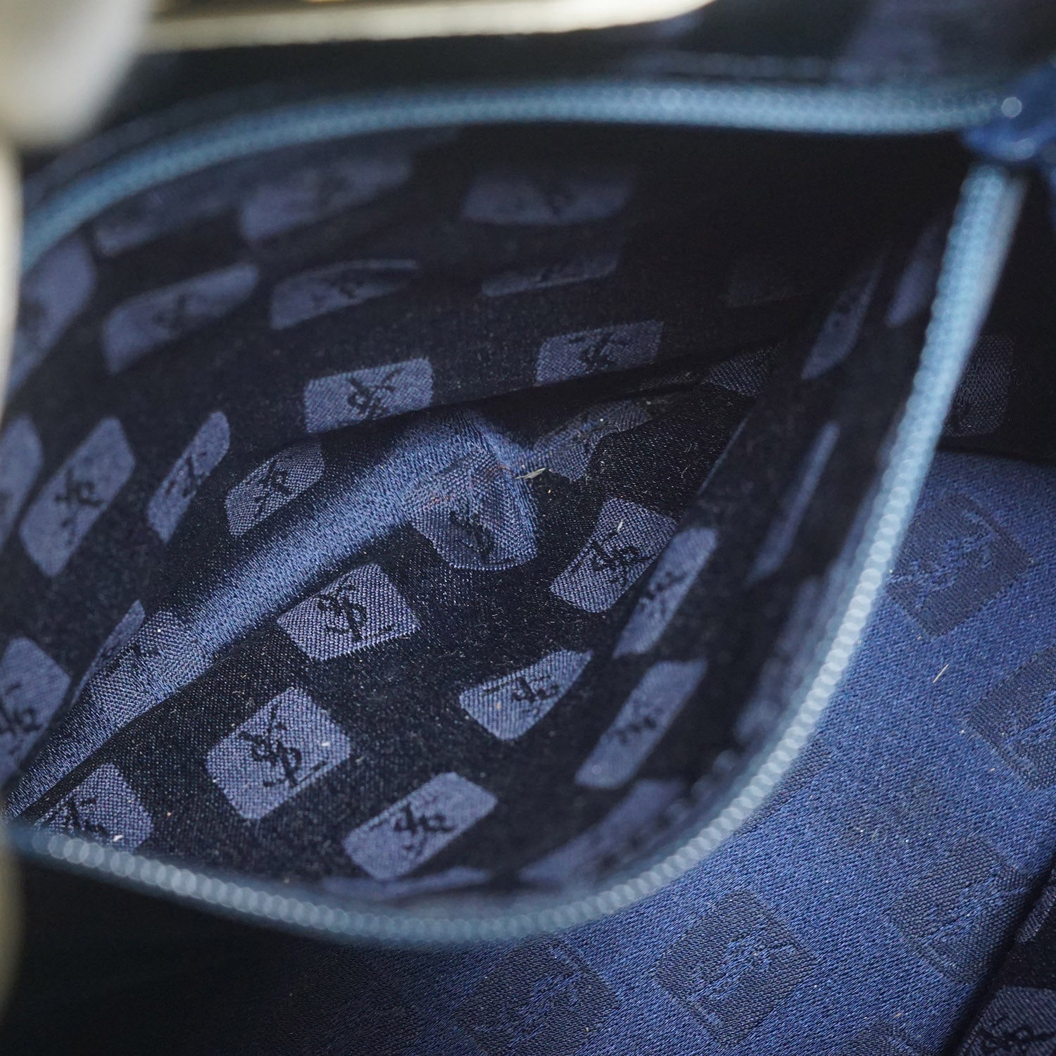 Discoloration: Visible hardware tarnish, some leather discoloration all along the edges (at the bottom)