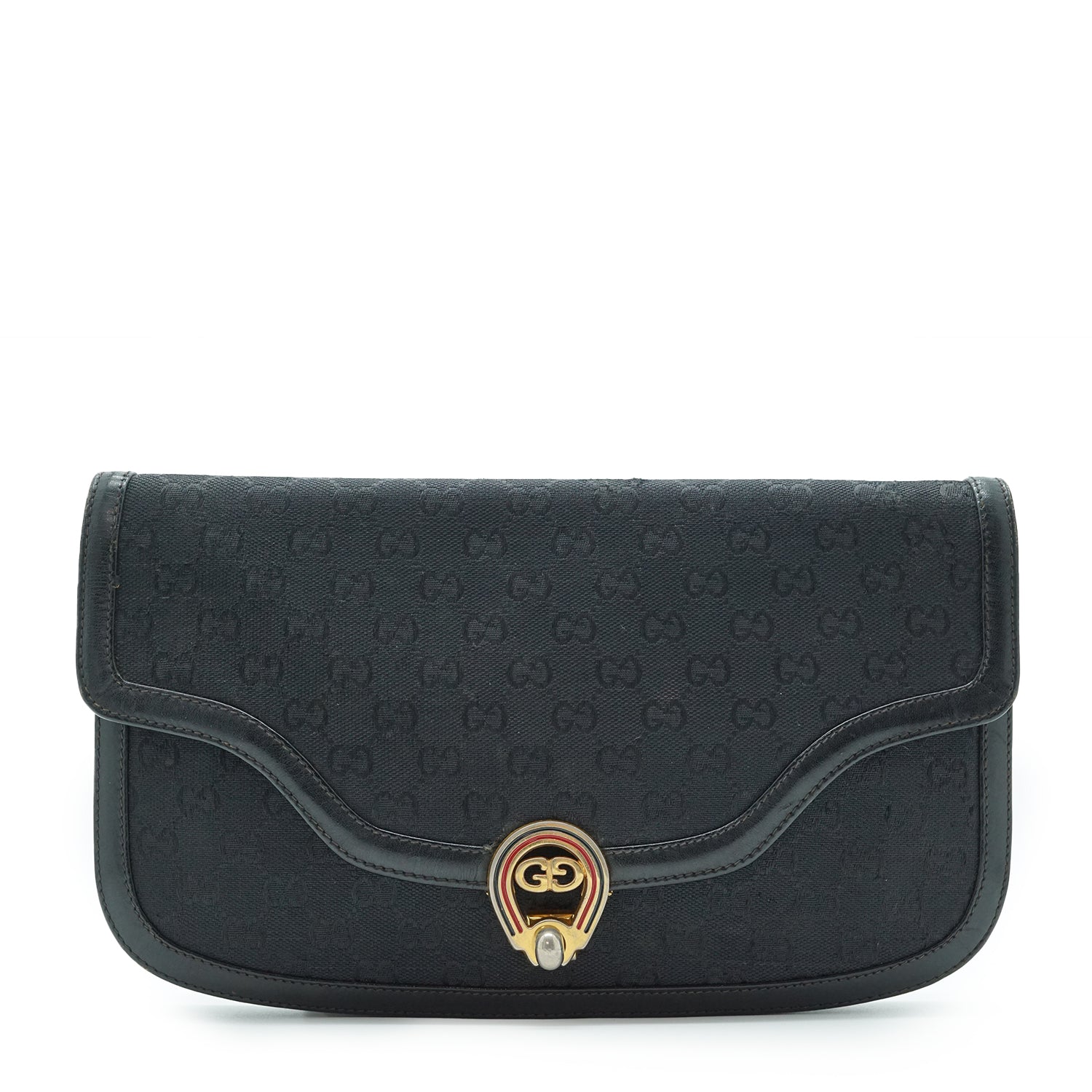 Vintage GG Canvas Gucci Boutique Edition Clutch Black Canvas, Leather
