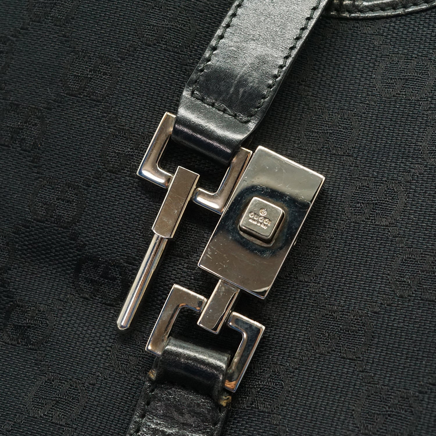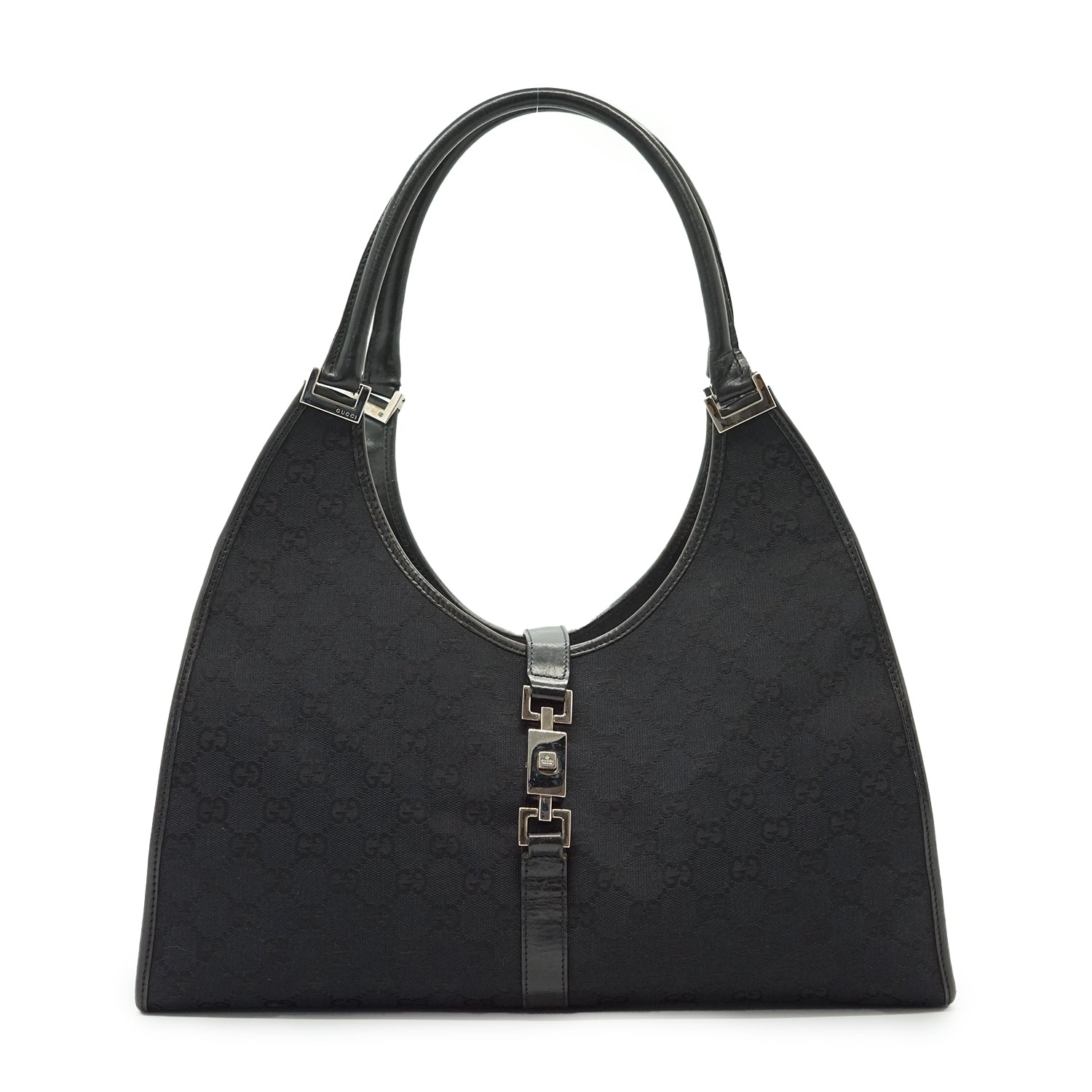 Vintage GG Canvas Jackie Shoulder Bag Black Canvas, Leather