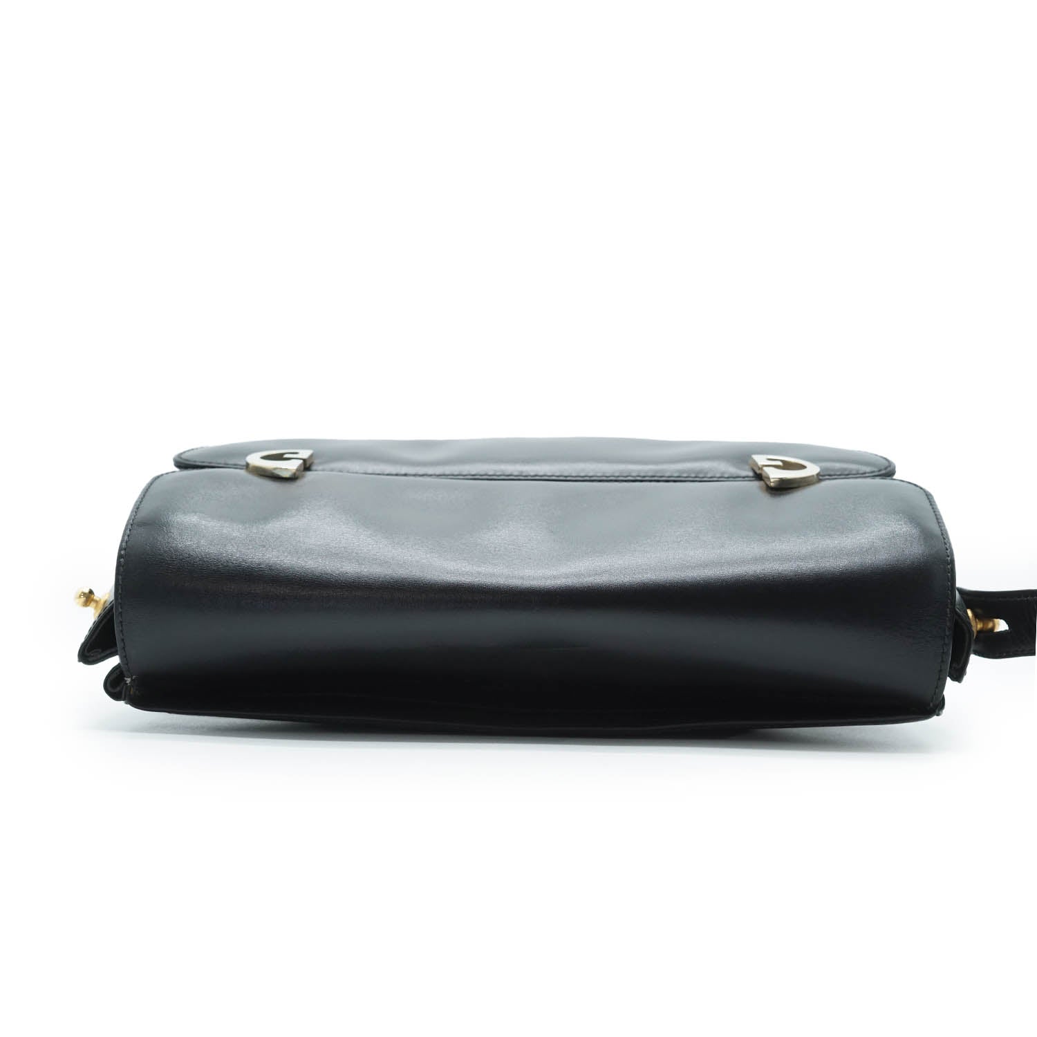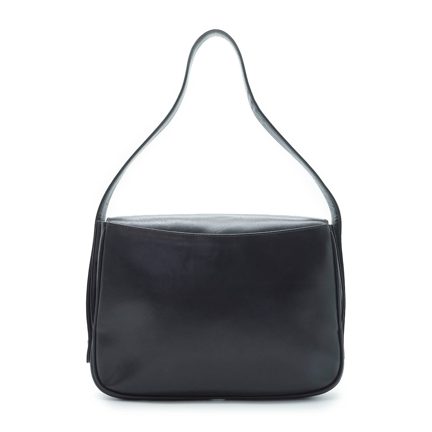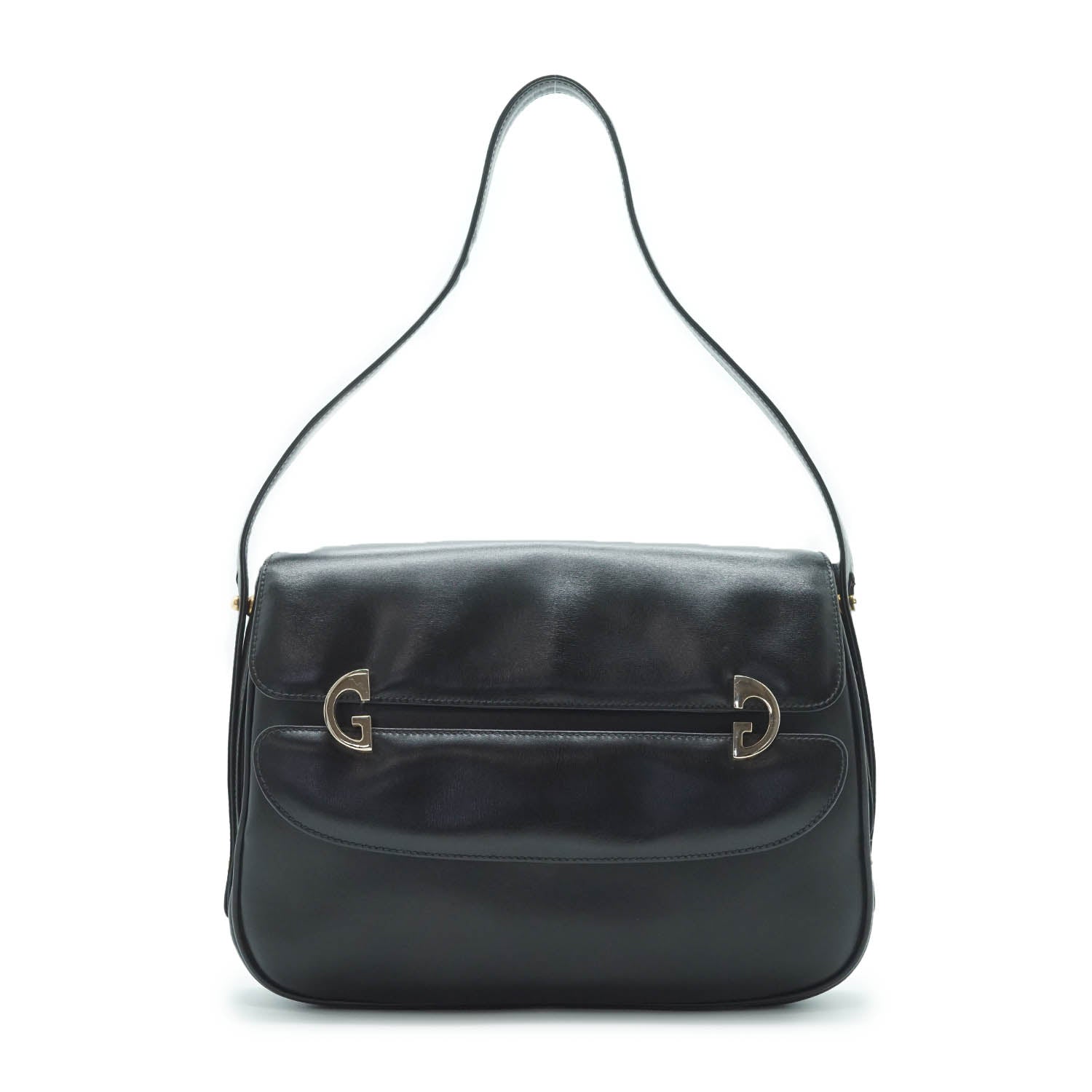 Vintage GG Hardware Cut-out Flap Leather Shoulder Bag Black Leather