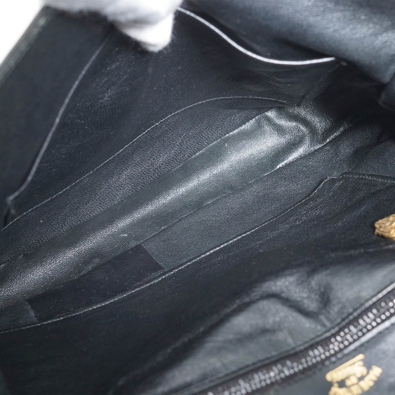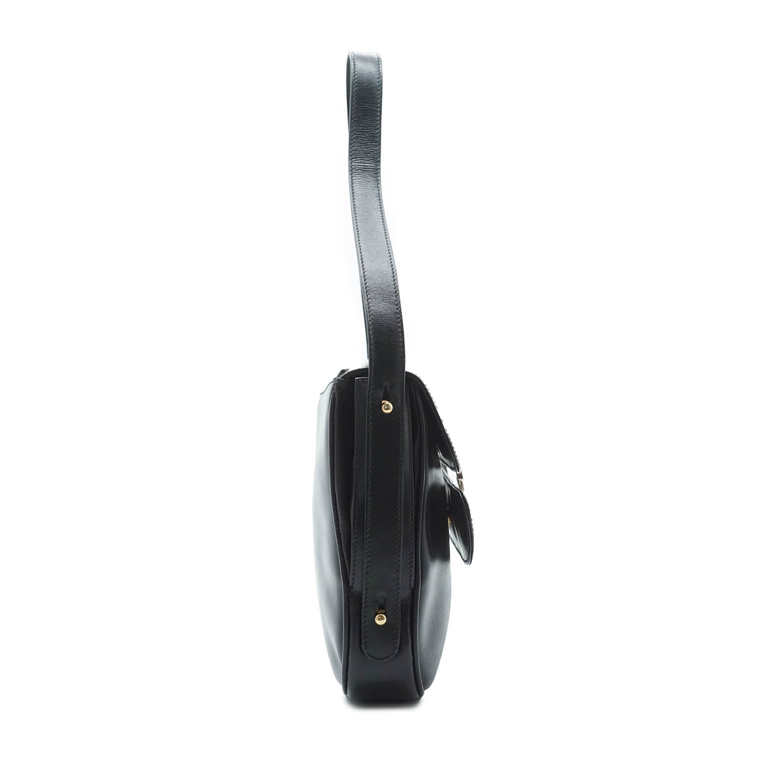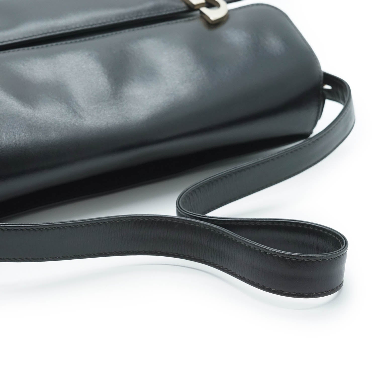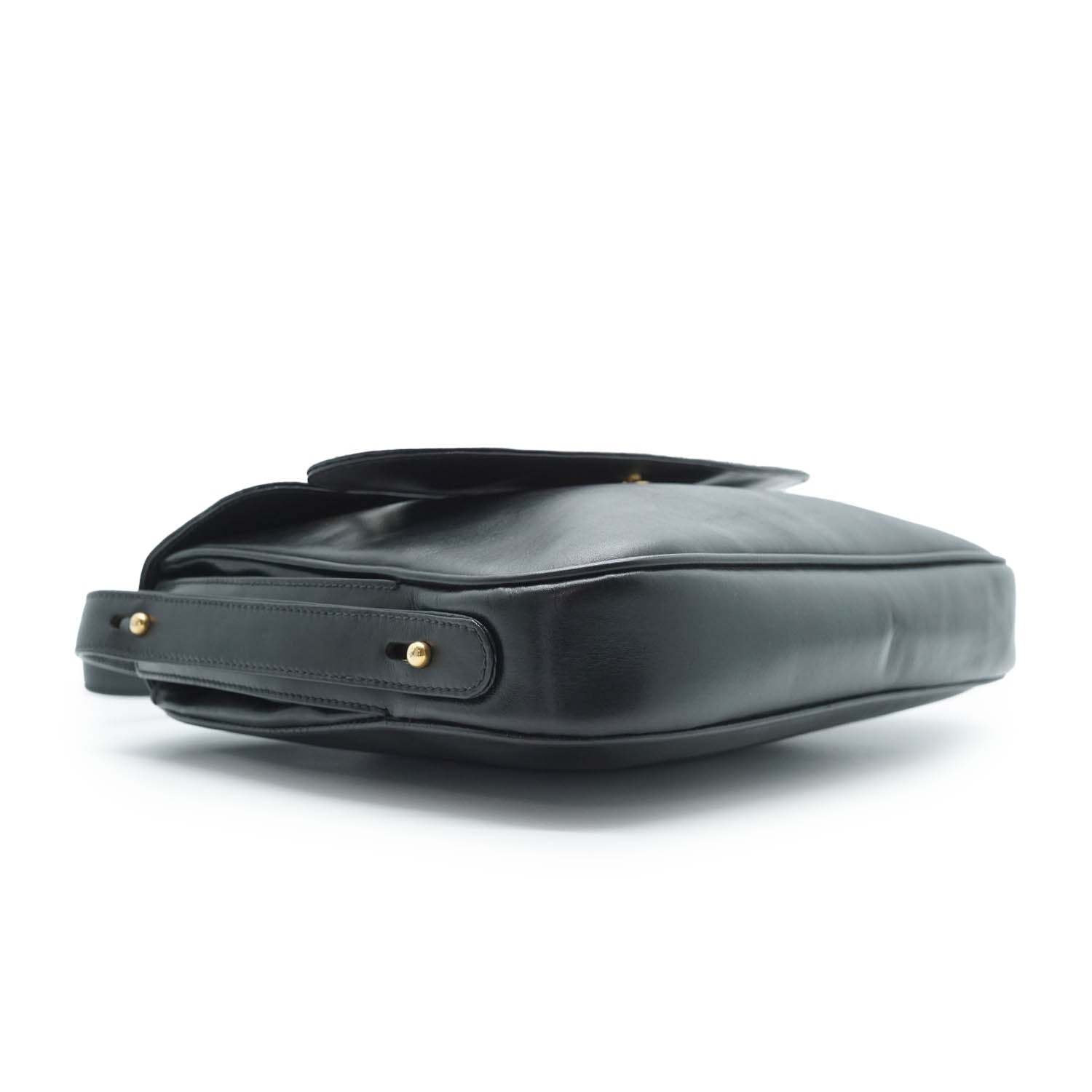 Vintage GG Hardware Cut-out Flap Leather Shoulder Bag Black Leather