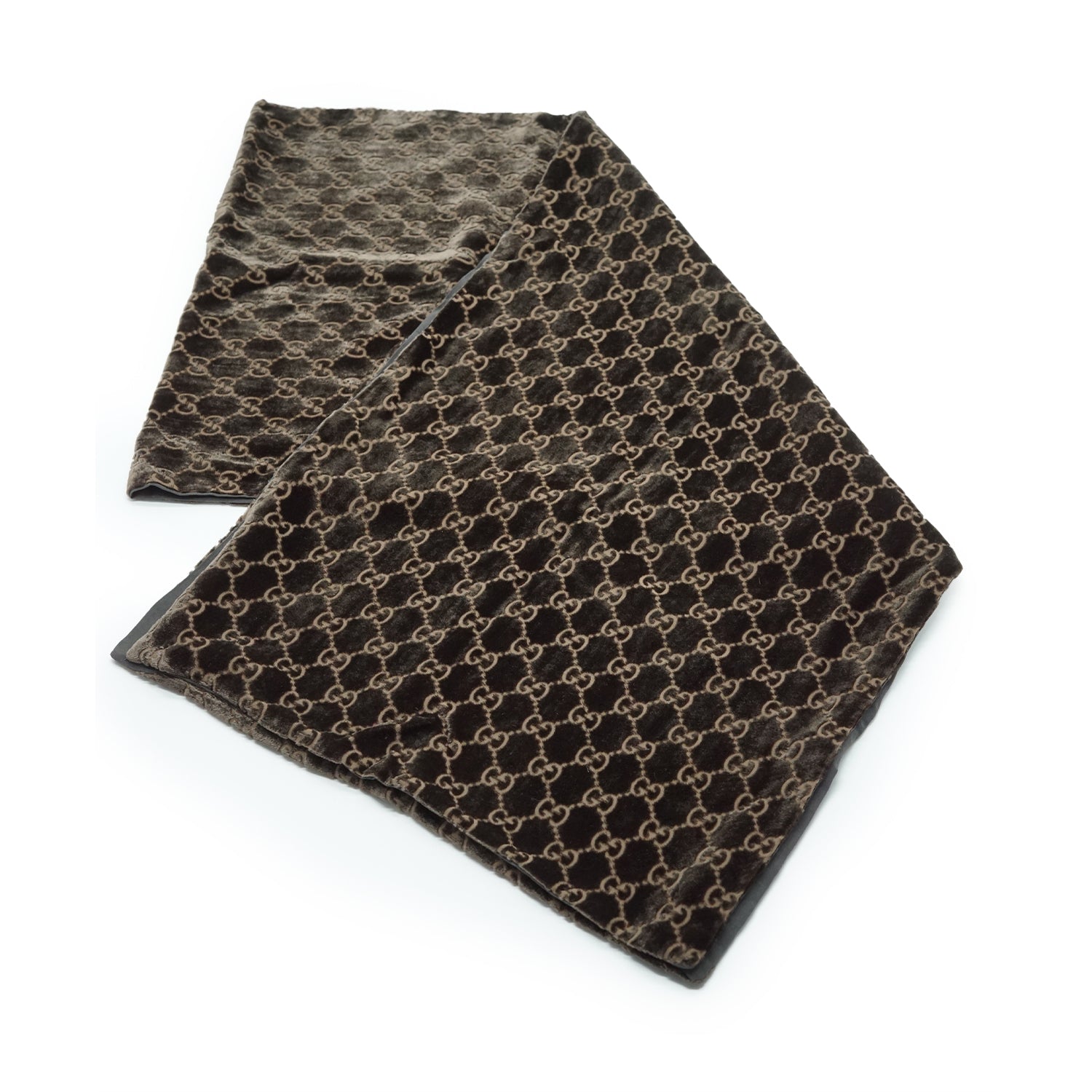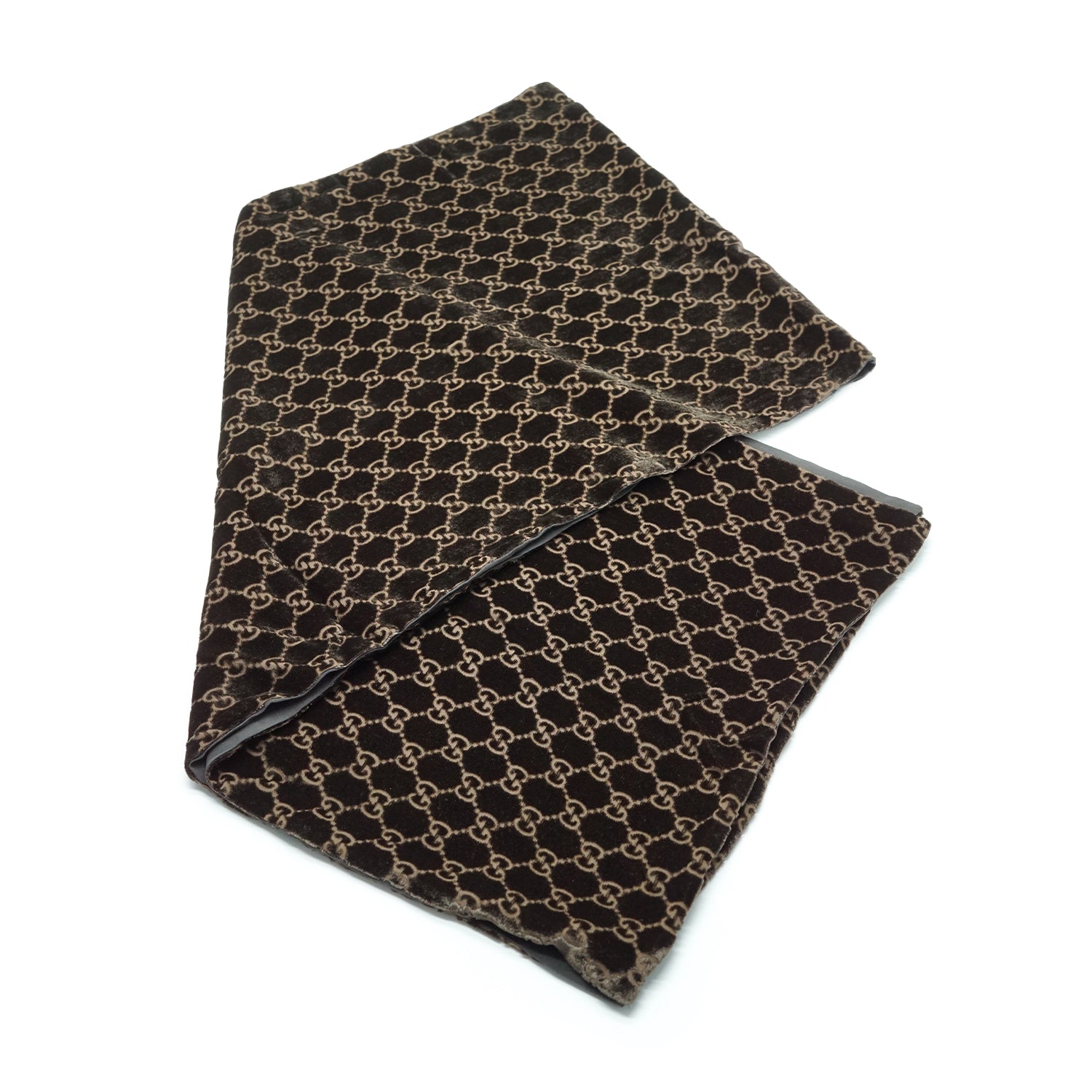 Vintage GG Silk Velvet Scarf Dark brown Silk, Synthetic