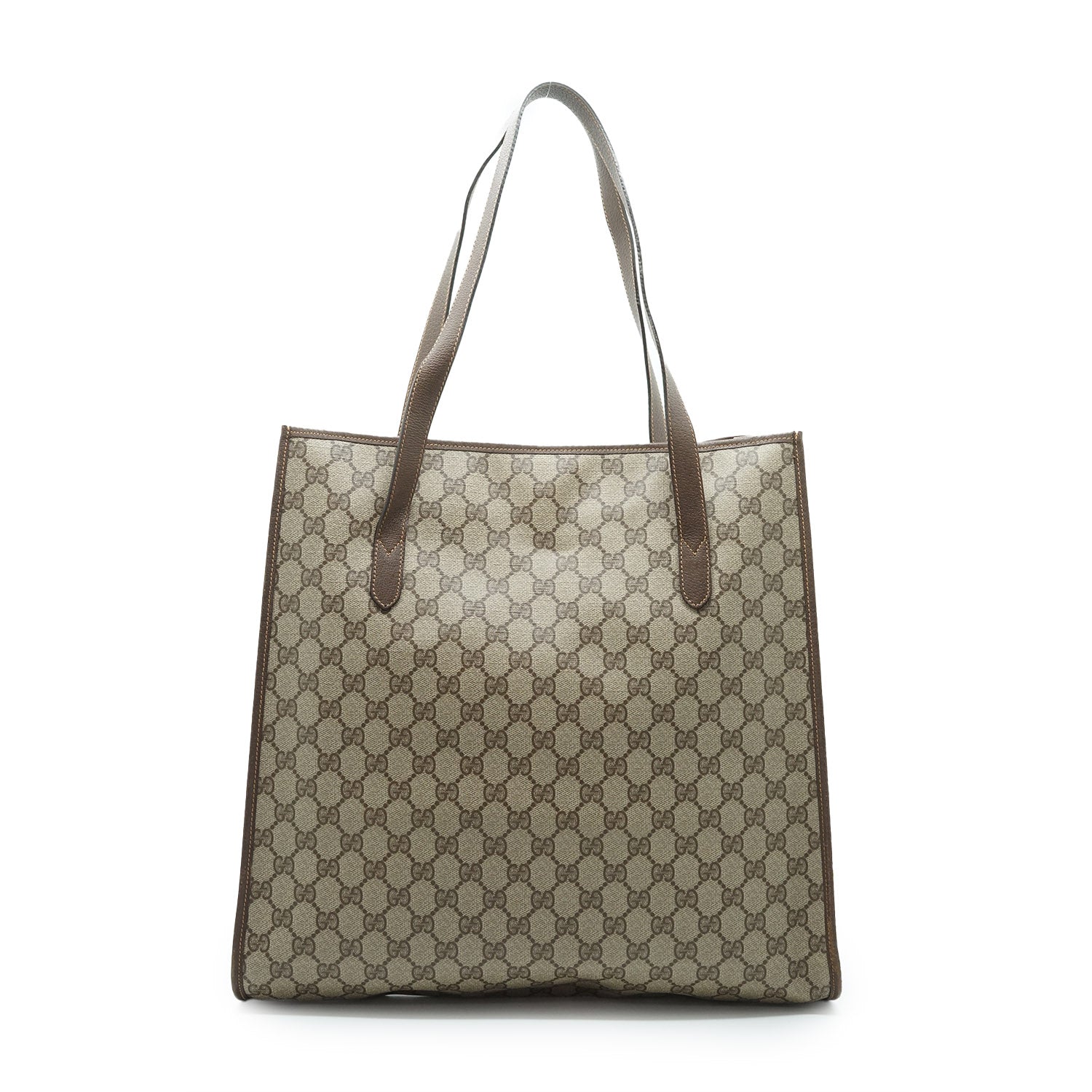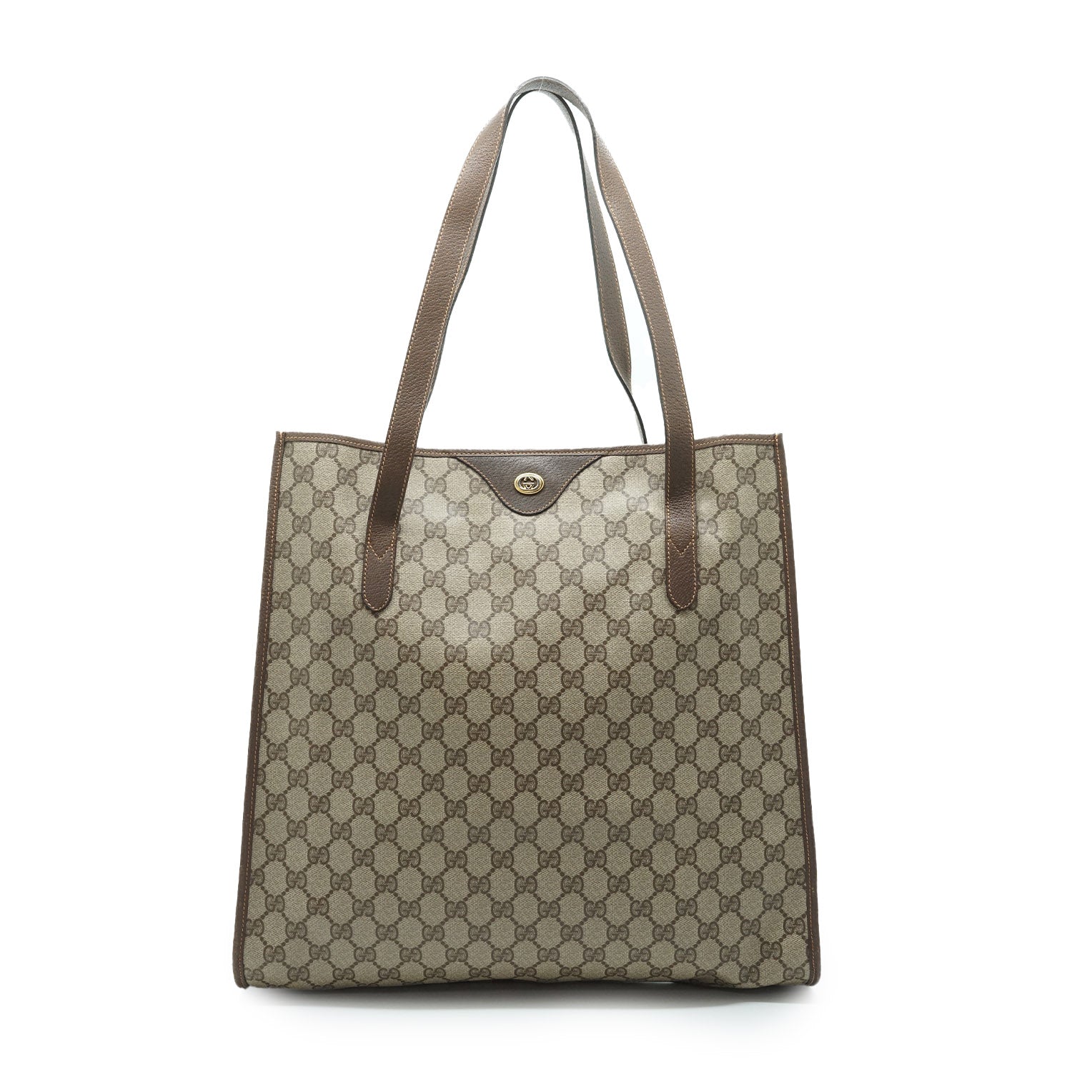 Vintage GG Supreme Accessory Collection Coated Canvas Vertical Tote Brown Canvas, Leather