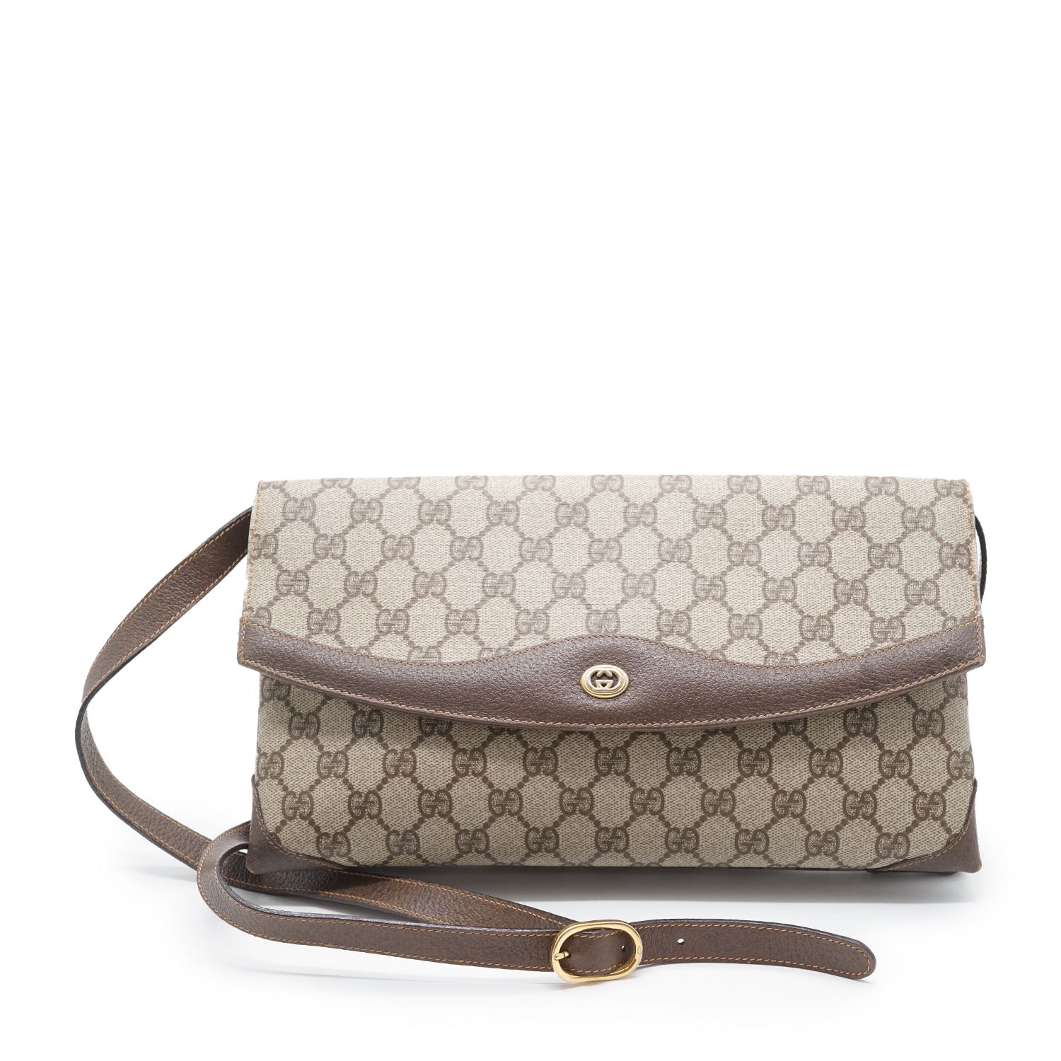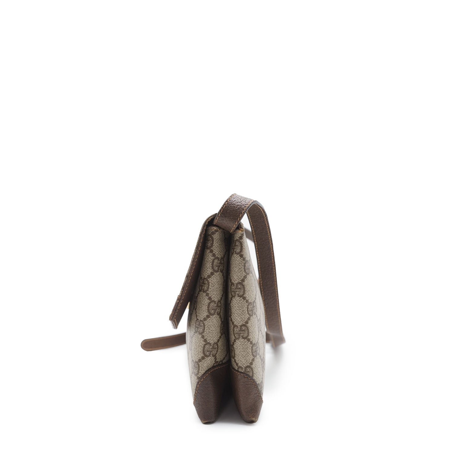 Vintage GG Supreme Coated Canvas Ophidia Flap Shoulder Bag Brown Canvas, Leather