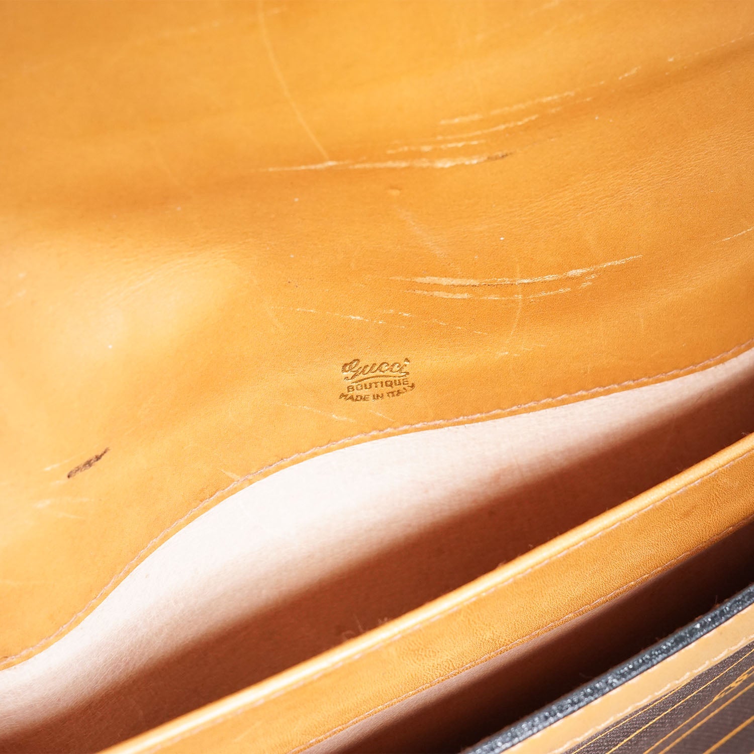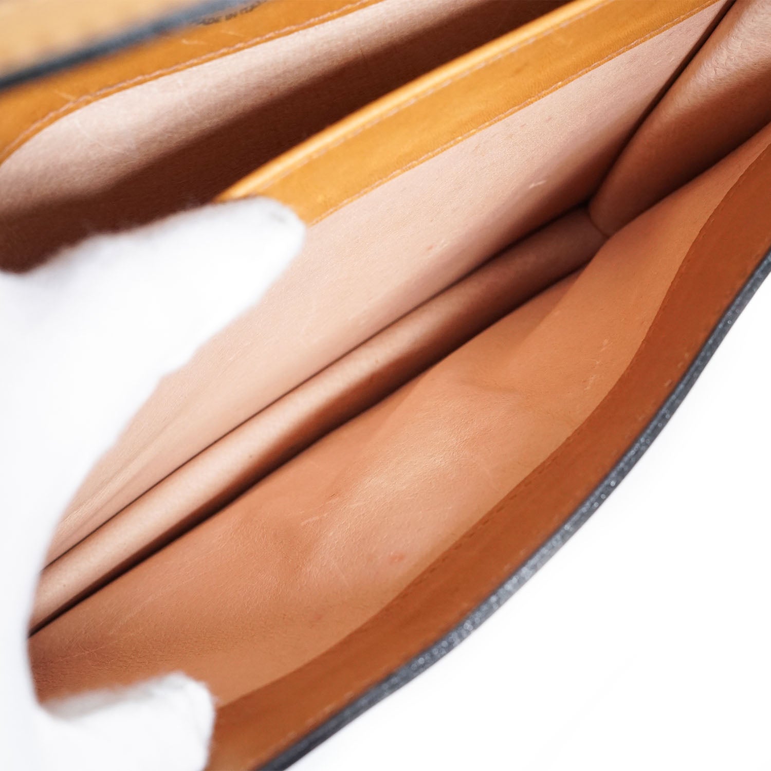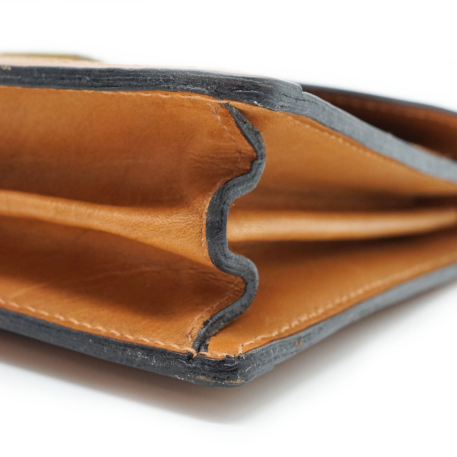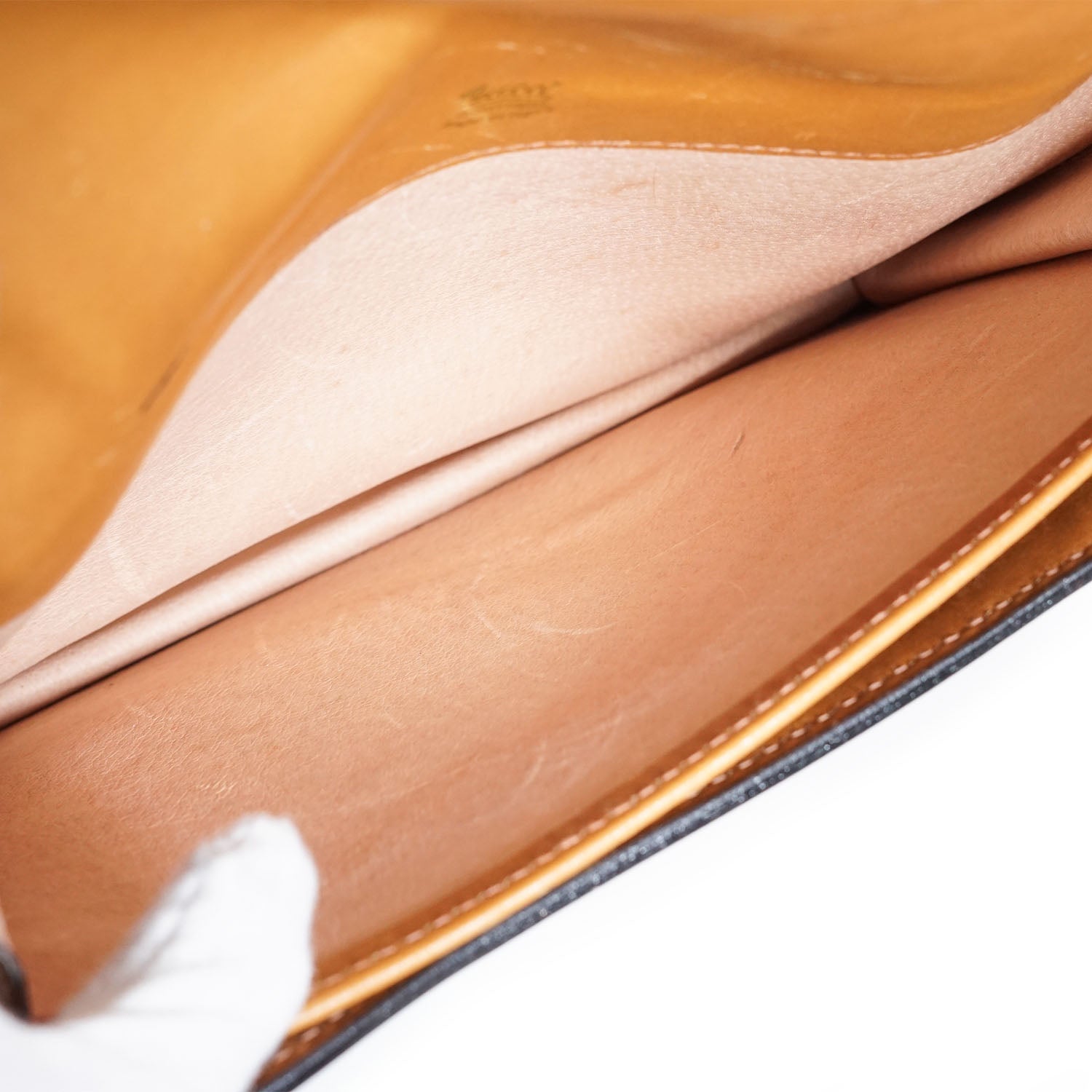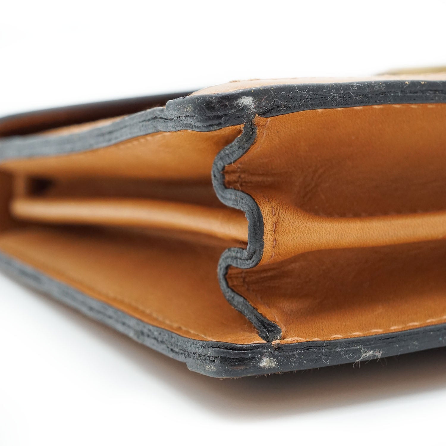 Discoloration: Some hardware tarnish, slight discoloration on the leather parts