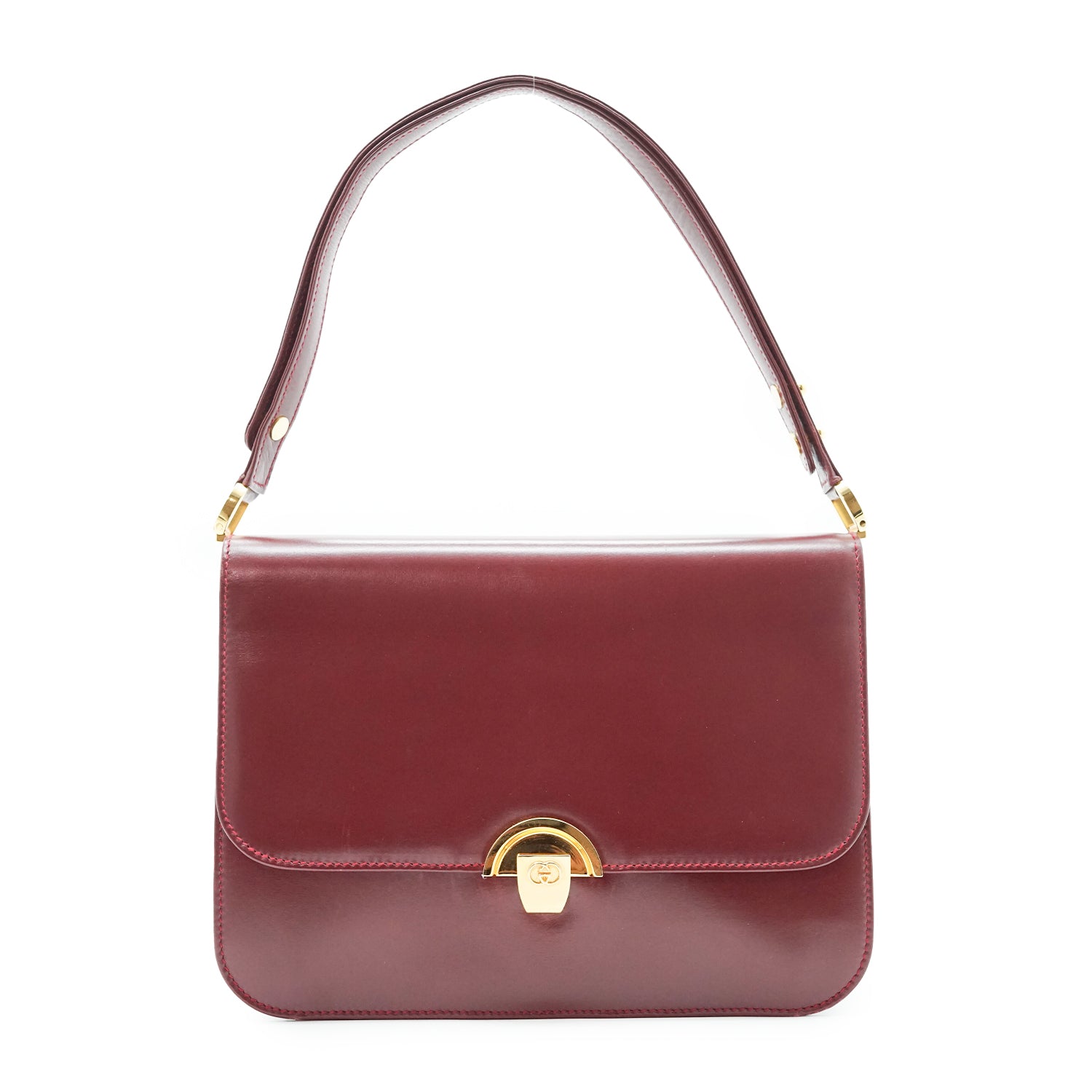 Vintage Interlocking GG Box Shoulder Bag Burgundy red Leather