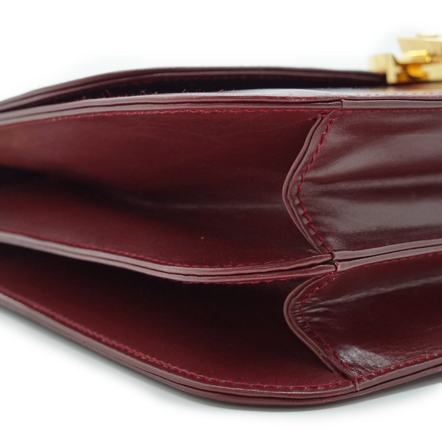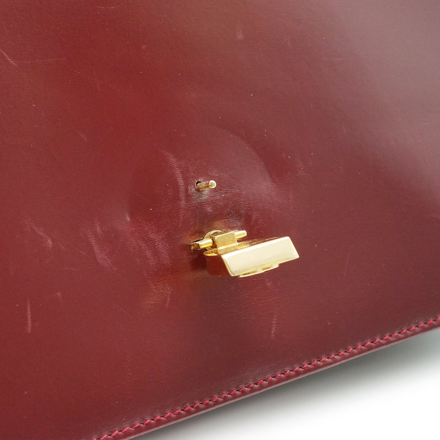 Peeling: Minor peeling on the clasp, slight leather cracking at the flap fold on one side