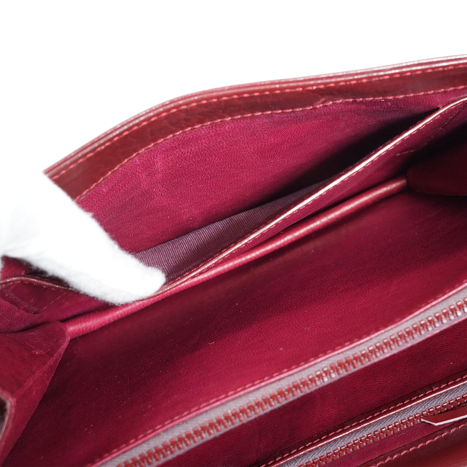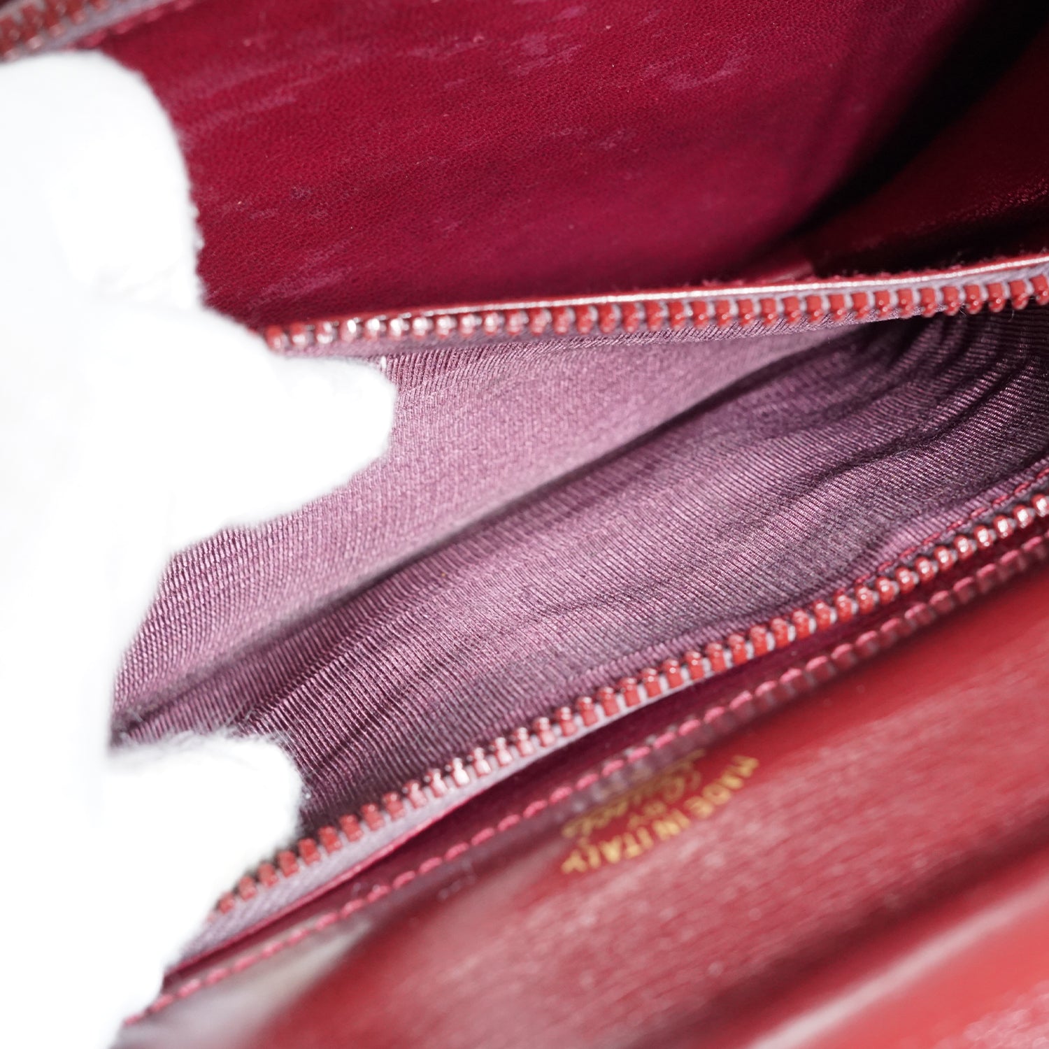 Scratch: Slight scratches on the hardware, some scratches on the front (near the clasp) and throughout the inside
