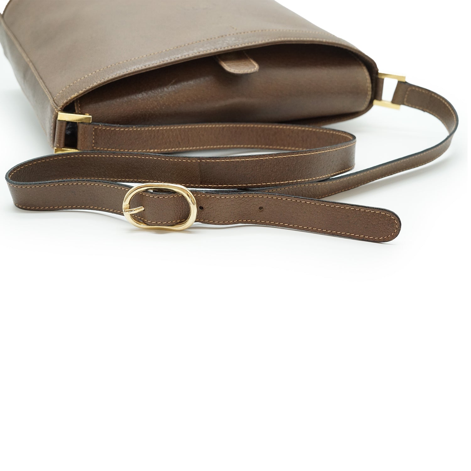 Vintage Interlocking GG Logo Shoulder Bag Brown Leather
