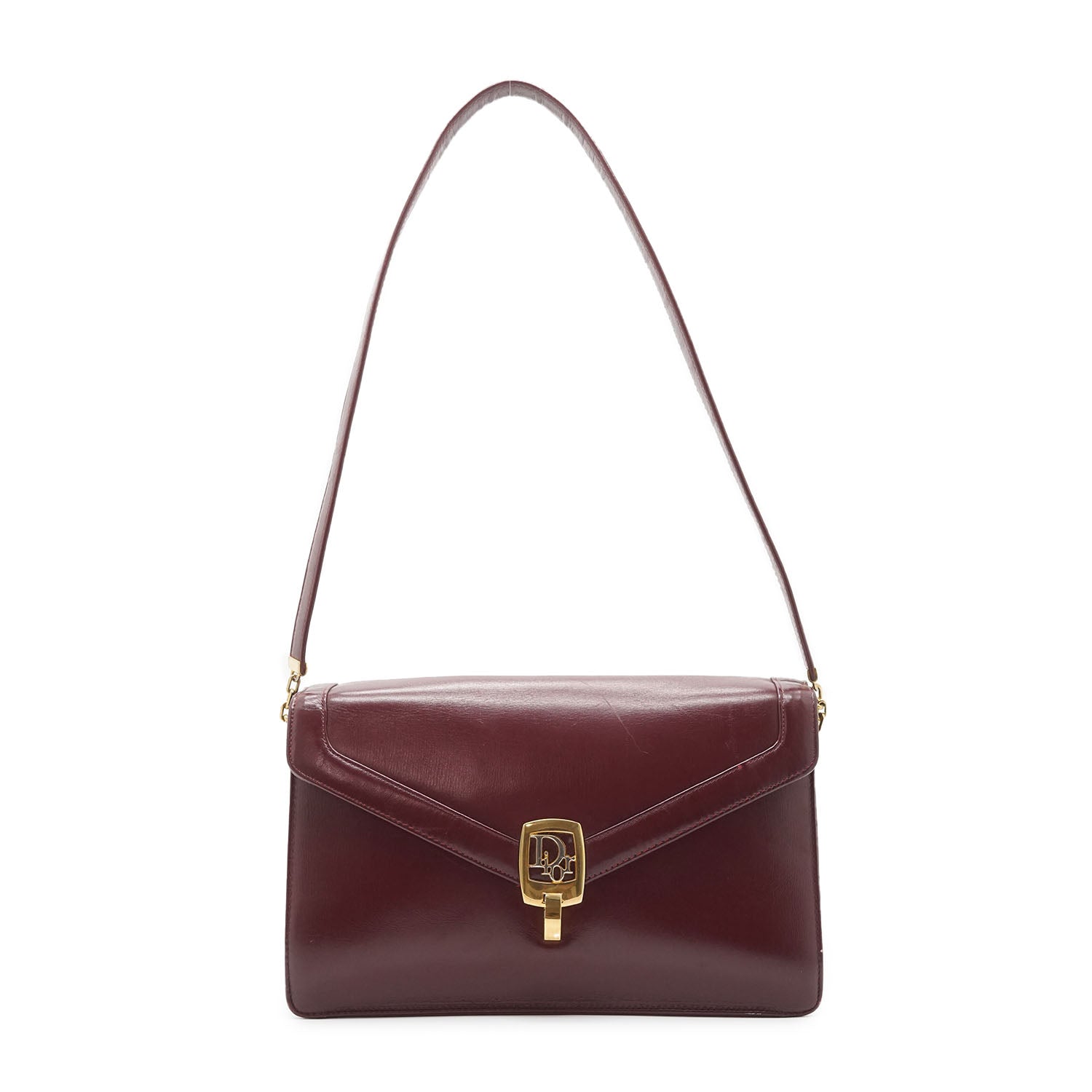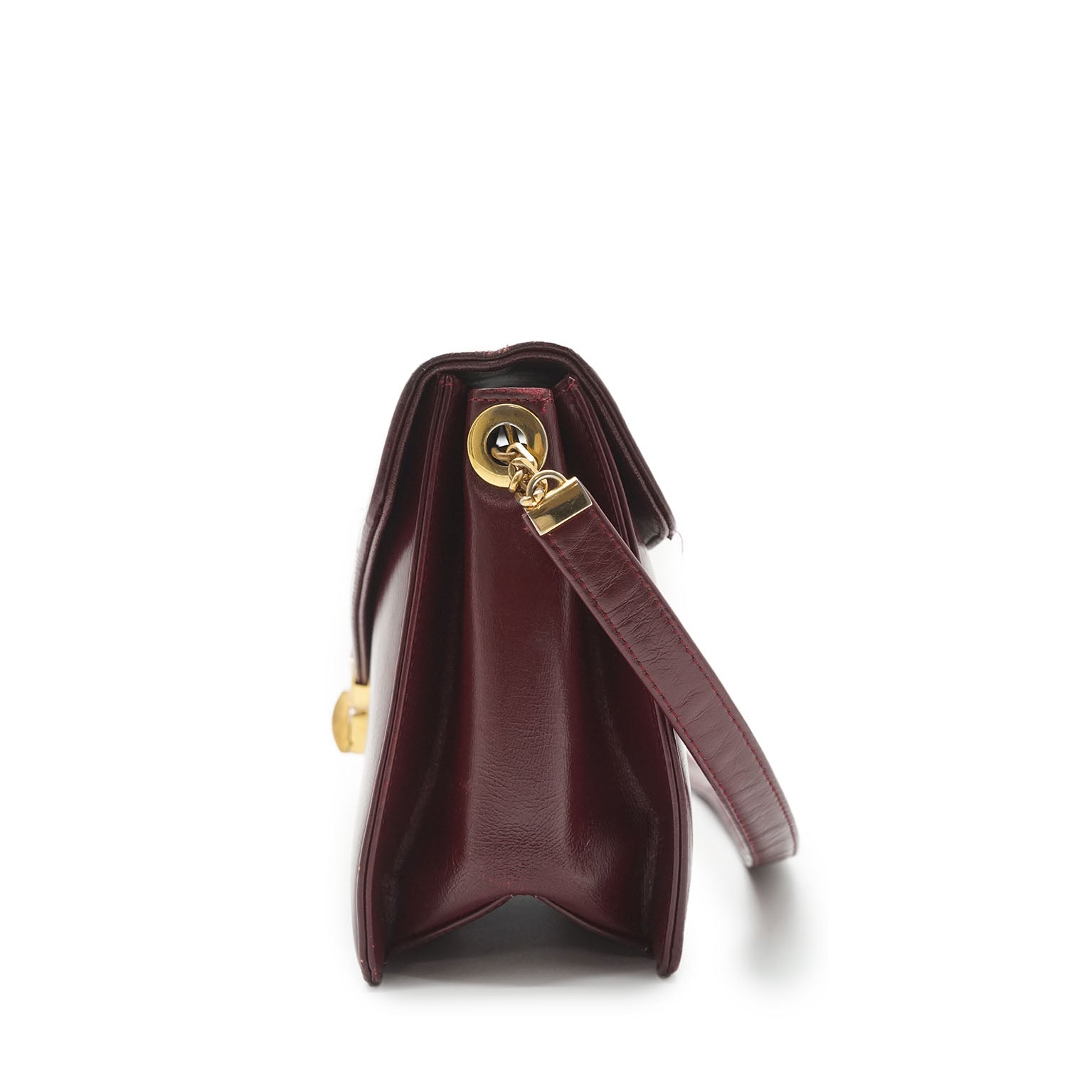 Vintage Leather Shoulder Bag with Coin Case Burgundy Red Leather