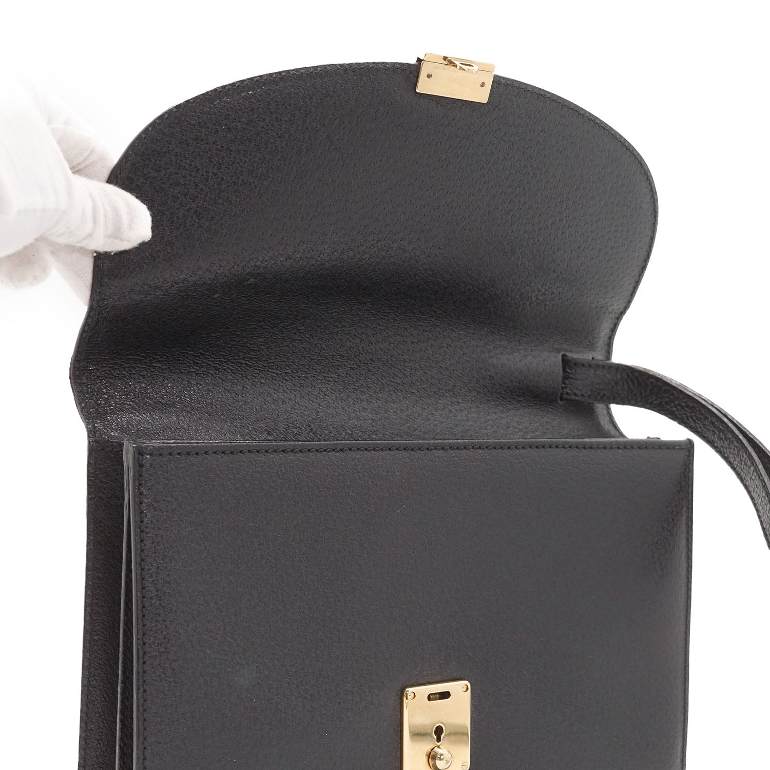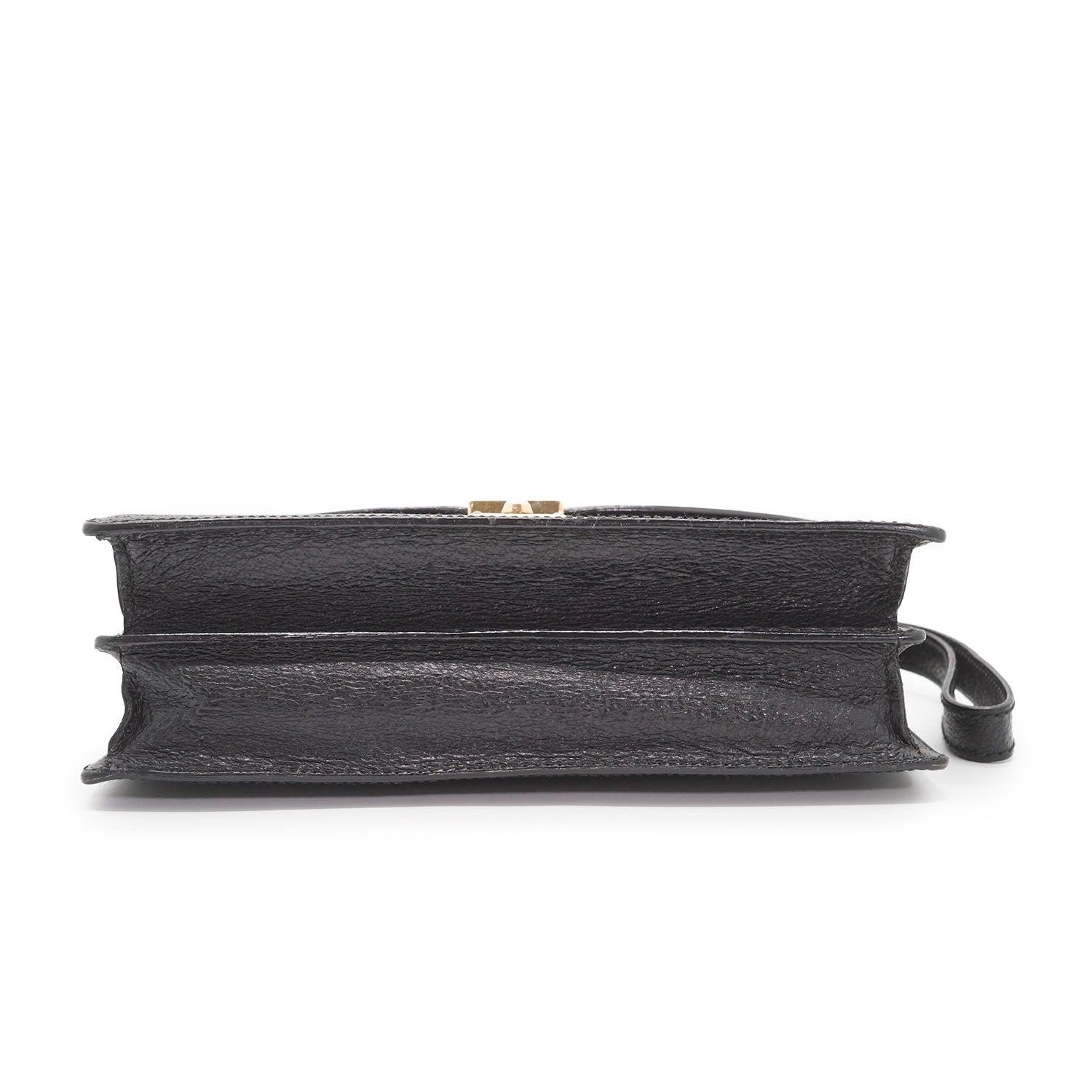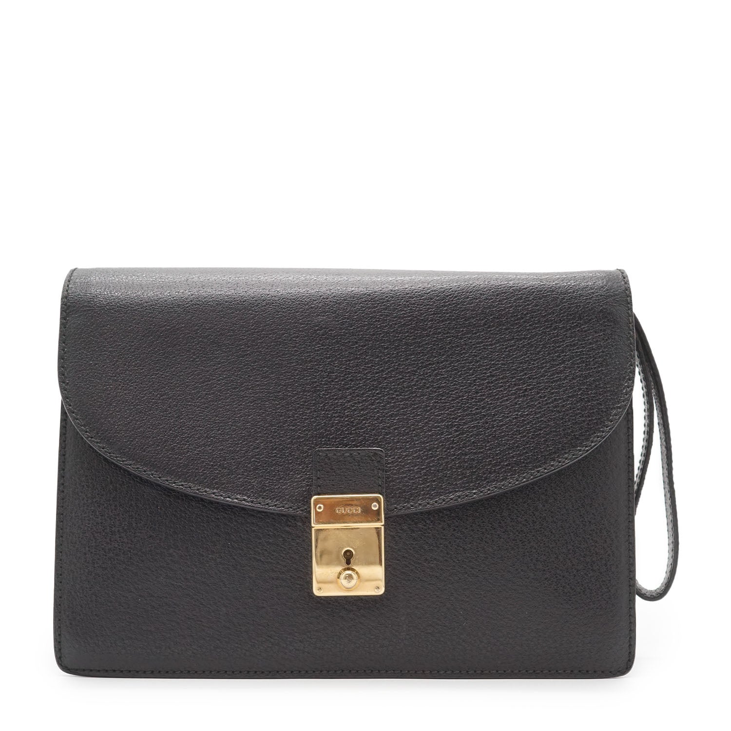 Vintage Lock Clutch Bag Black Leather