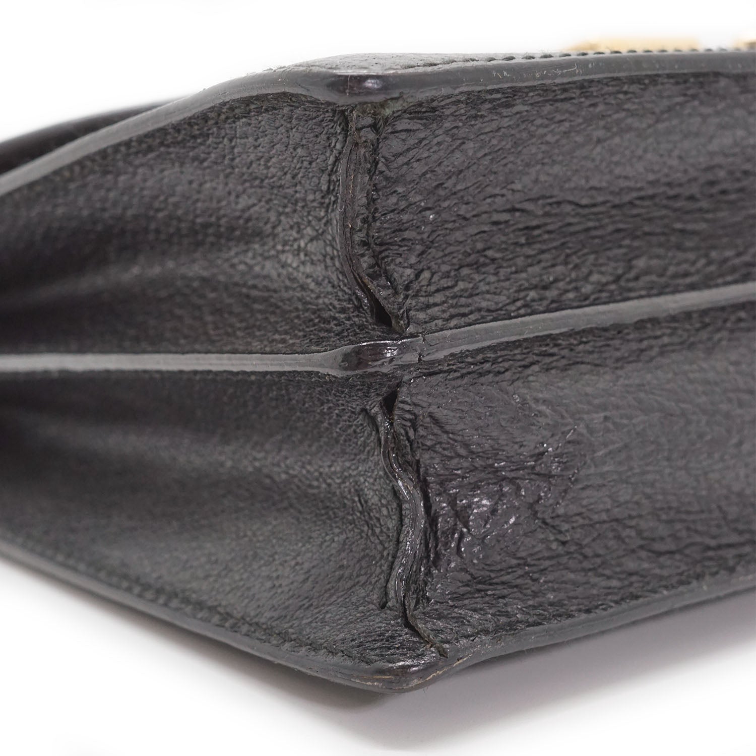 Peeling: Minor leather cracking on the wristlet