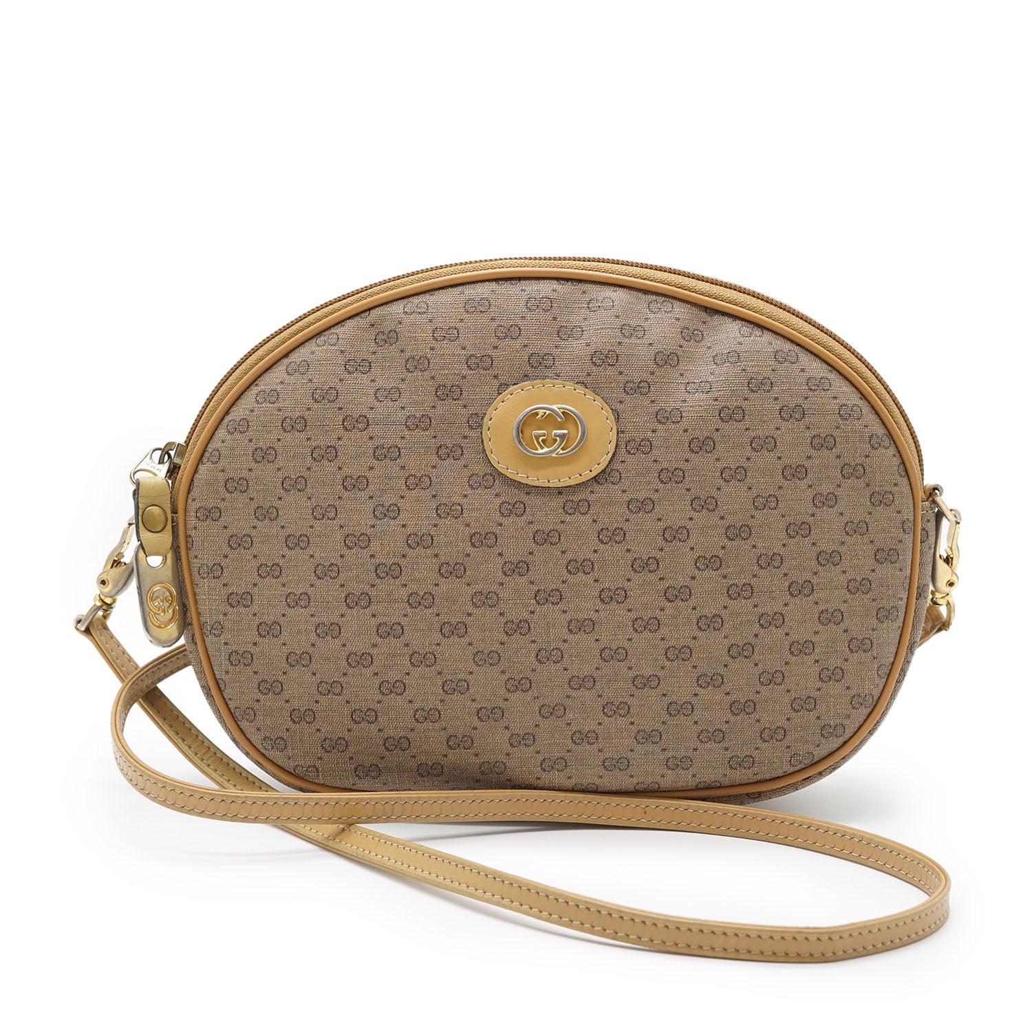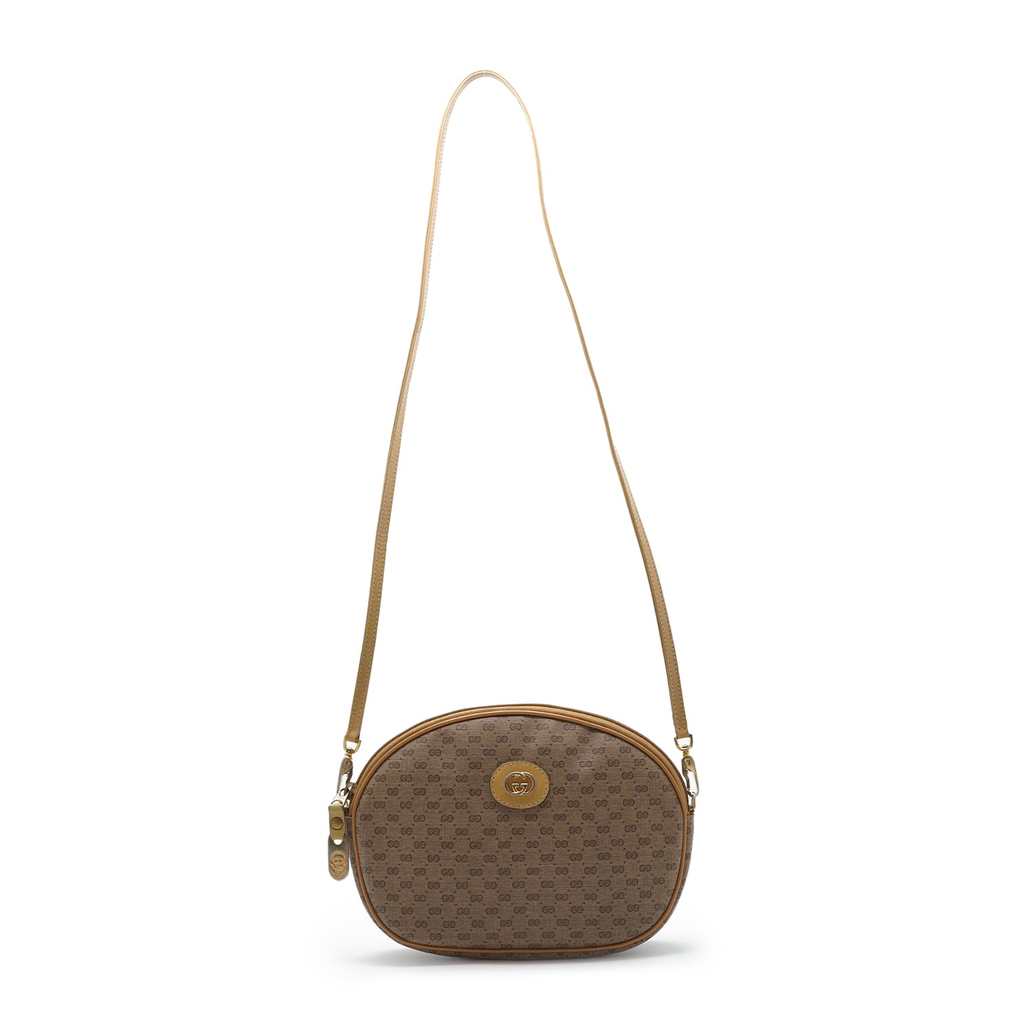 Vintage Microguccissima Camera Bag Brown Canvas, Leather