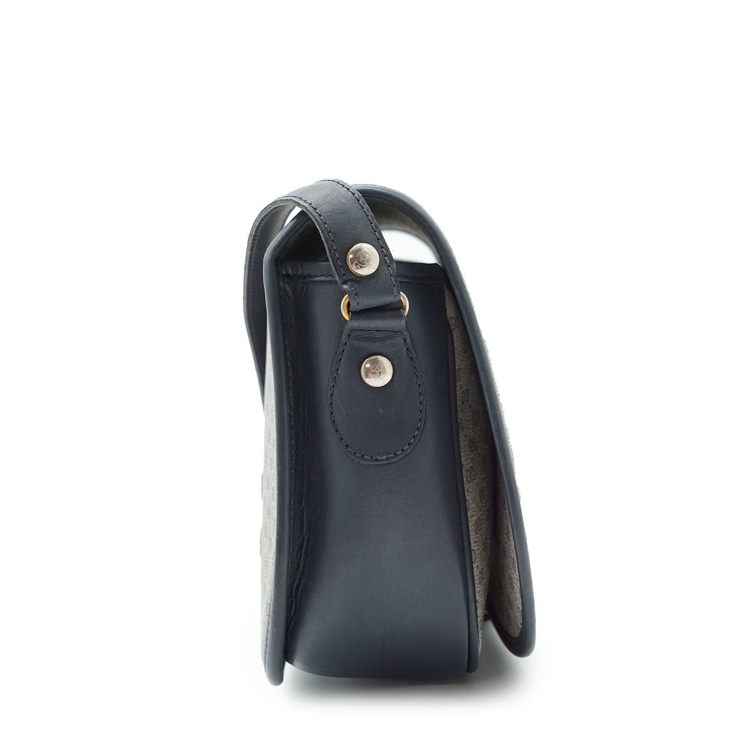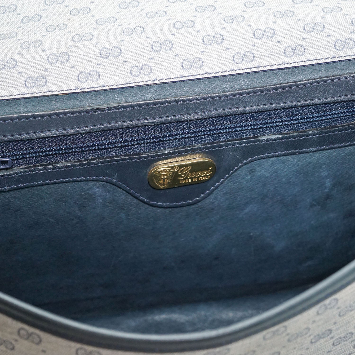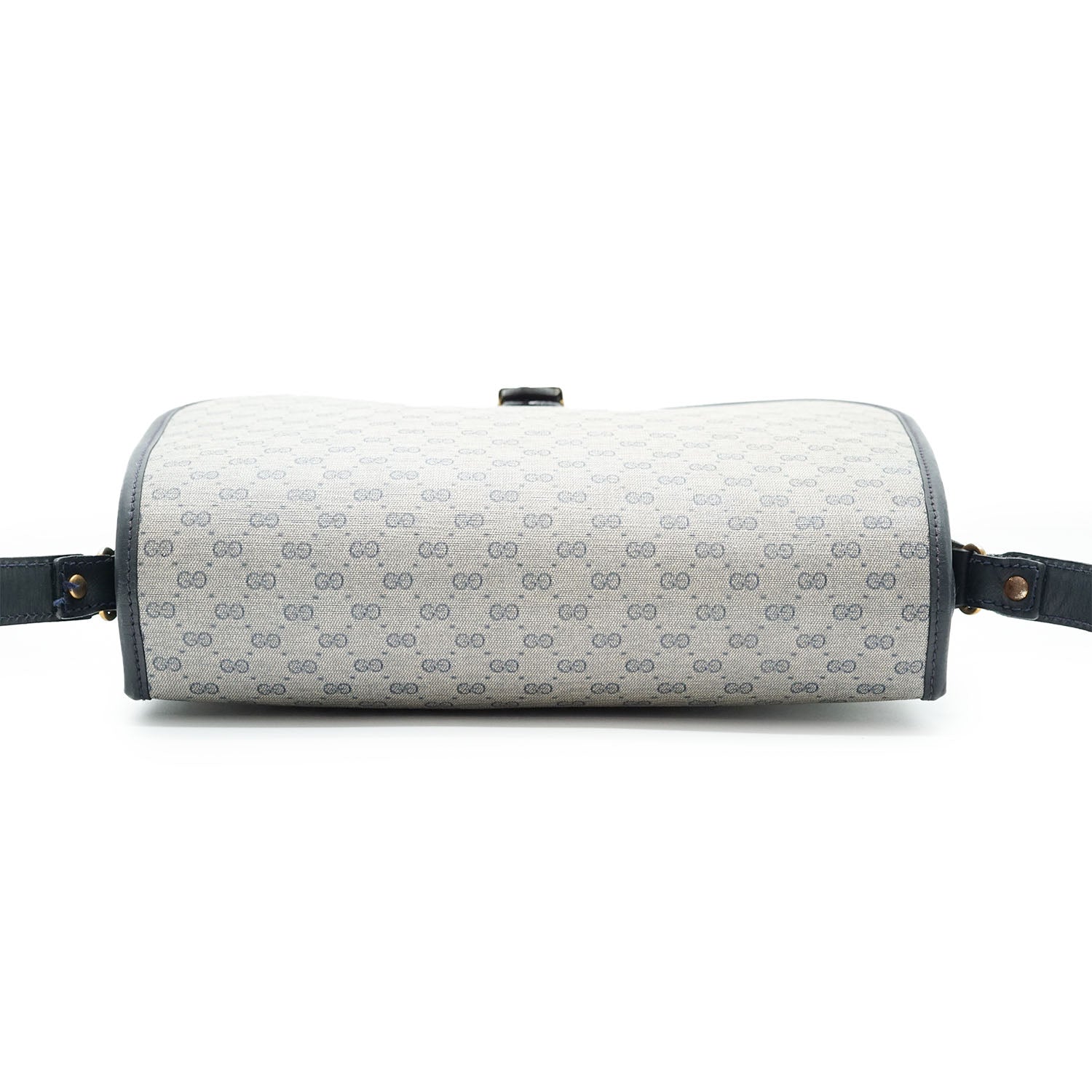 Vintage Microguccissima Flap Crossbody Bag Navy Canvas, Leather