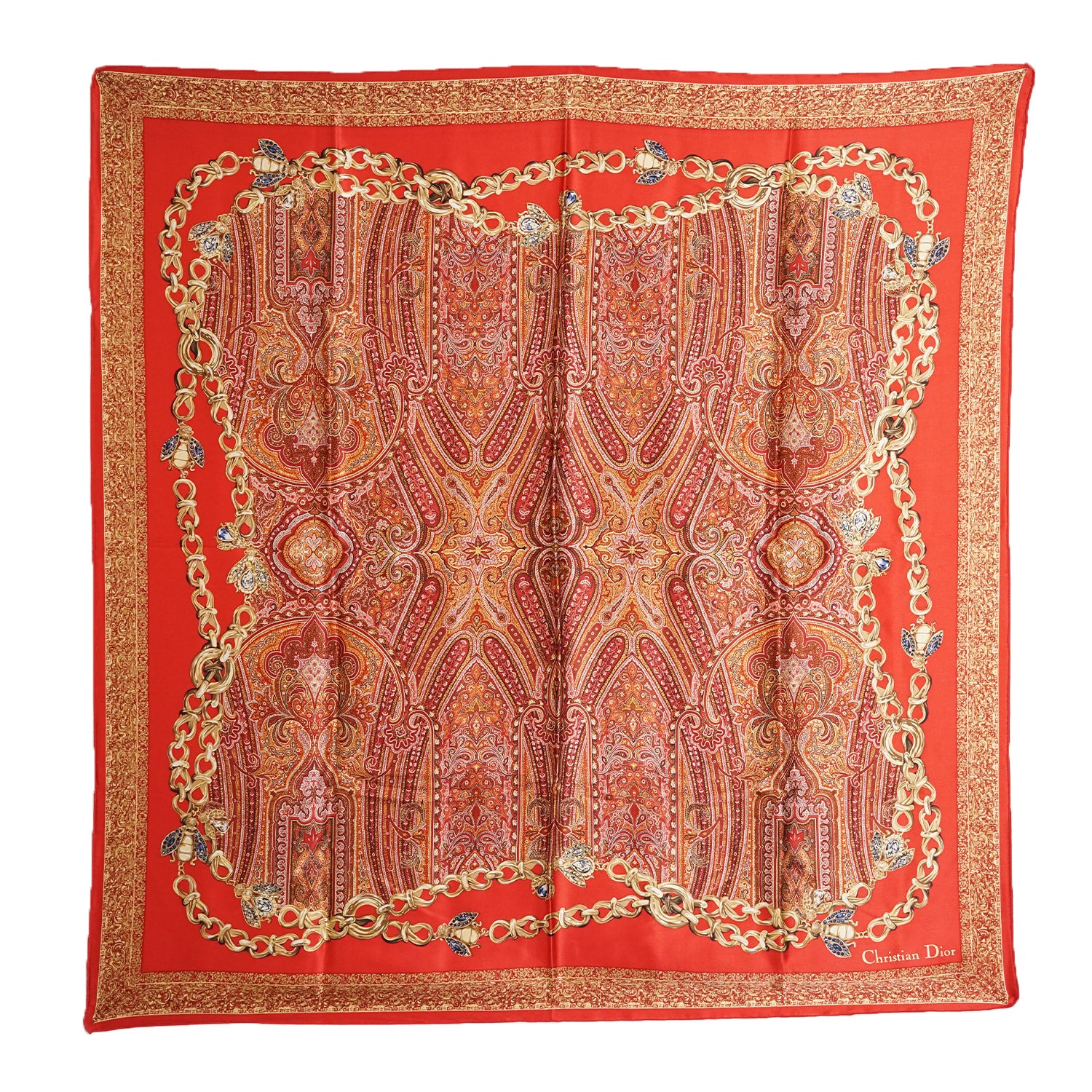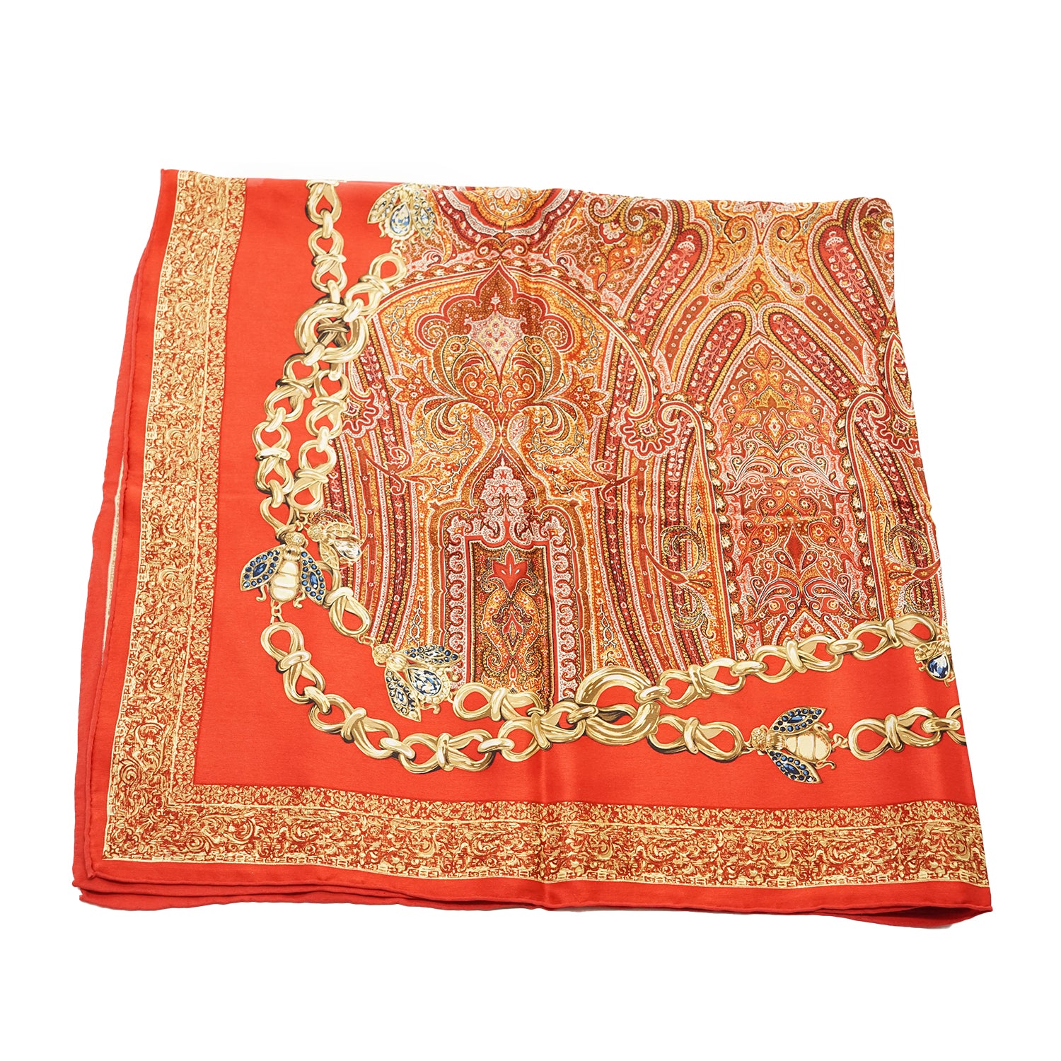 Vintage Paisley Silk Carre Kanebo Red/Gold Silk