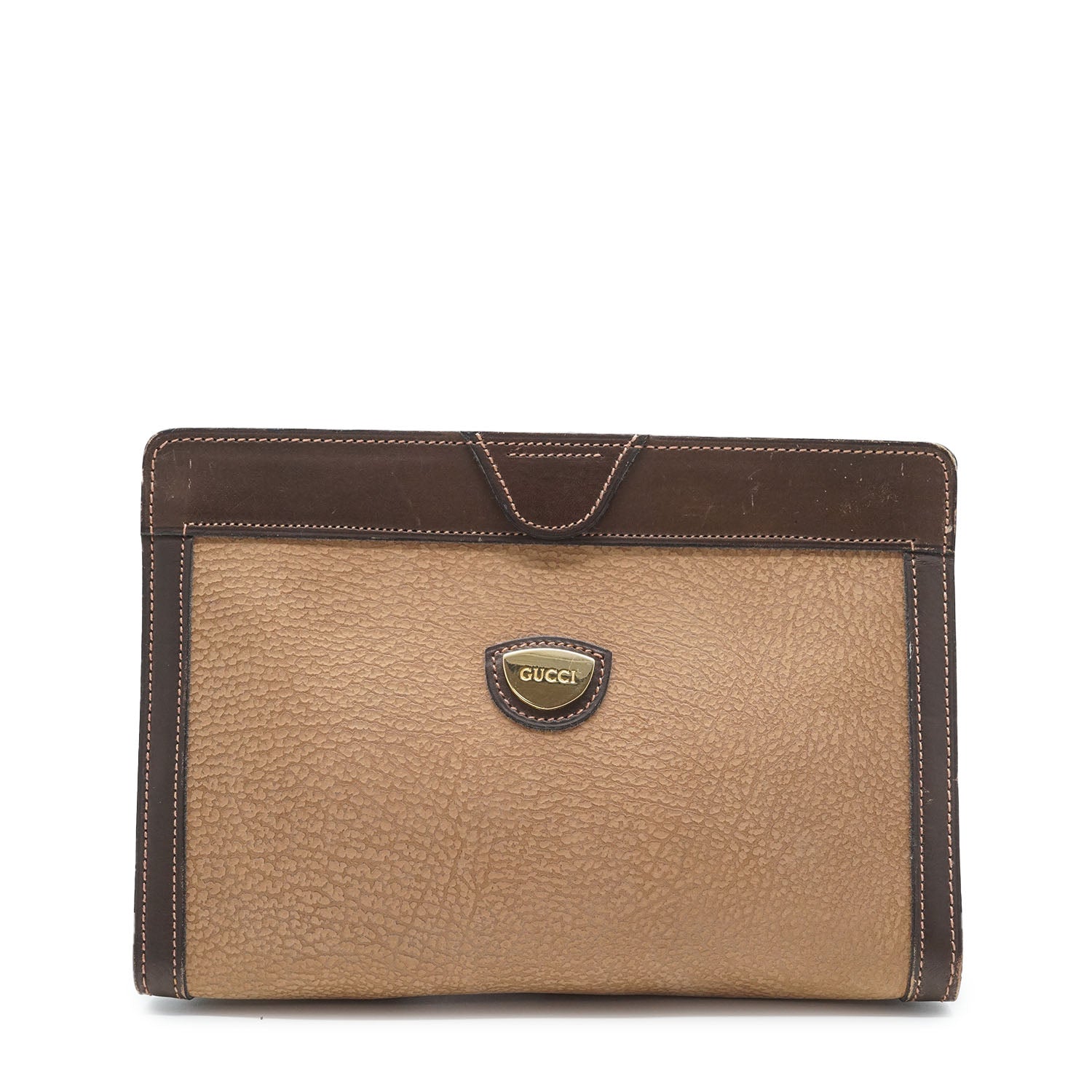 Vintage Pouch Clutch Brown Canvas, Leather