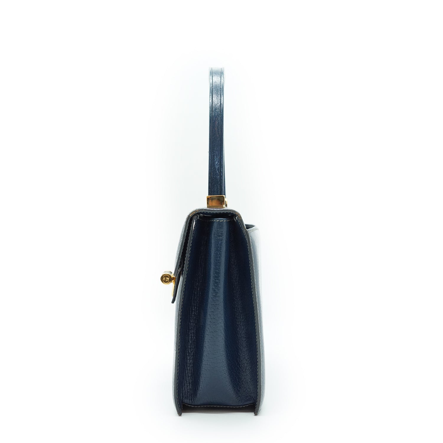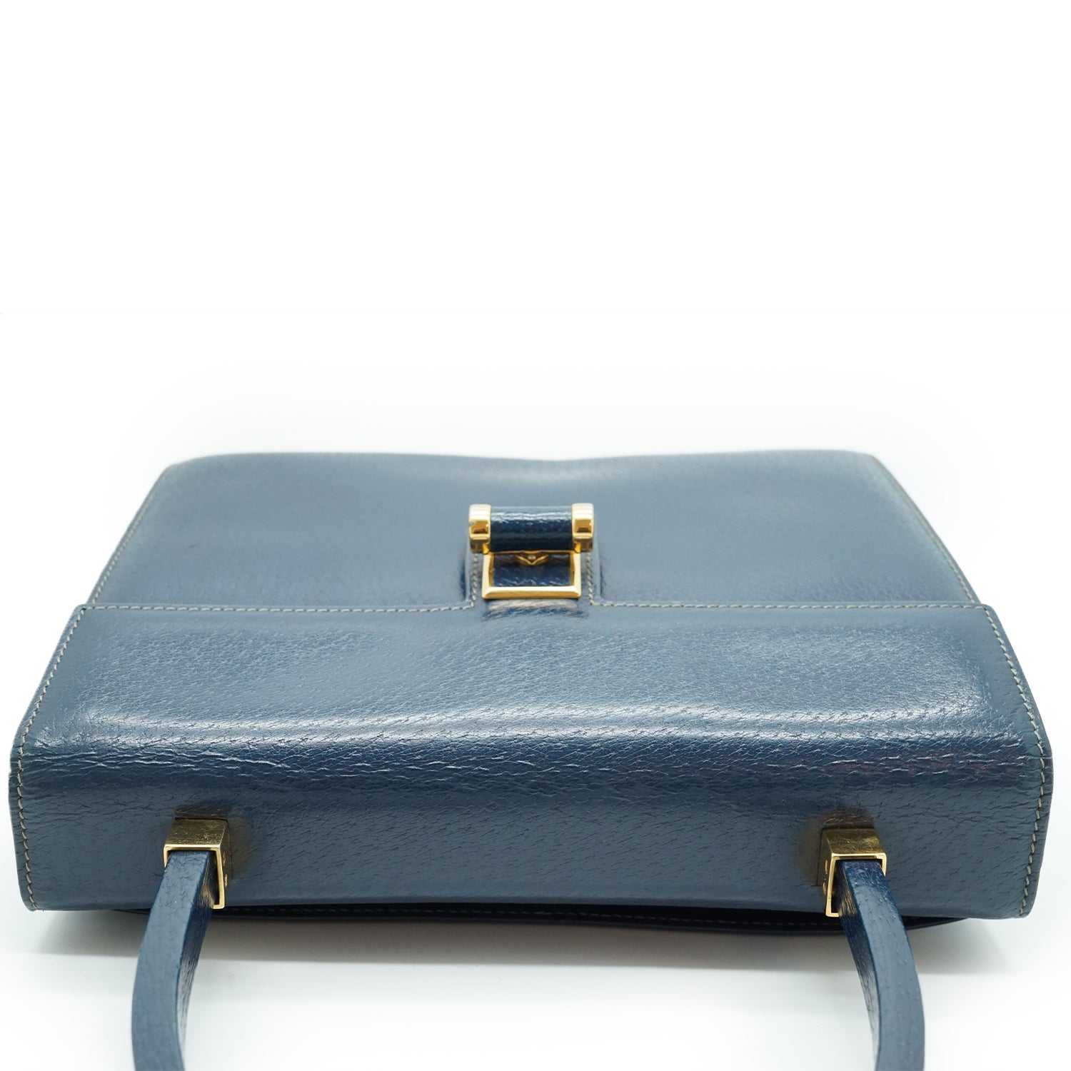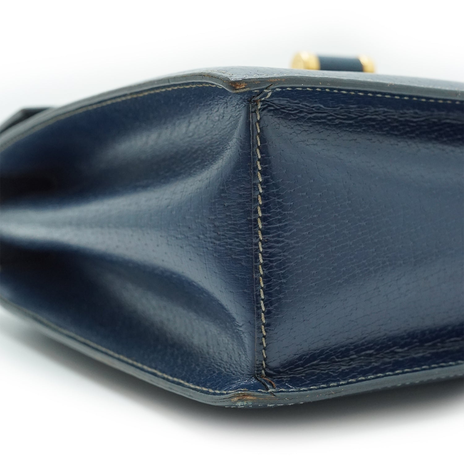 Vintage Square Box Top Handle Bag Navy Leather, Suede