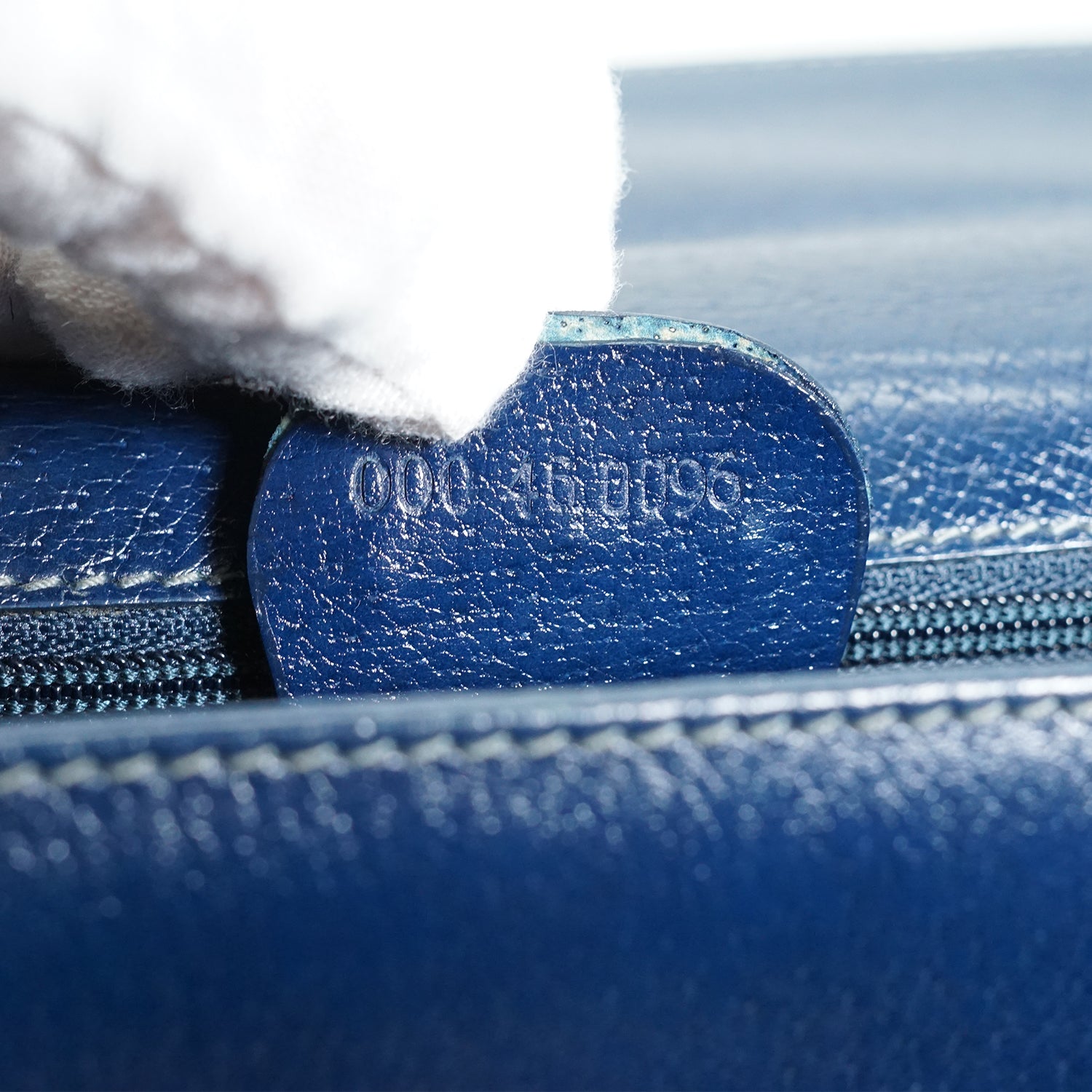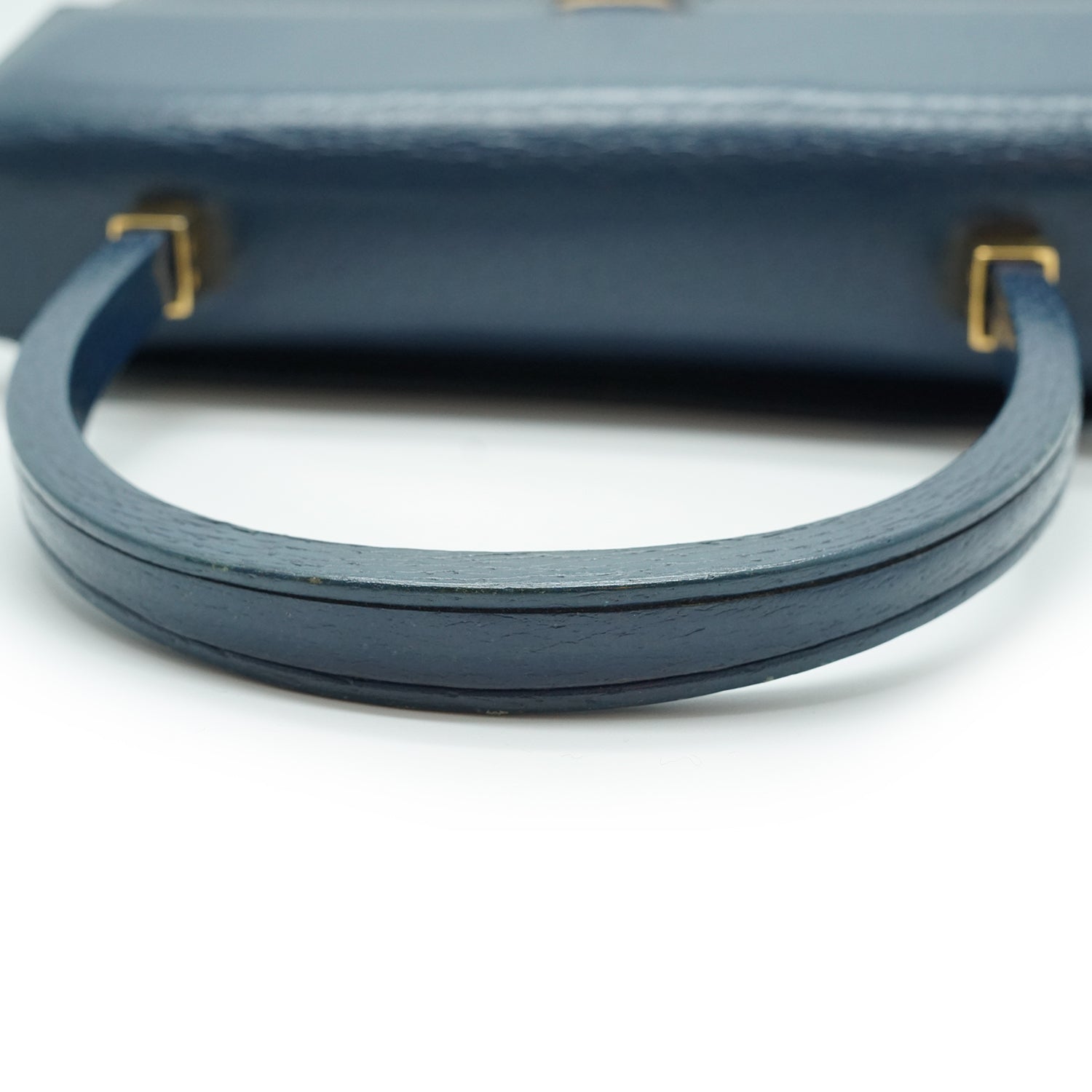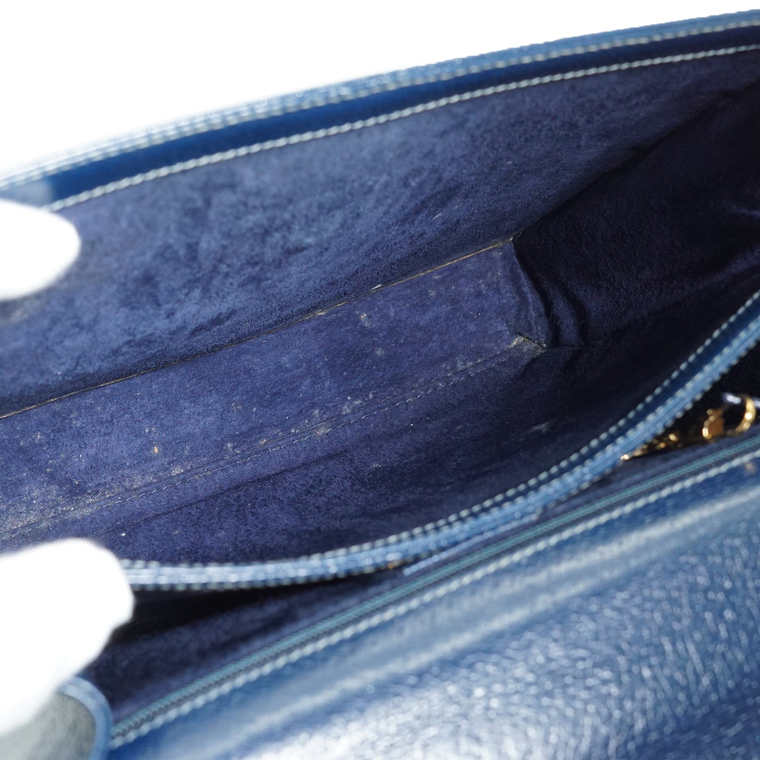 Vintage Square Box Top Handle Bag Navy Leather, Suede