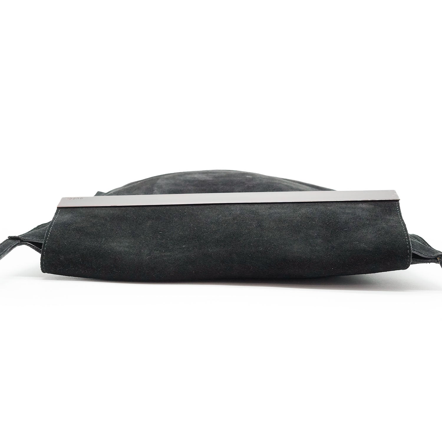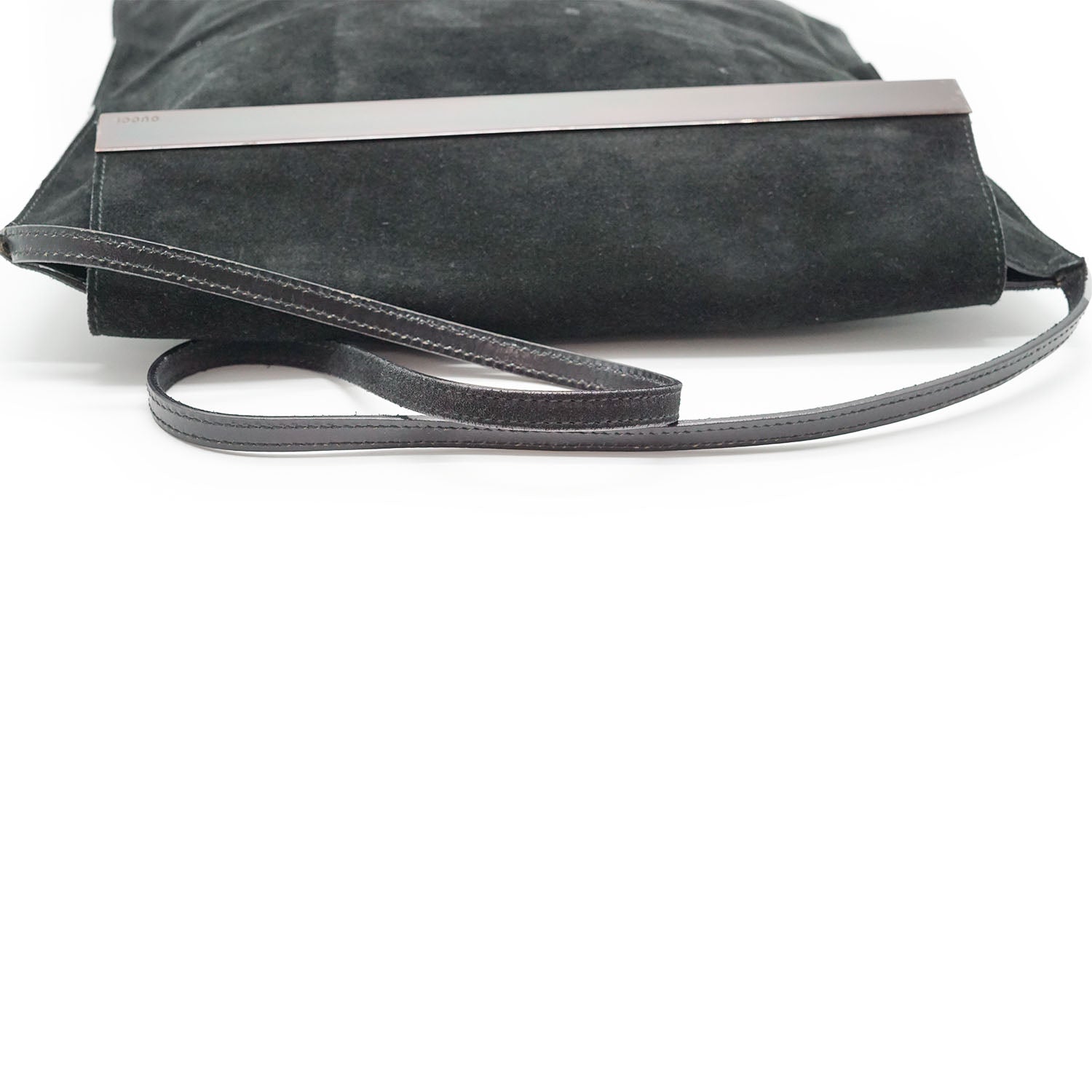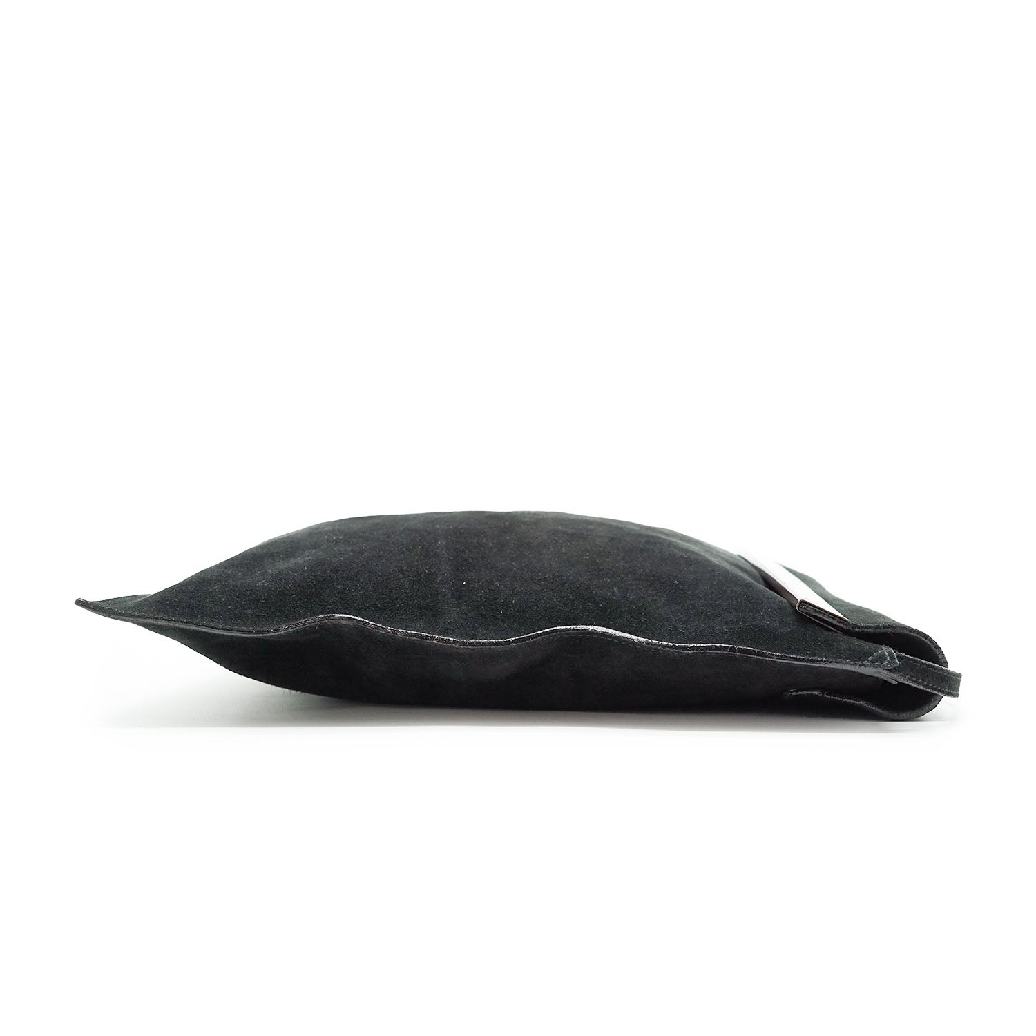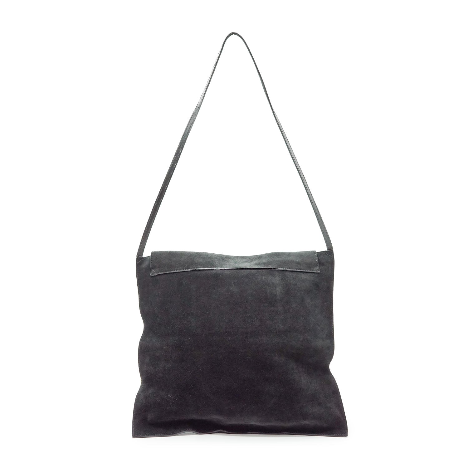 Vintage Suede Foldable Shoulder Tote Black Suede, Leather