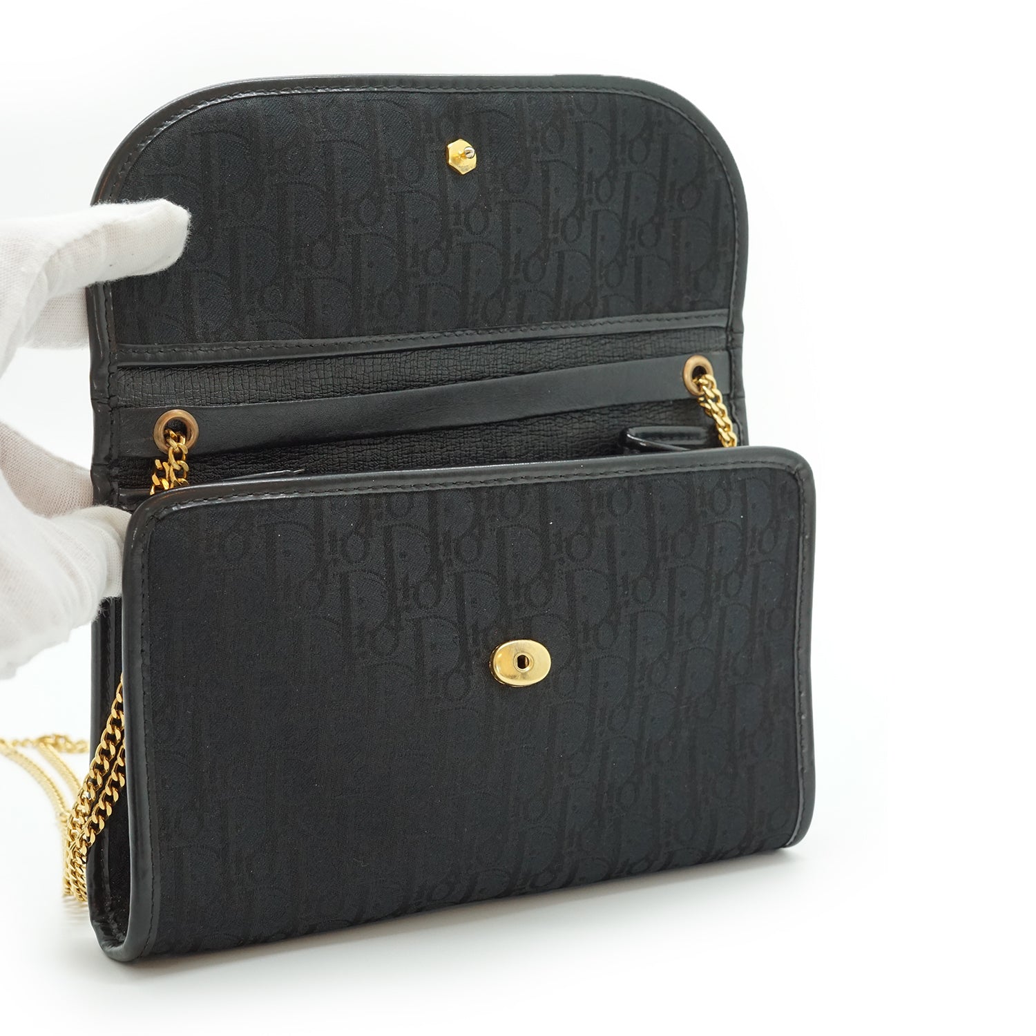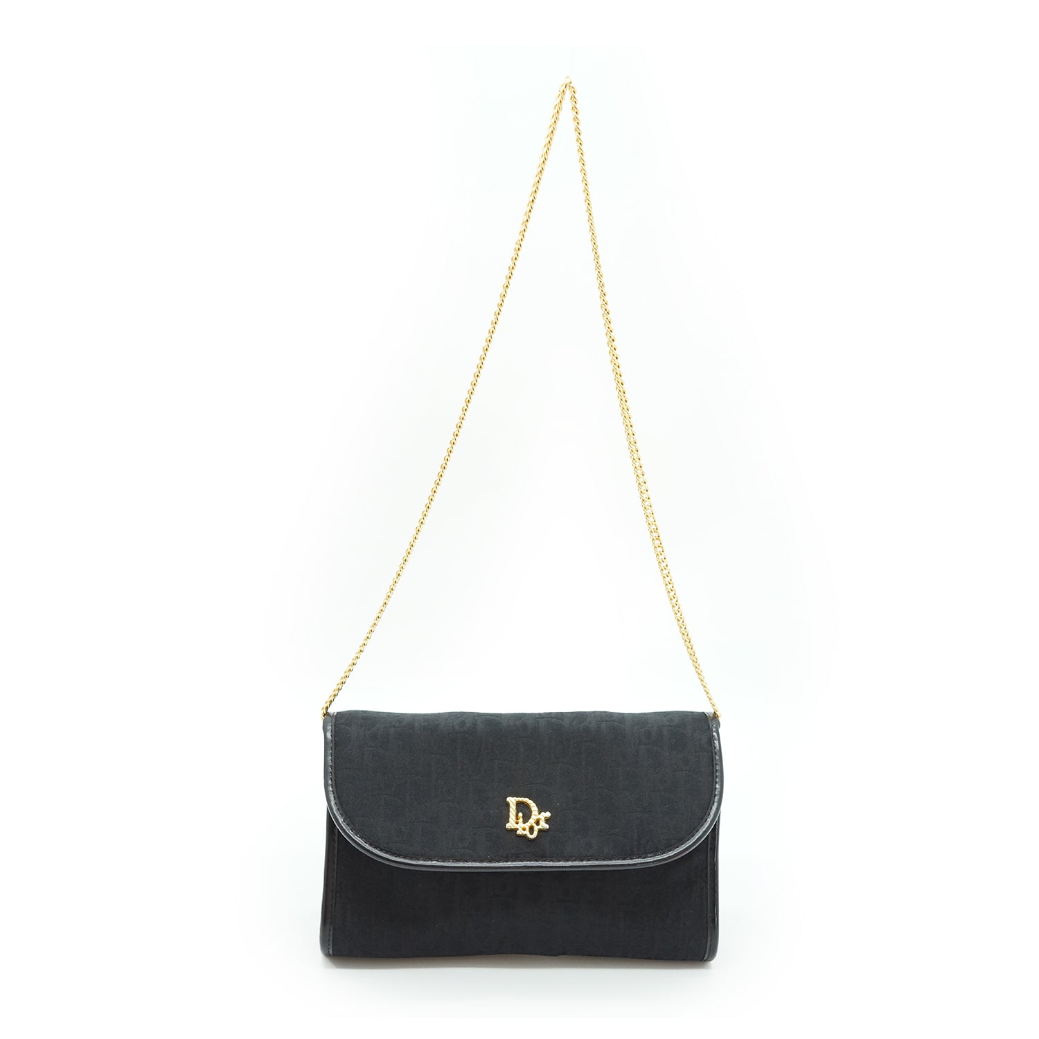Vintage Trotter Chain Crossbody Pochette Black Canvas, Leather