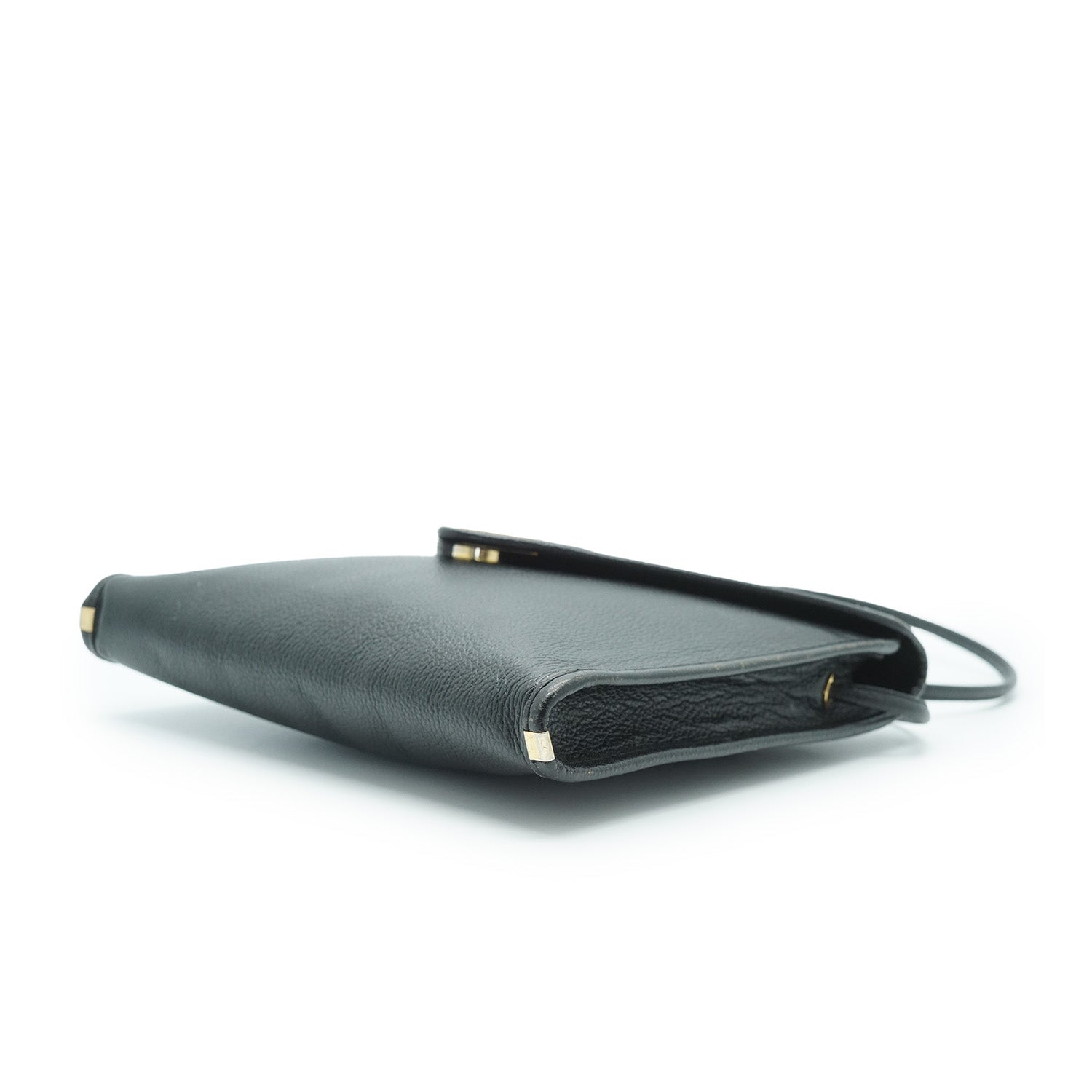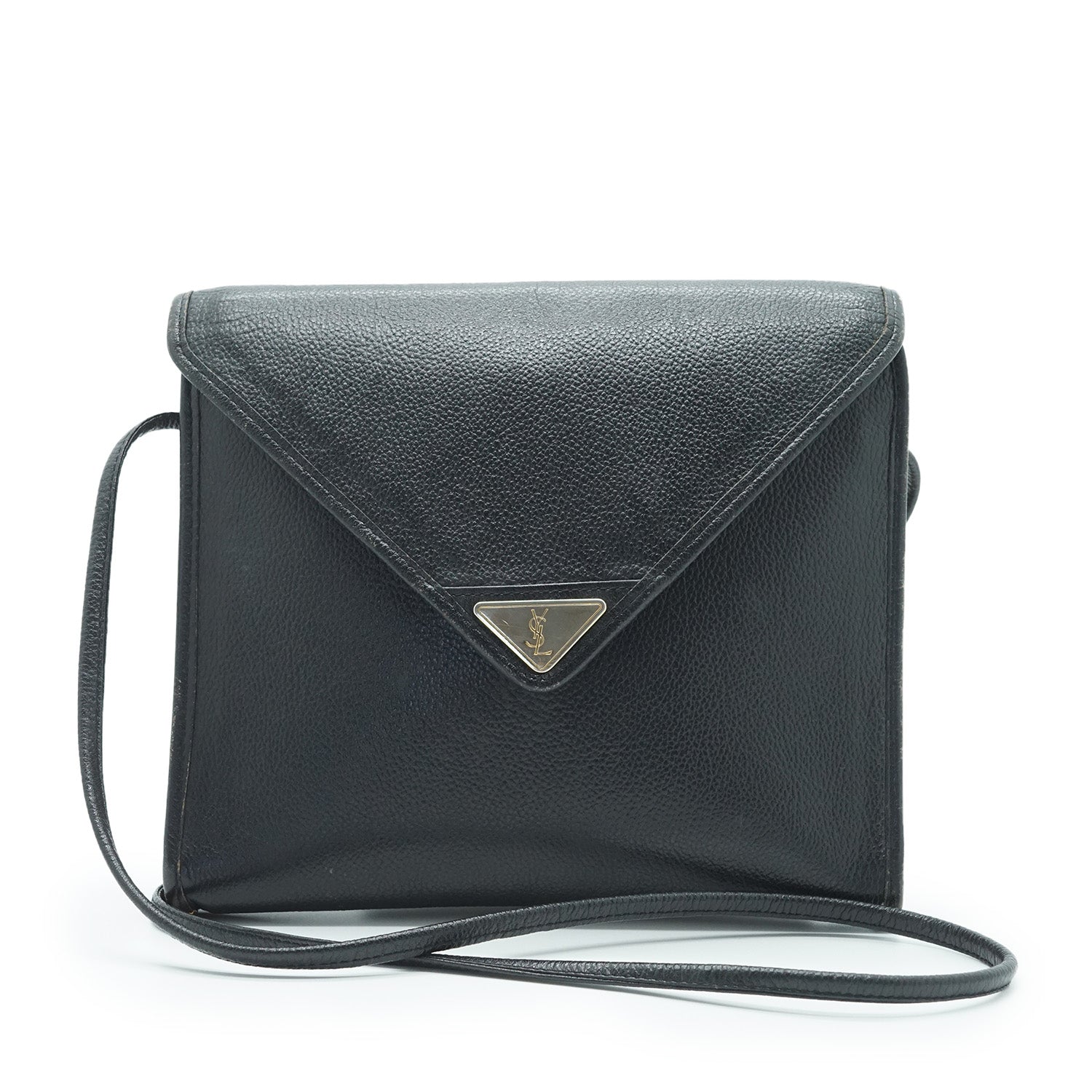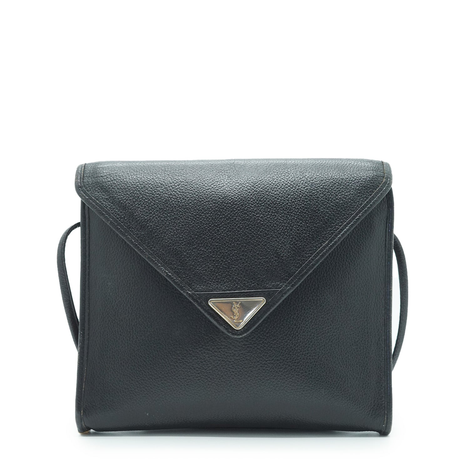 Vintage YSL Envelope Square Crossbody Bag Black Leather
