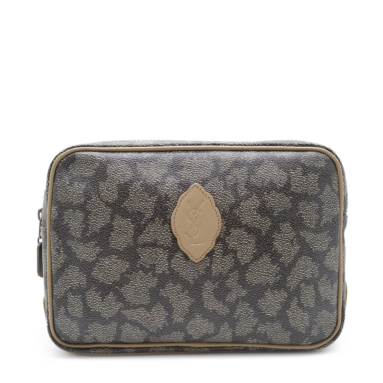 Vintage YSL Giraffe Print Clutch Taupe Canvas, Leather