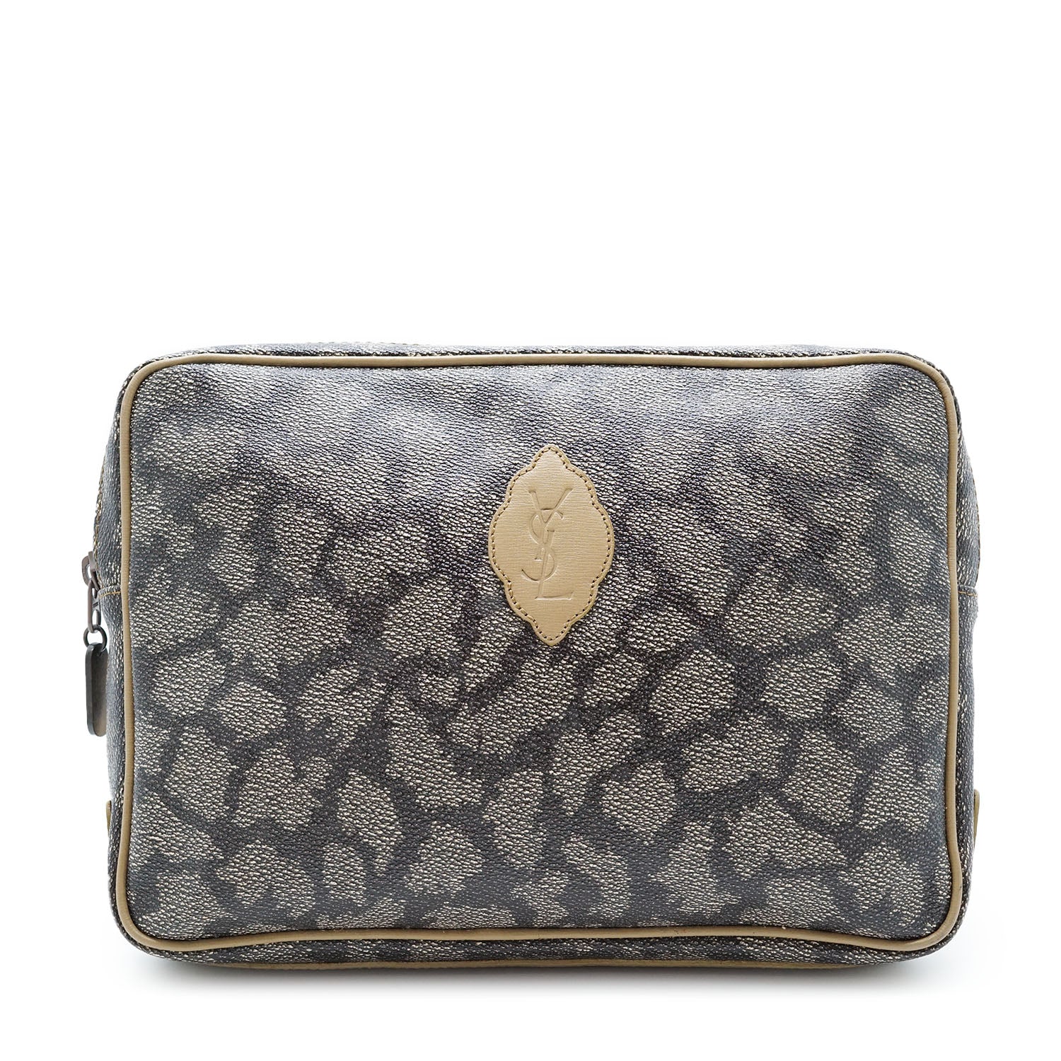 Vintage YSL Giraffe Print Clutch Taupe Canvas, Leather