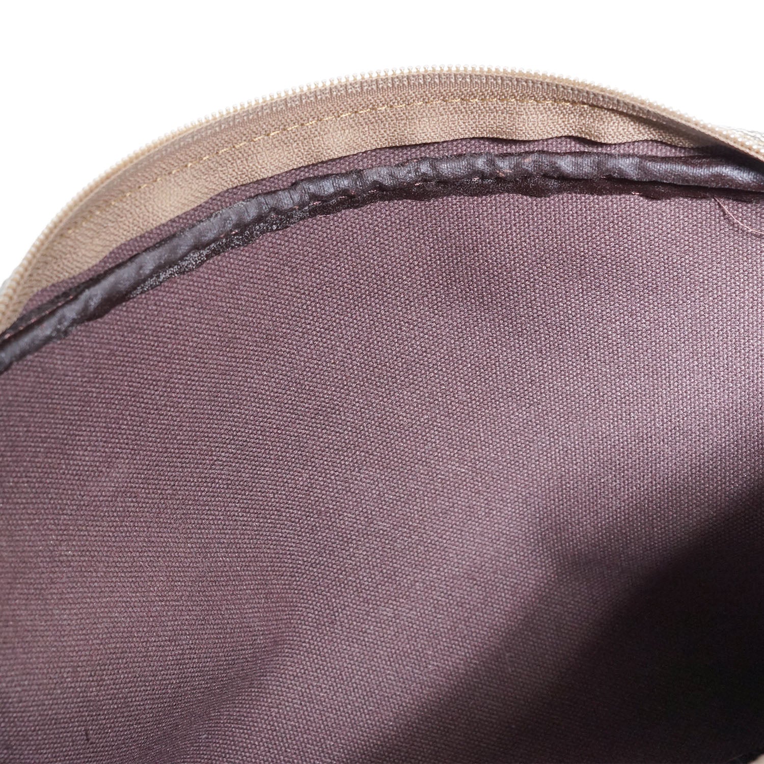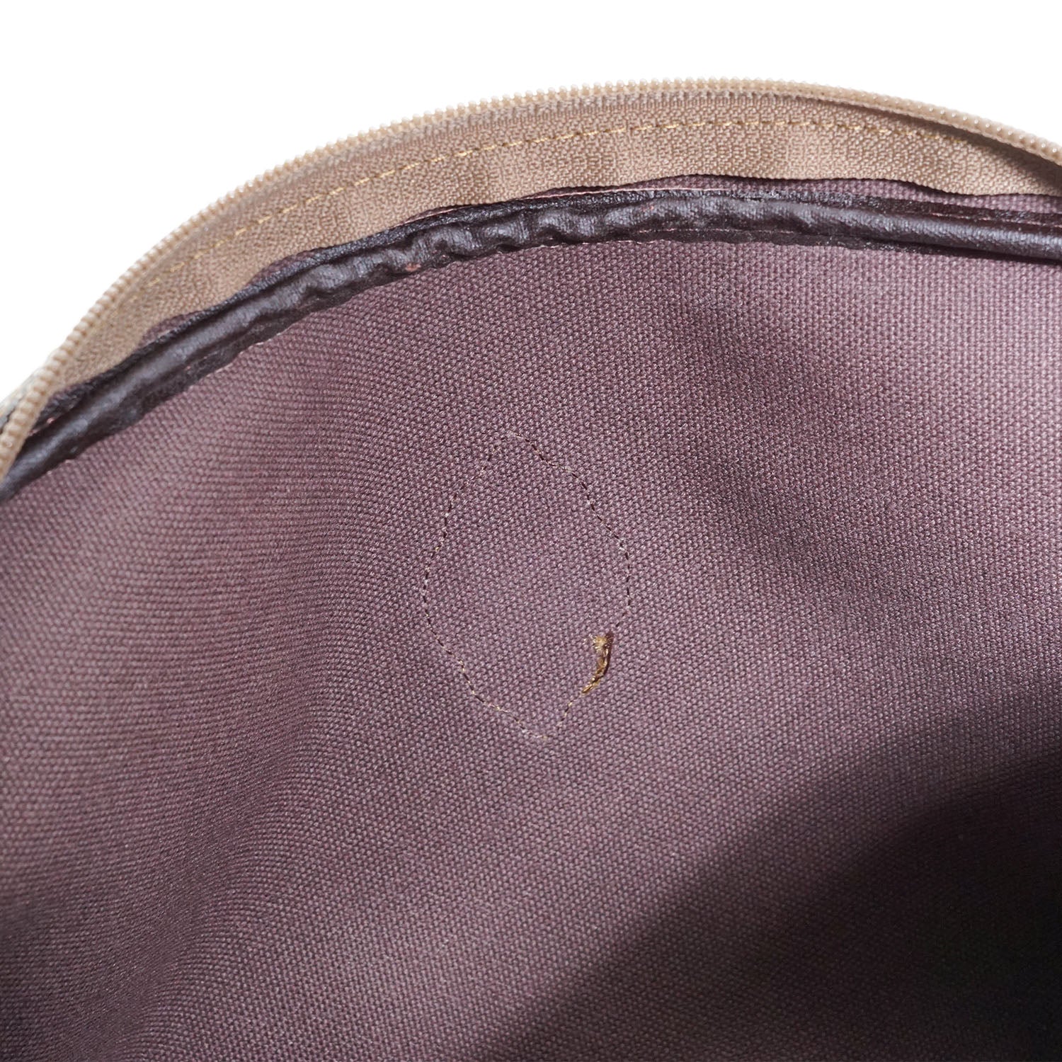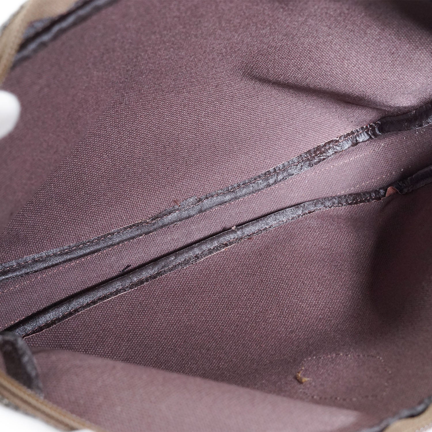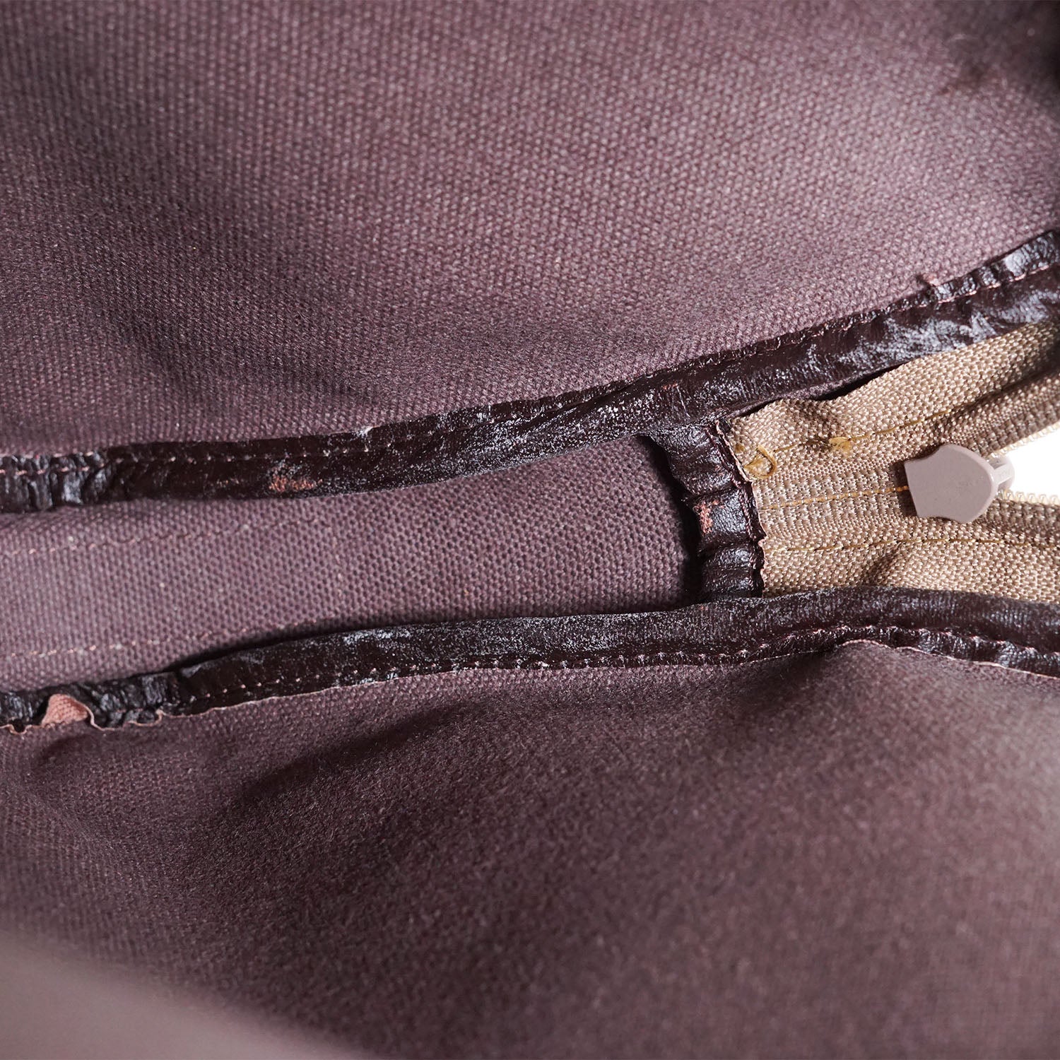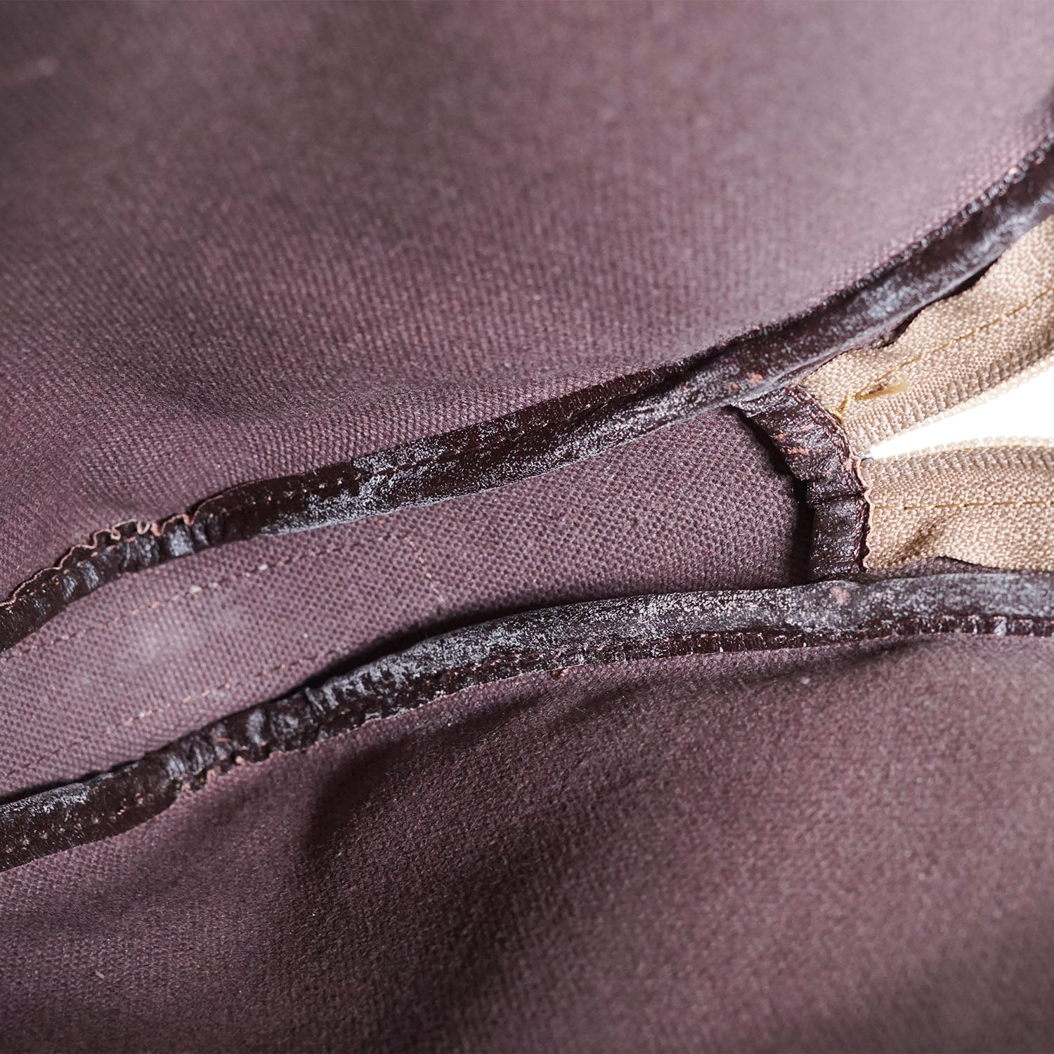 Scratch: Faint rubbing/black discoloration on the leather piping
