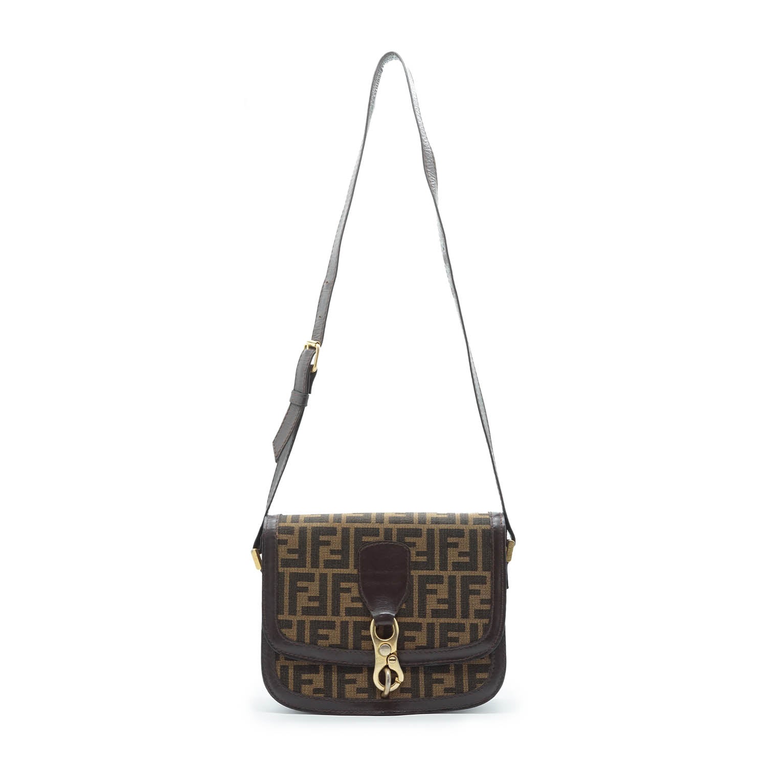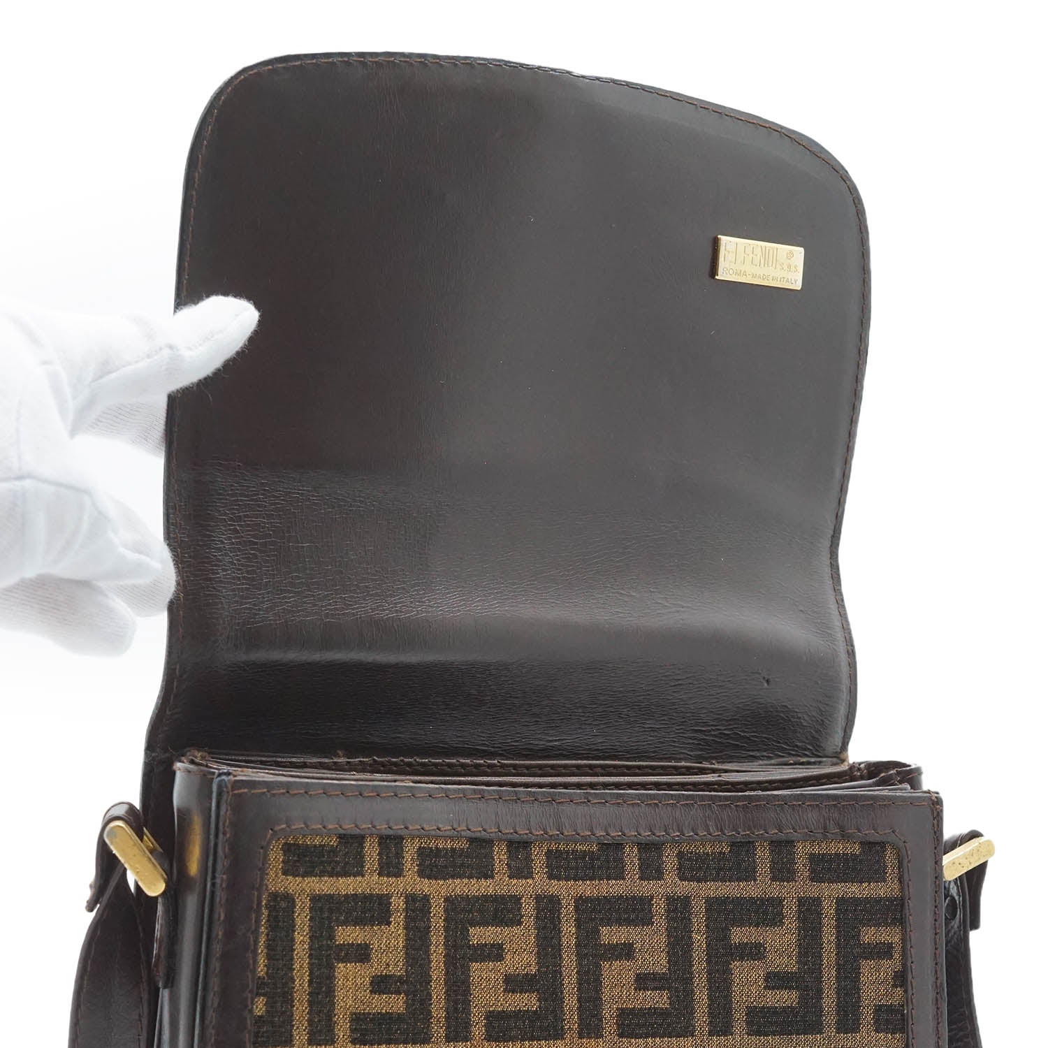 Vintage Zucca Flap Triple Pocket Shoulder Bag Brown Canvas, Leather