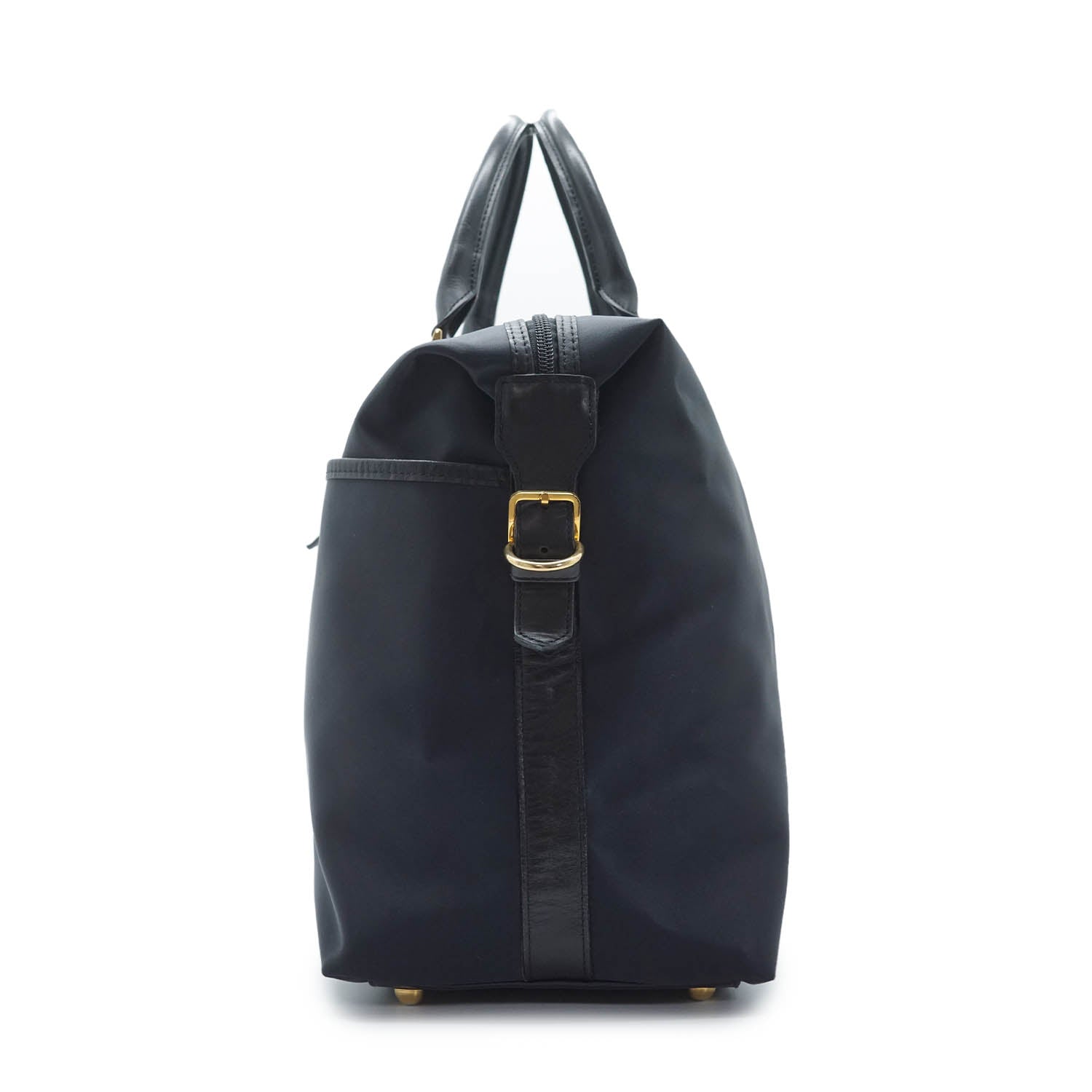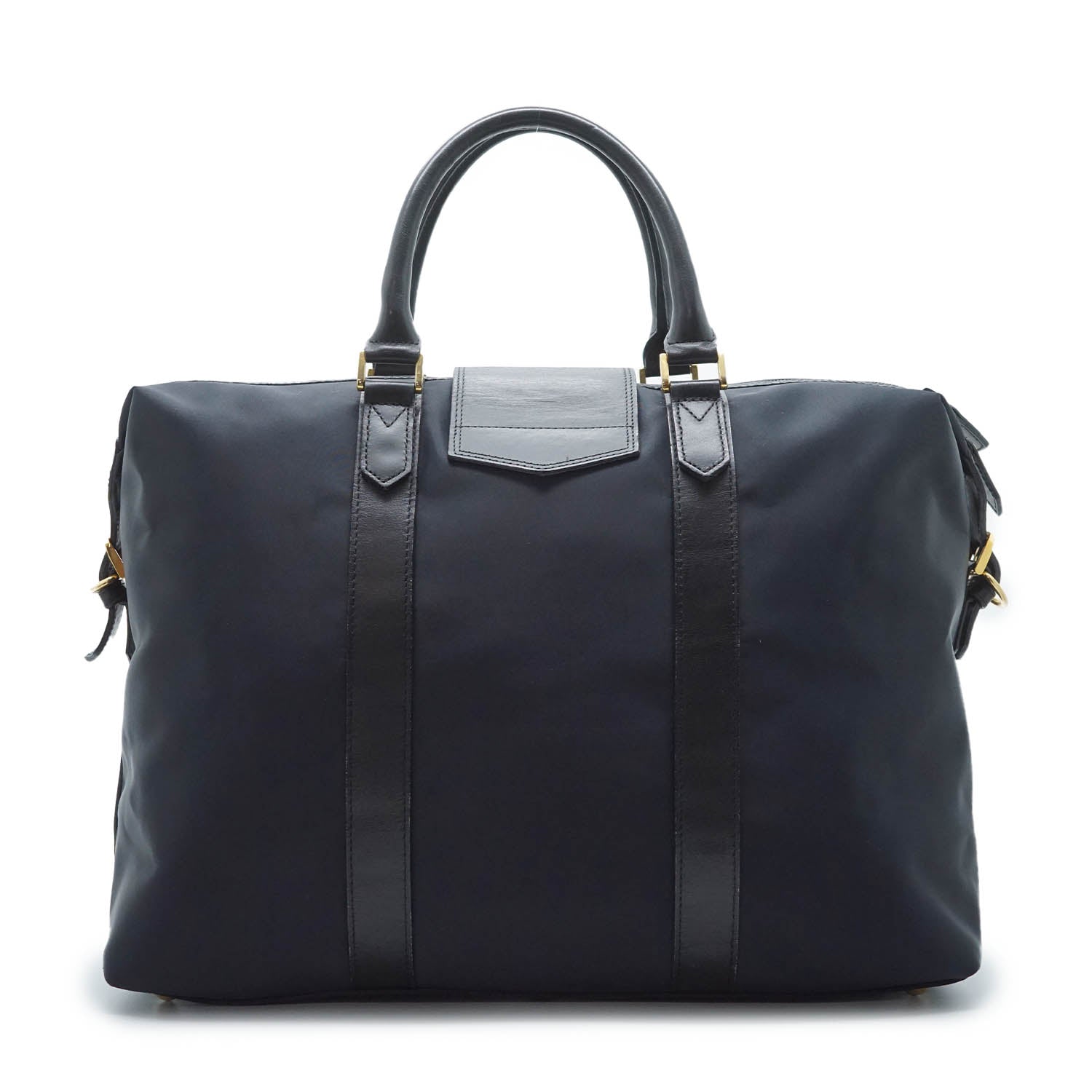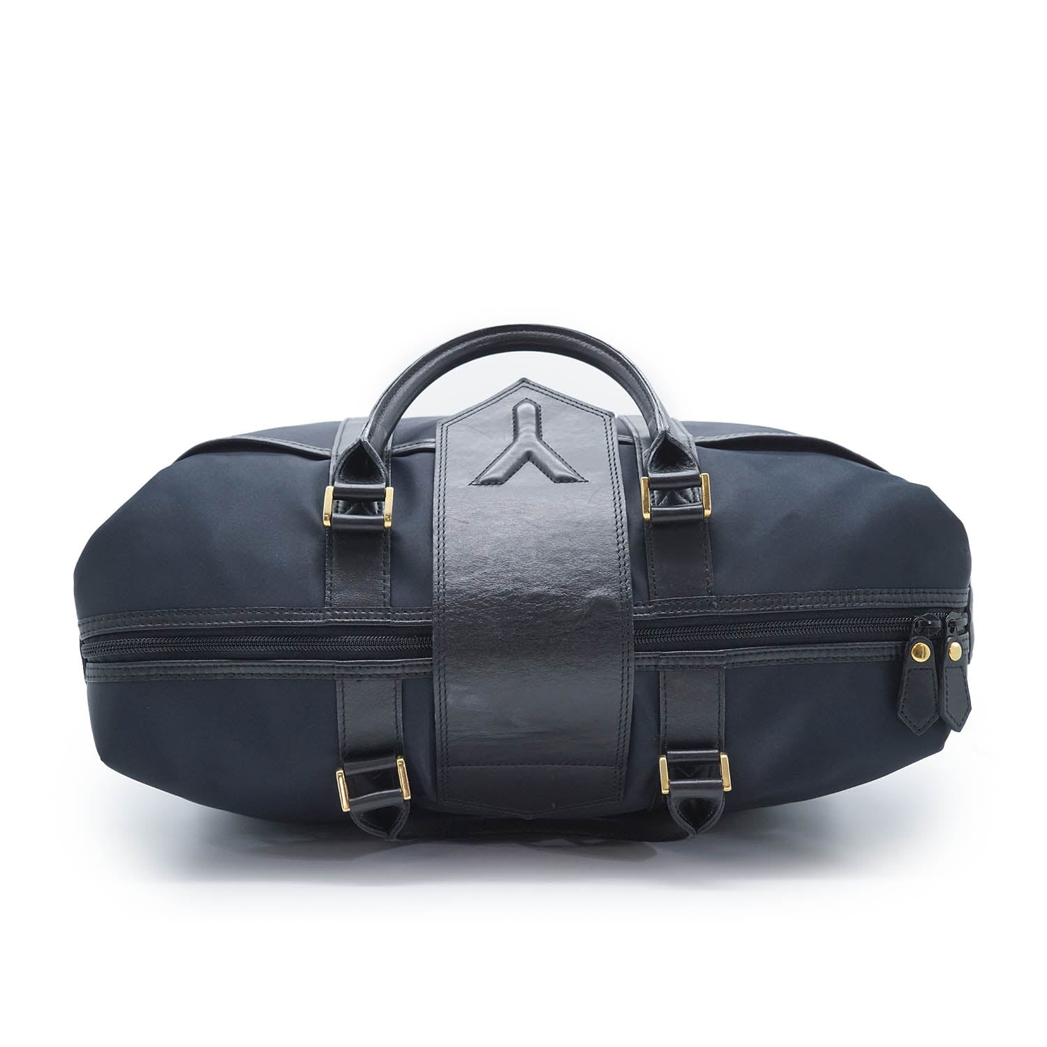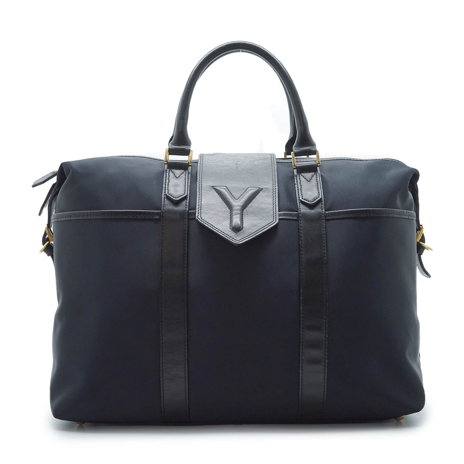 Y Line Flap Boston Bag Black Canvas, Leather