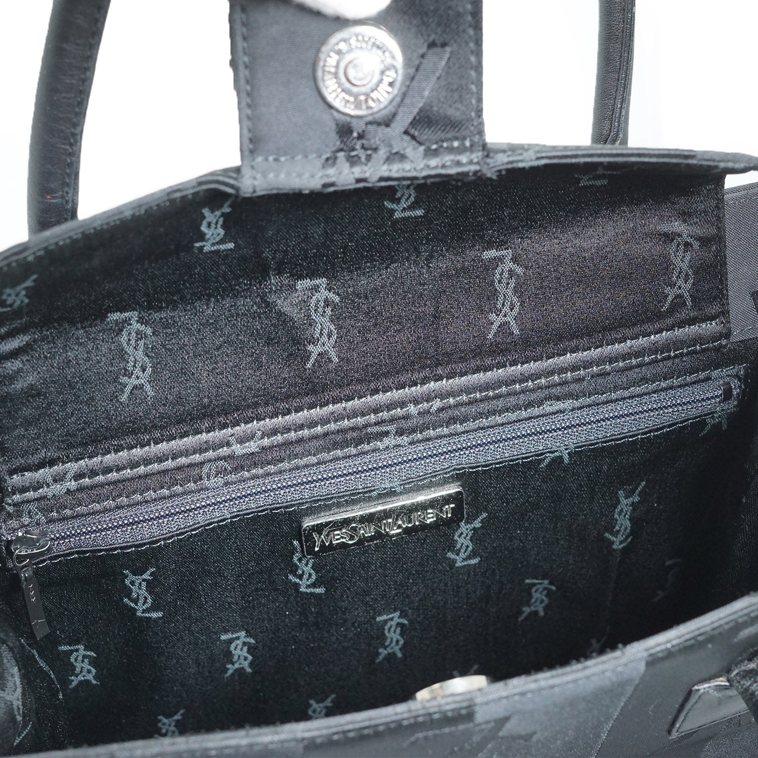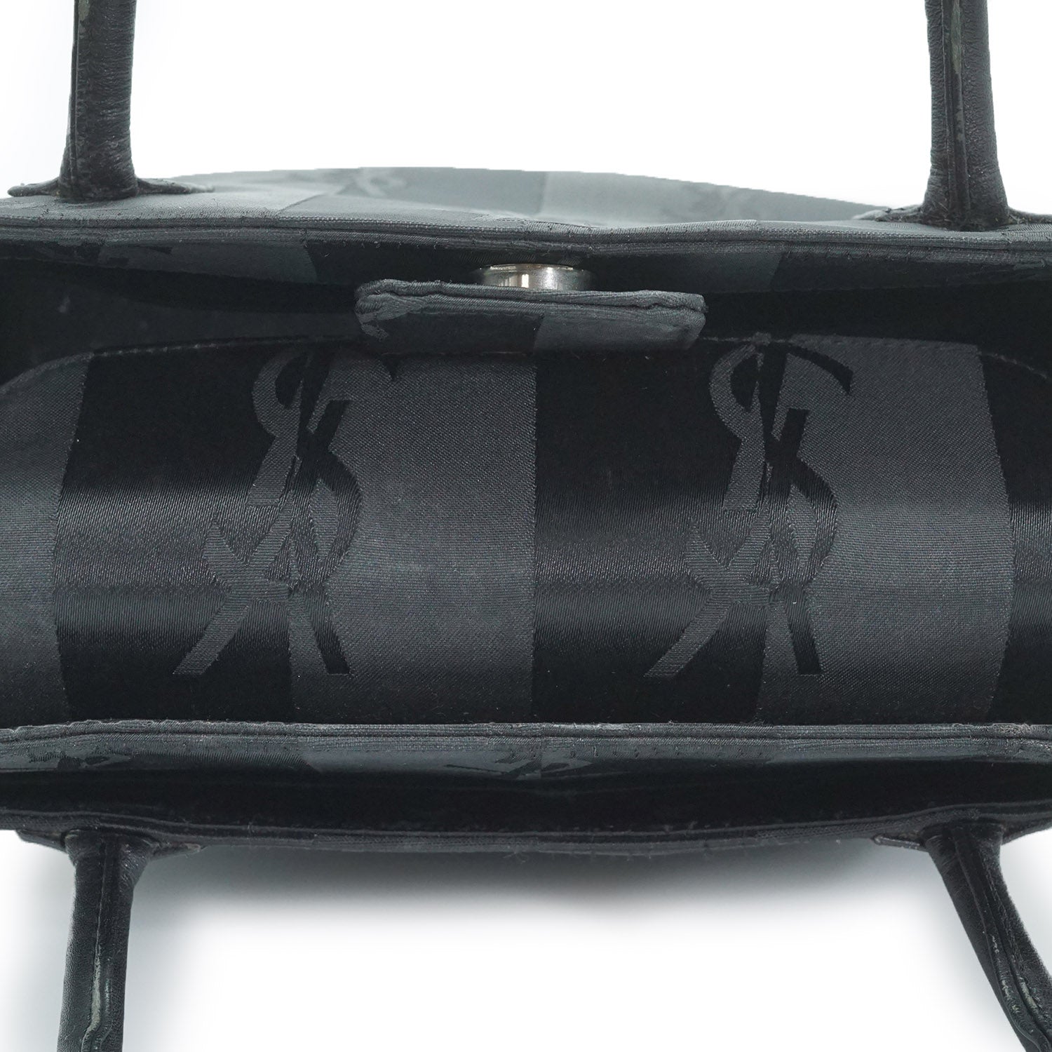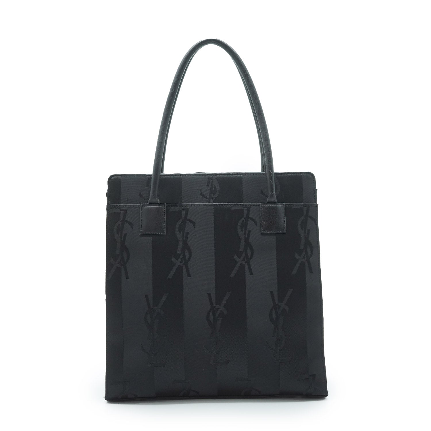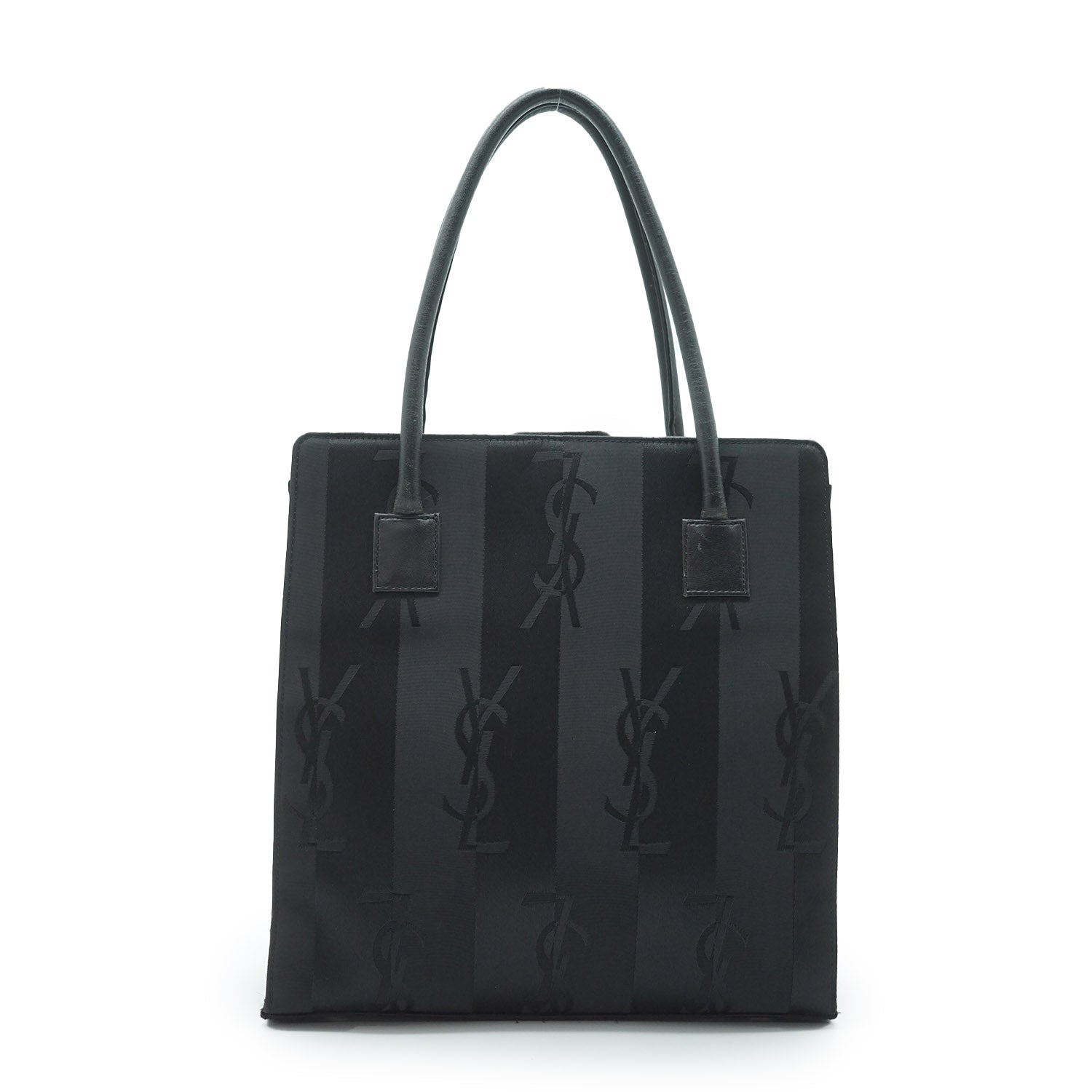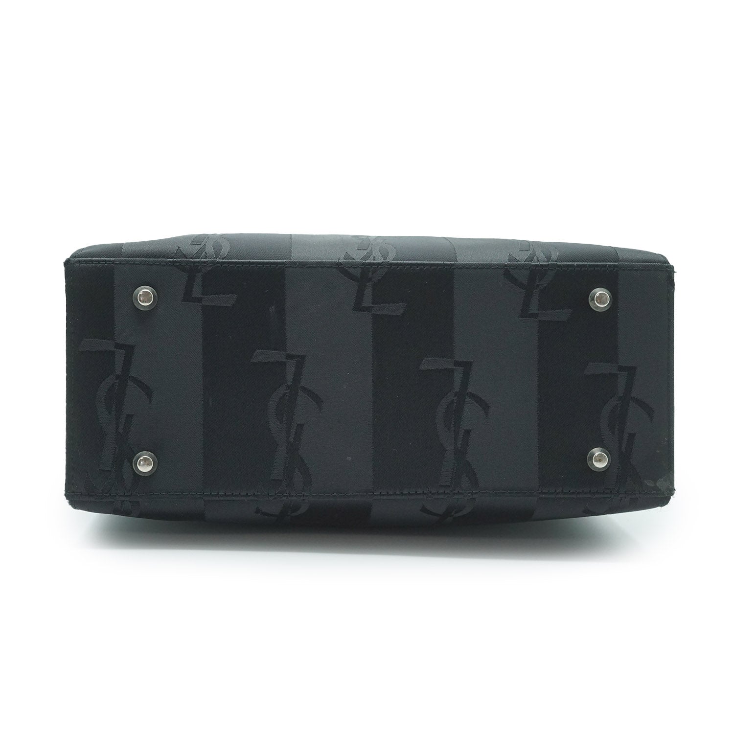 YSL Logo Vertical Stripes Top Handle Bag Black Canvas, Leather