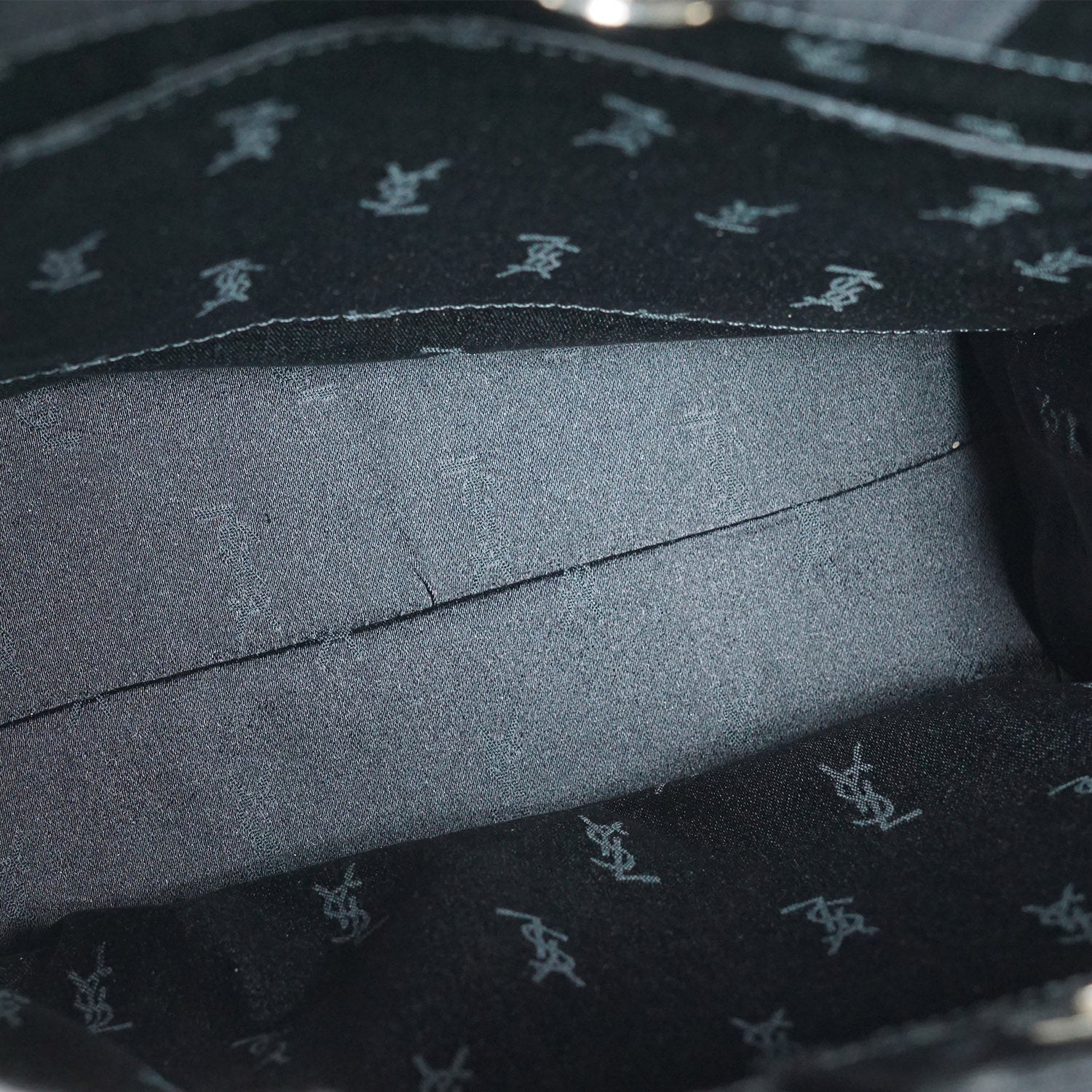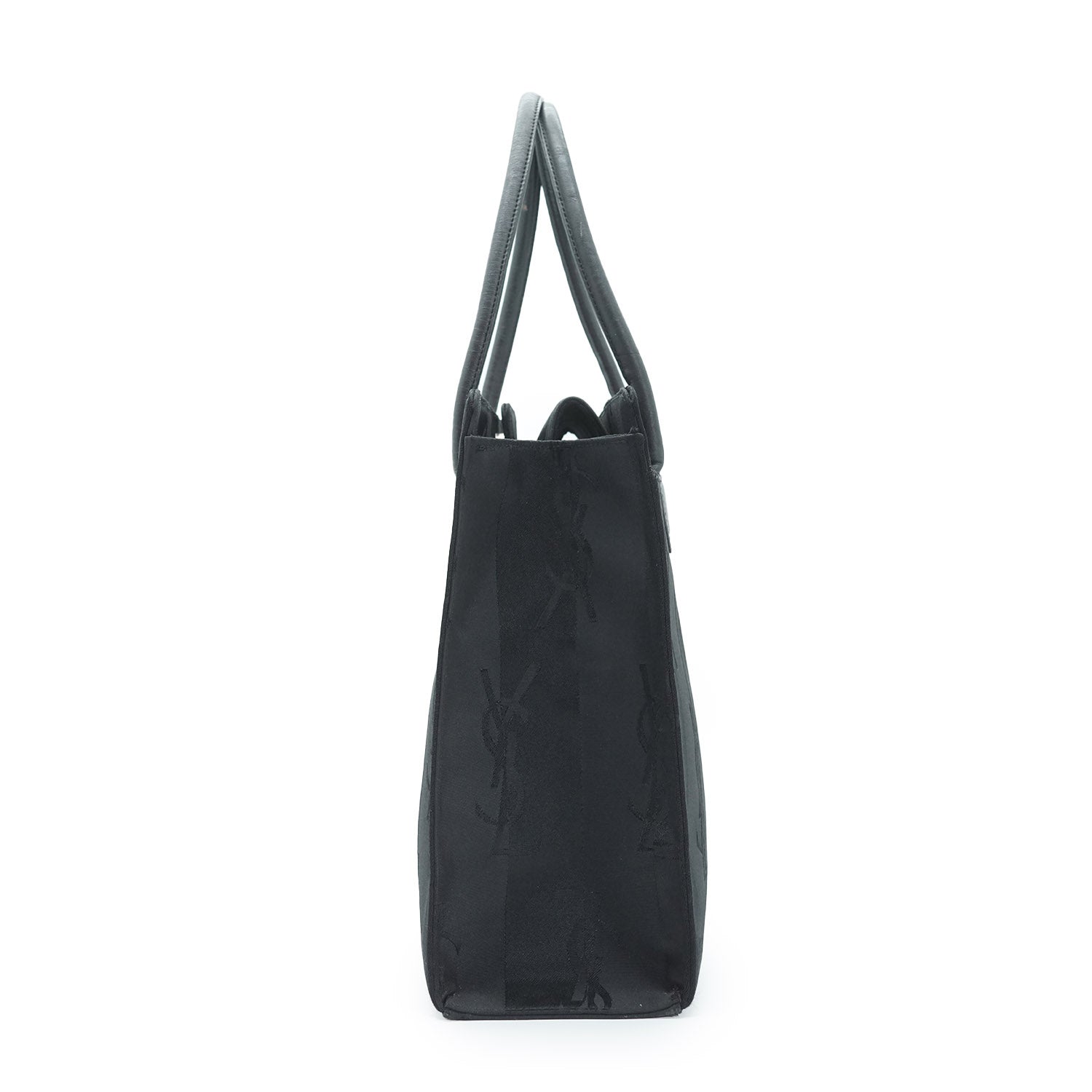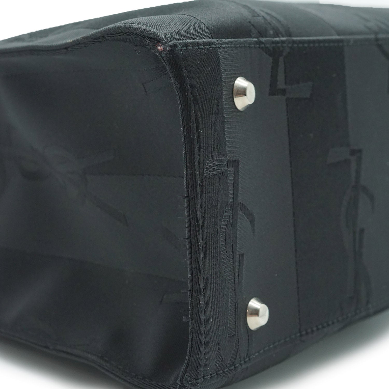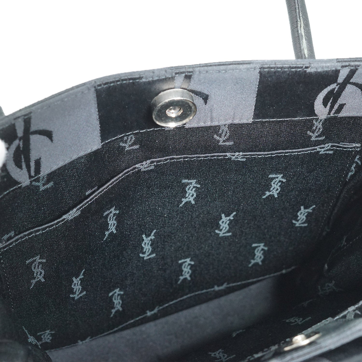 YSL Logo Vertical Stripes Top Handle Bag Black Canvas, Leather