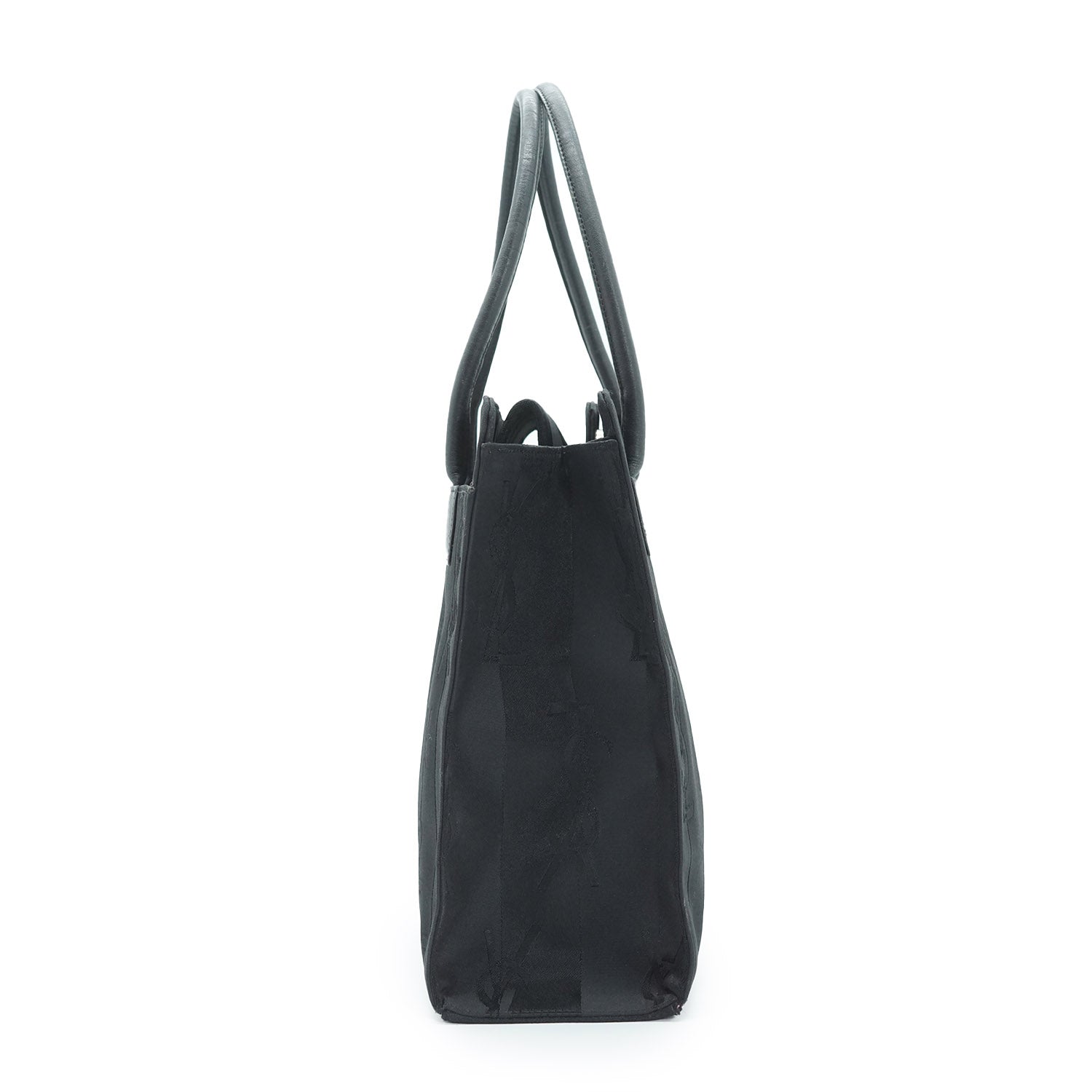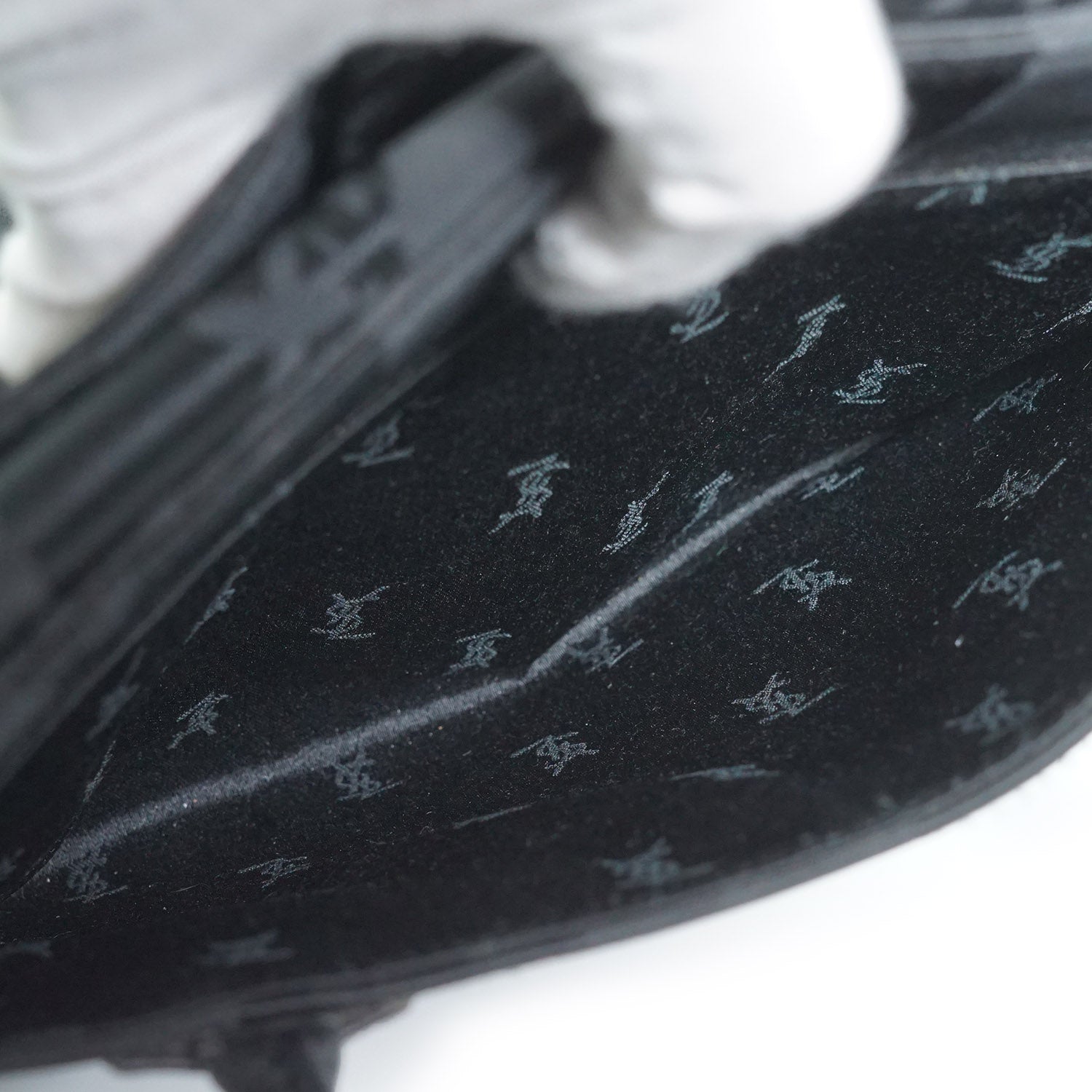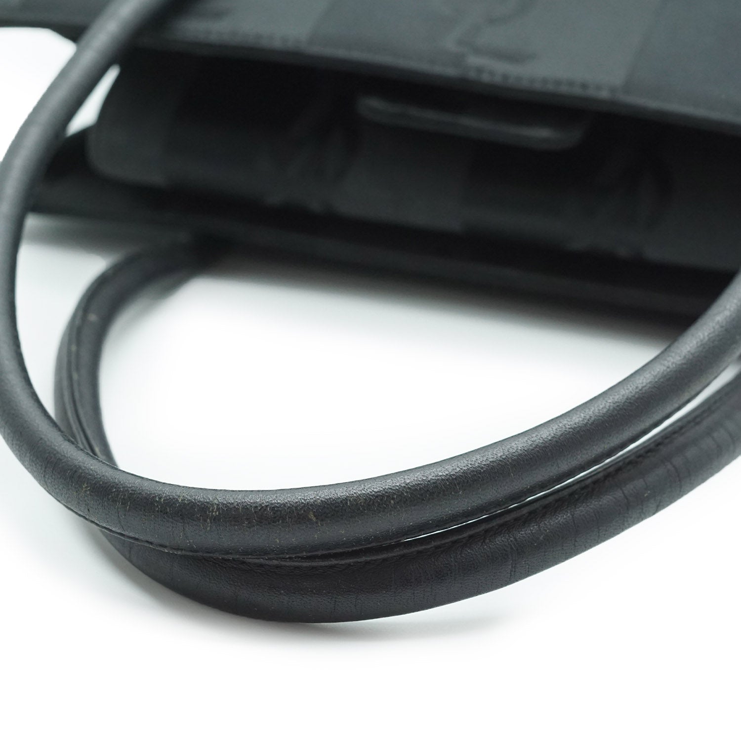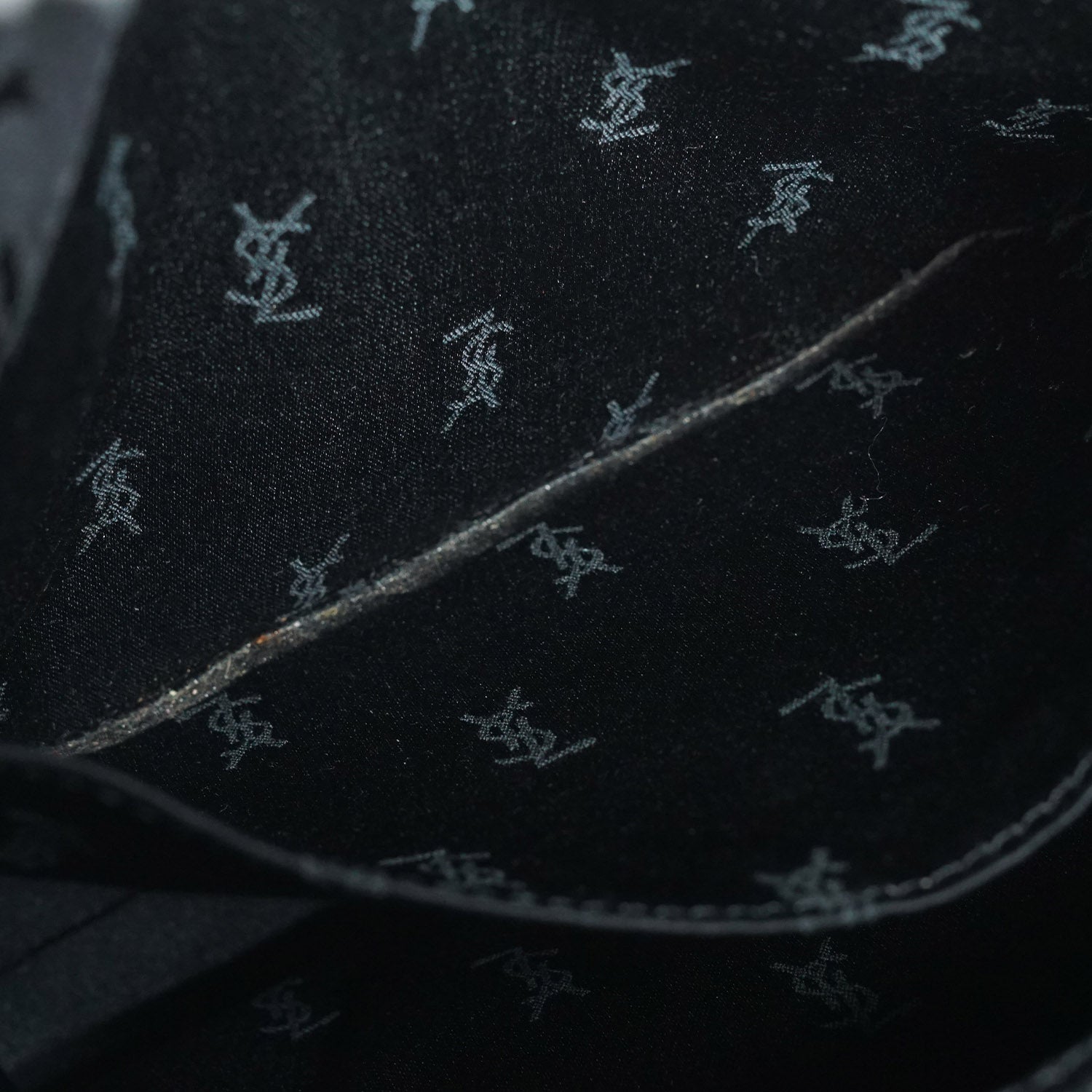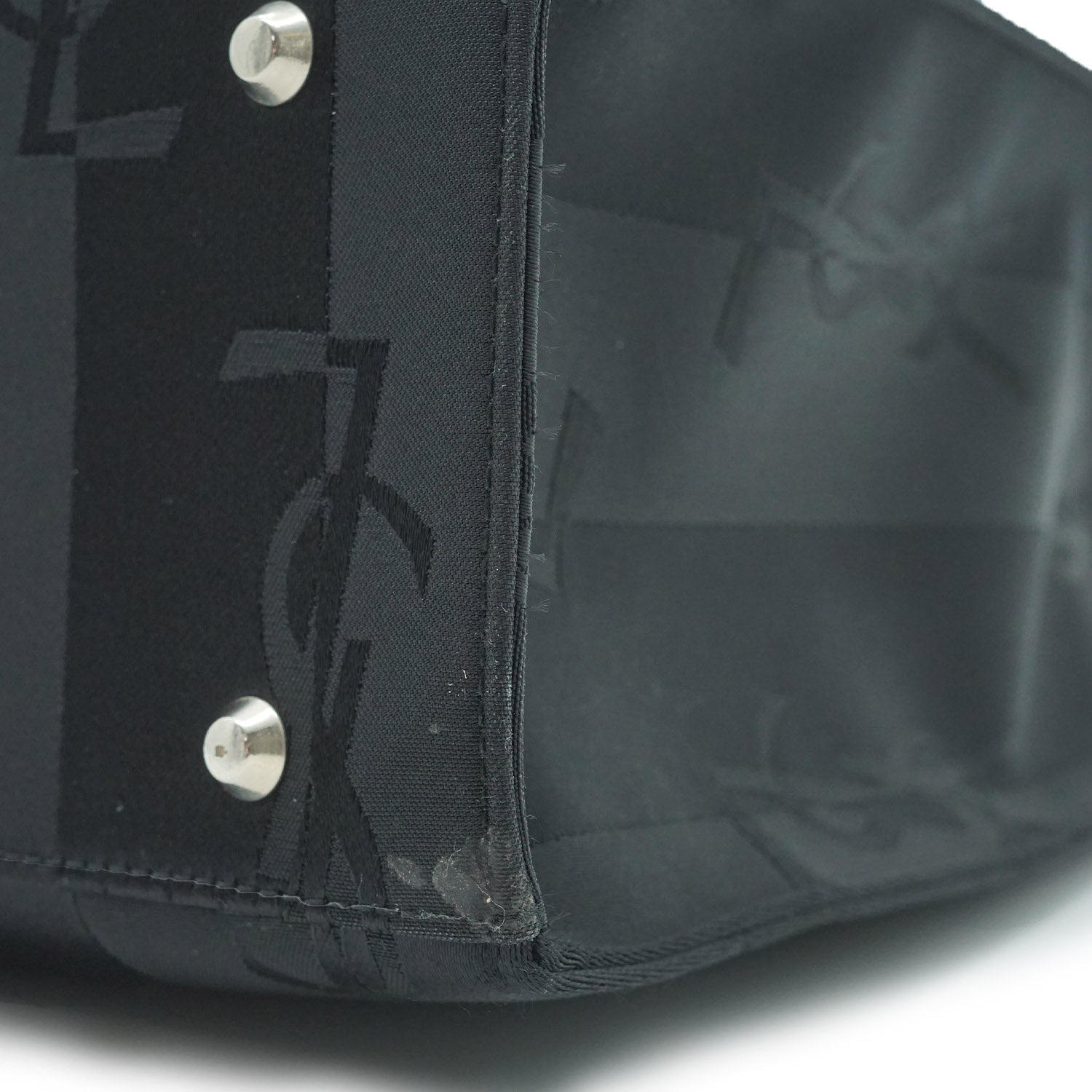 YSL Logo Vertical Stripes Top Handle Bag Black Canvas, Leather