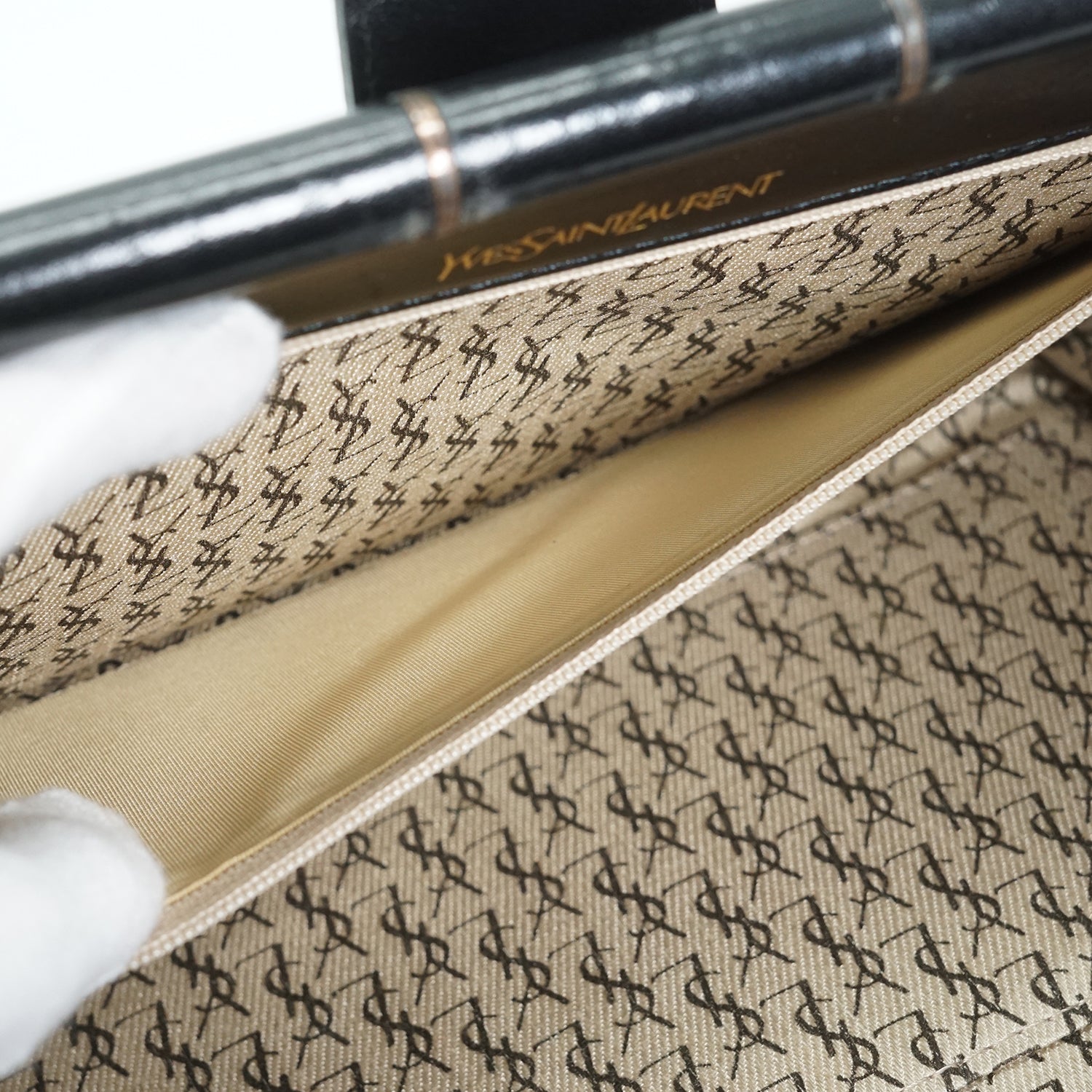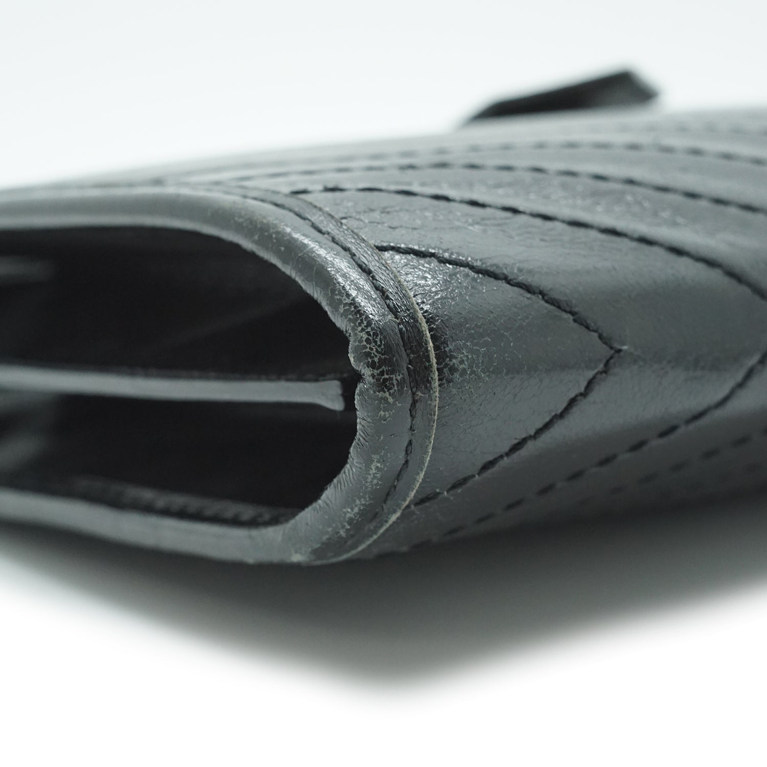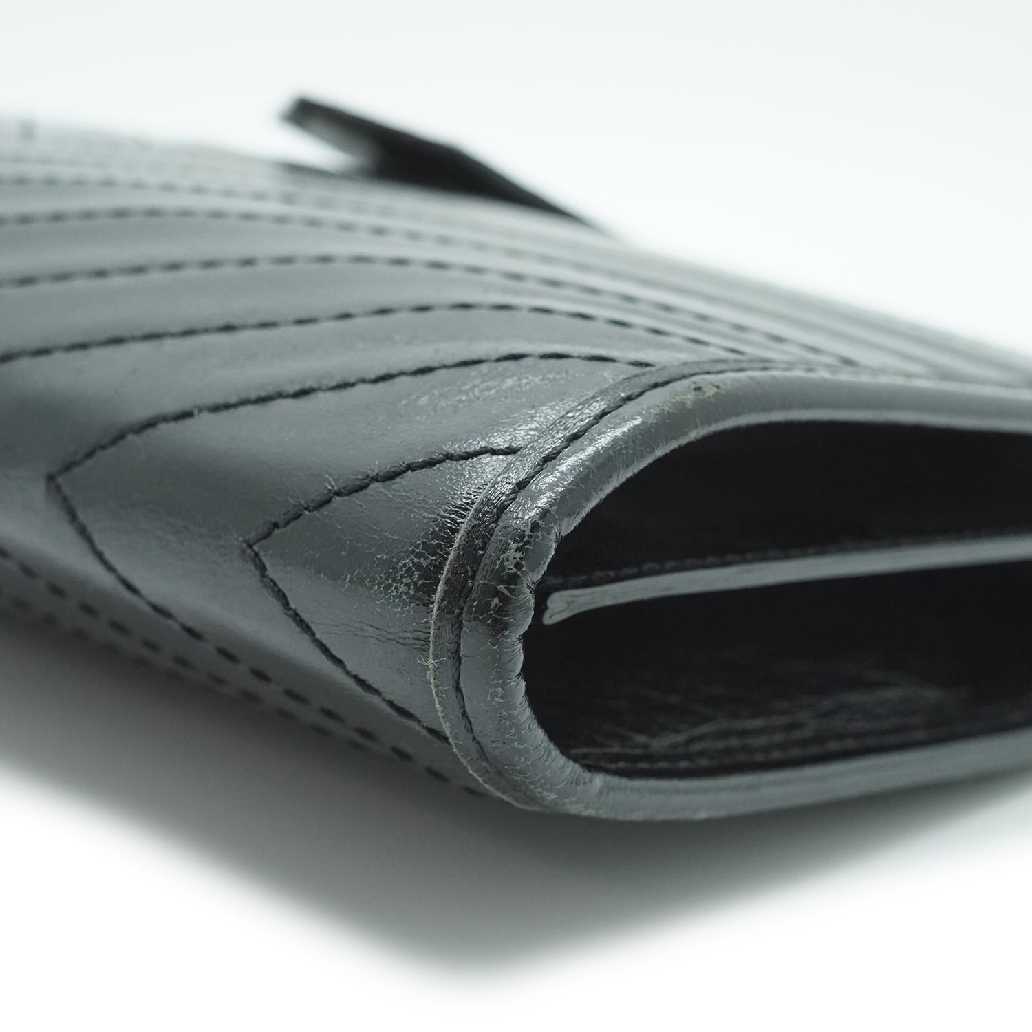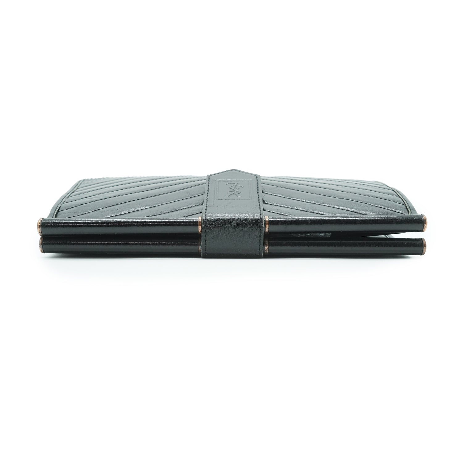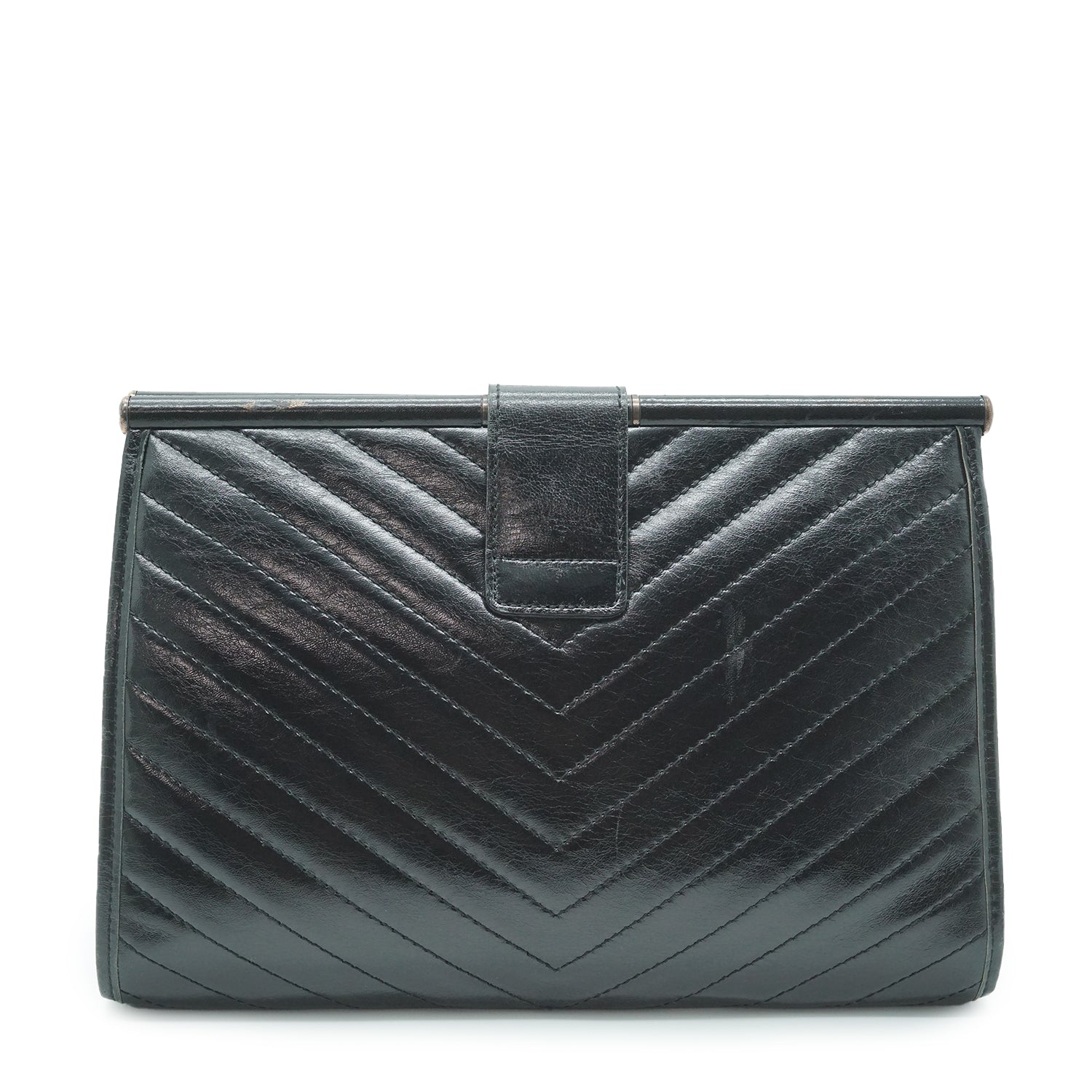 YSL Quilted Embossed Leather Clutch Black Leather