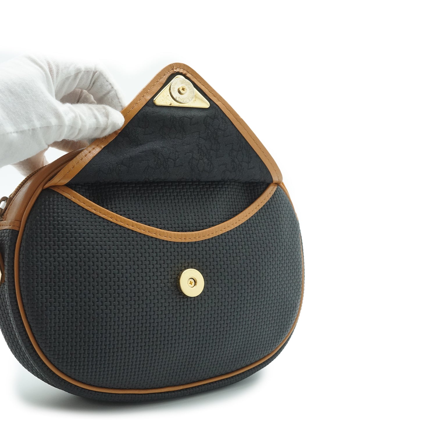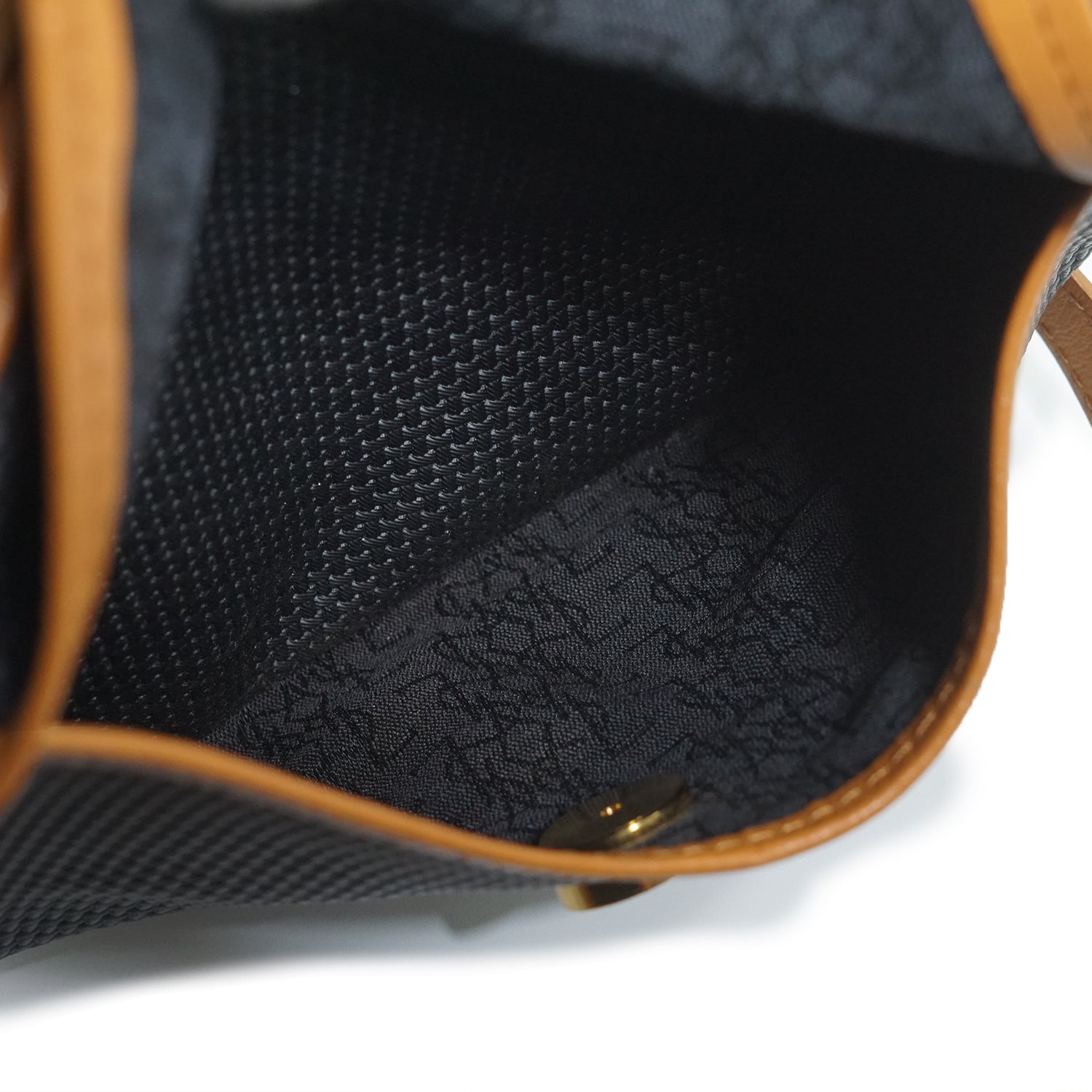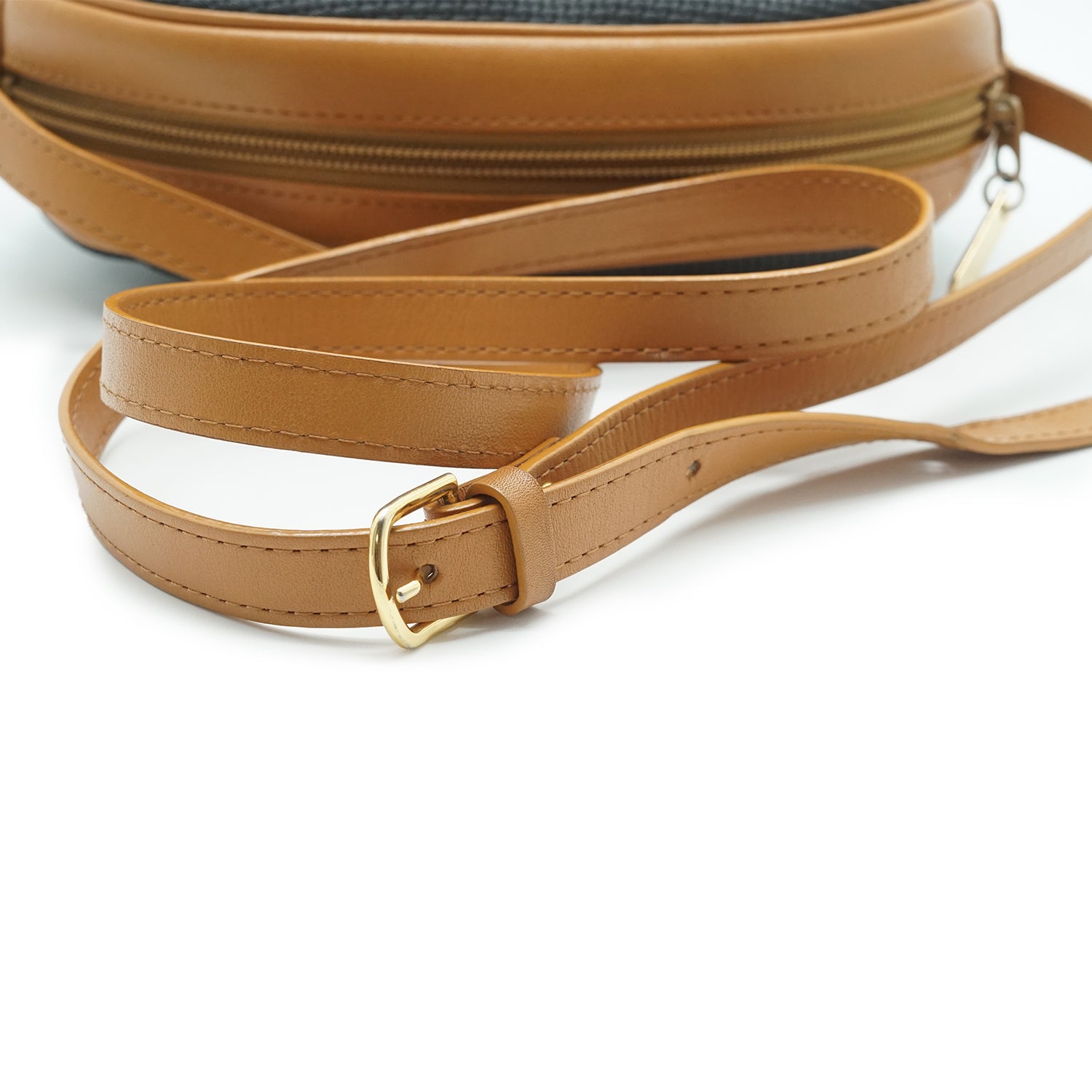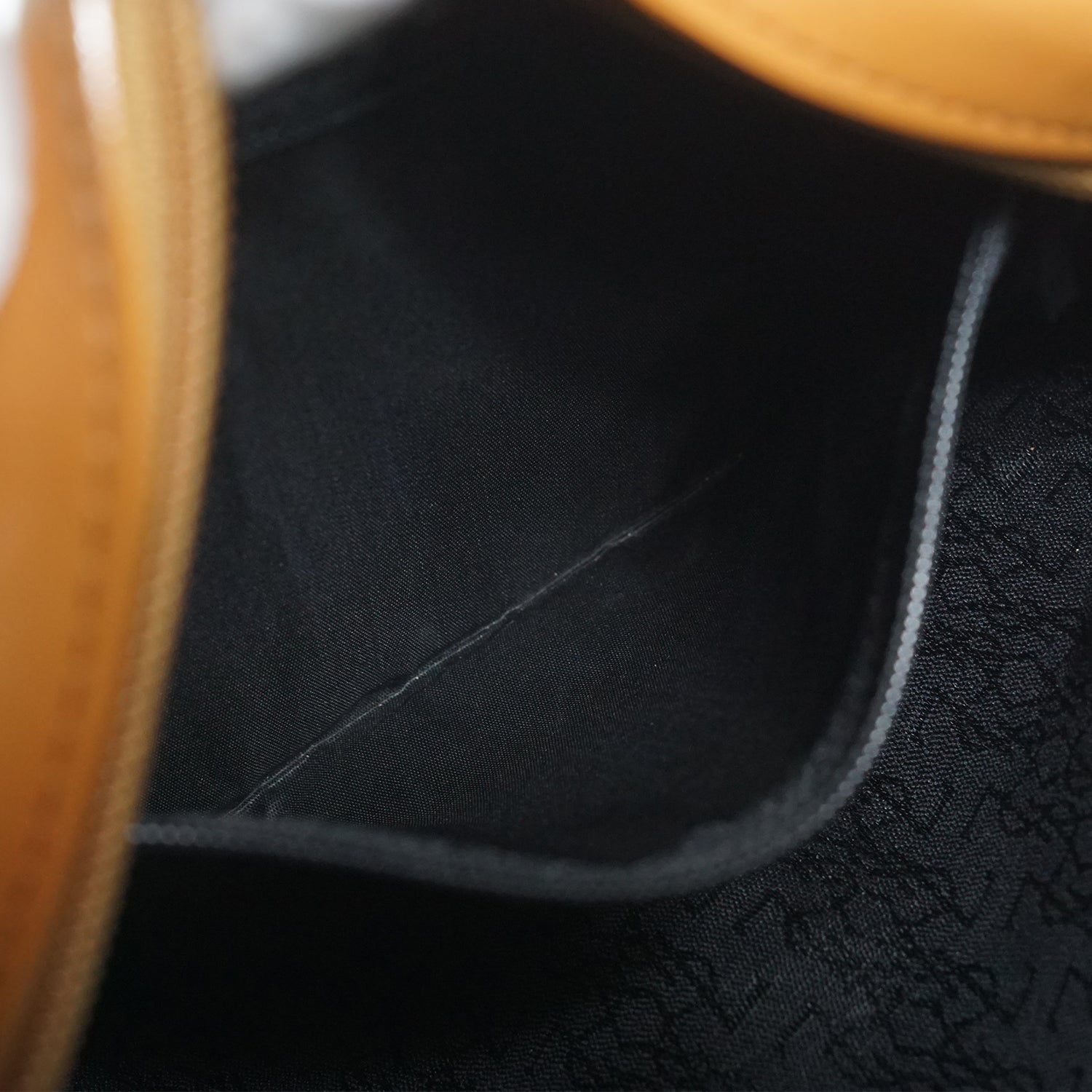 Worn: Some signs of wear on the hardware, with a few loose threads on the inside fabric