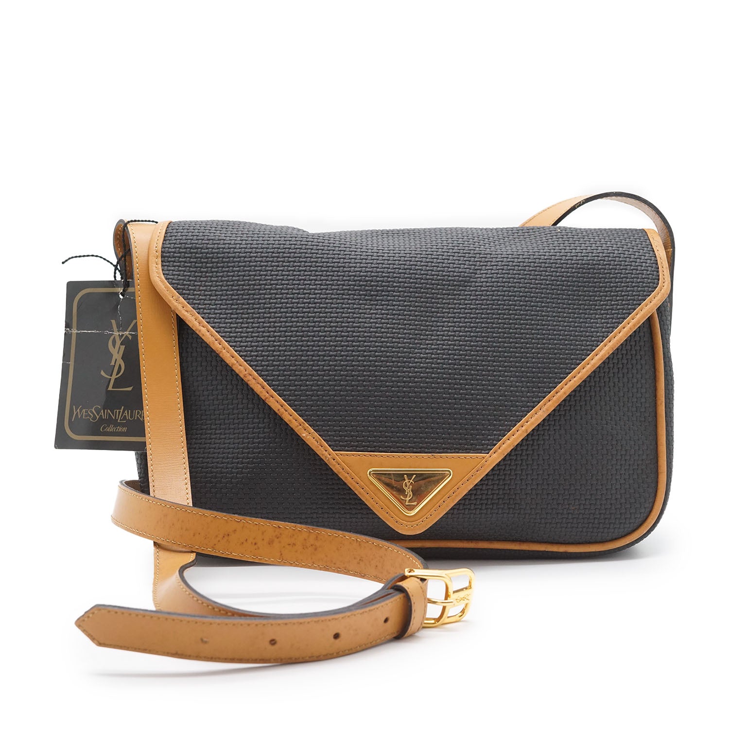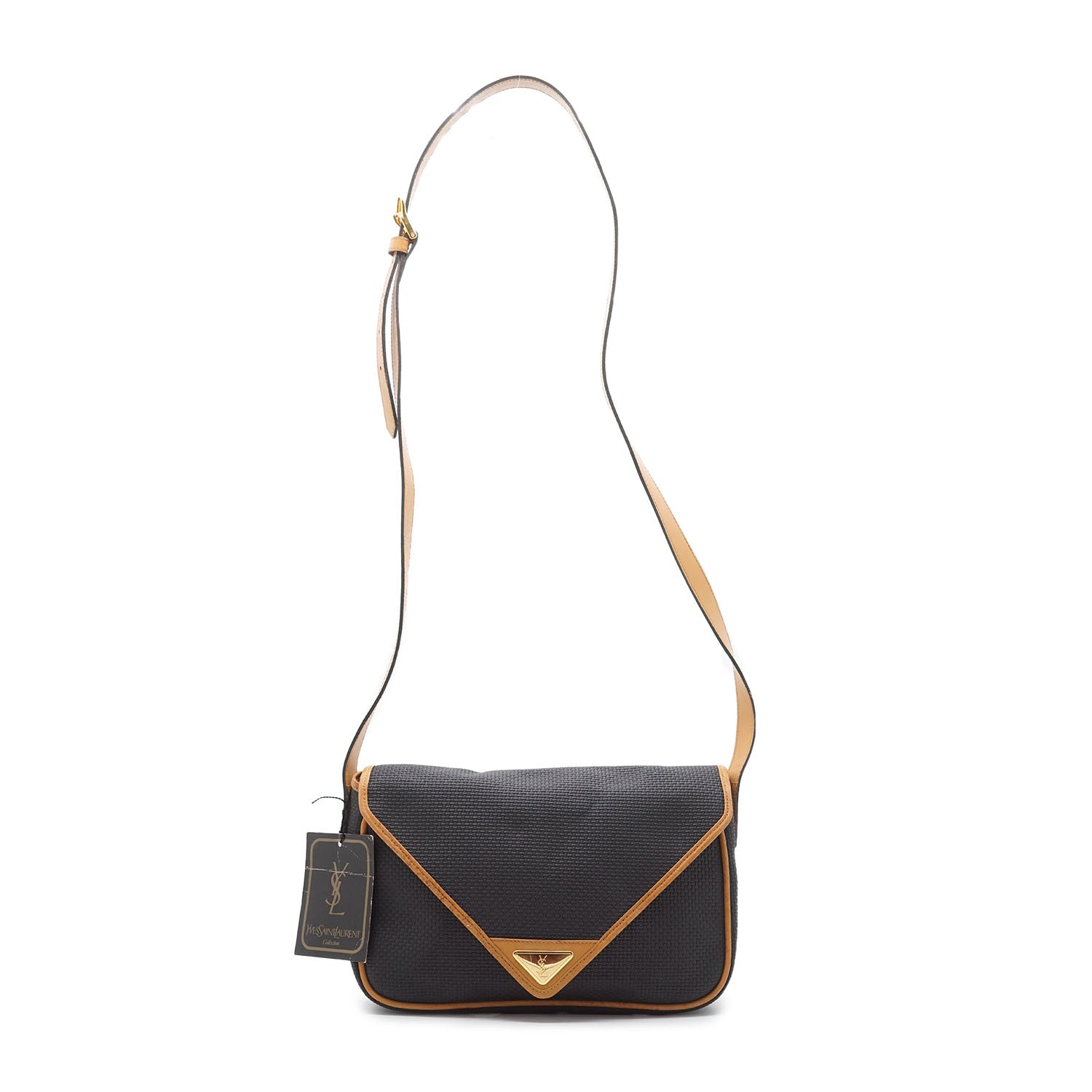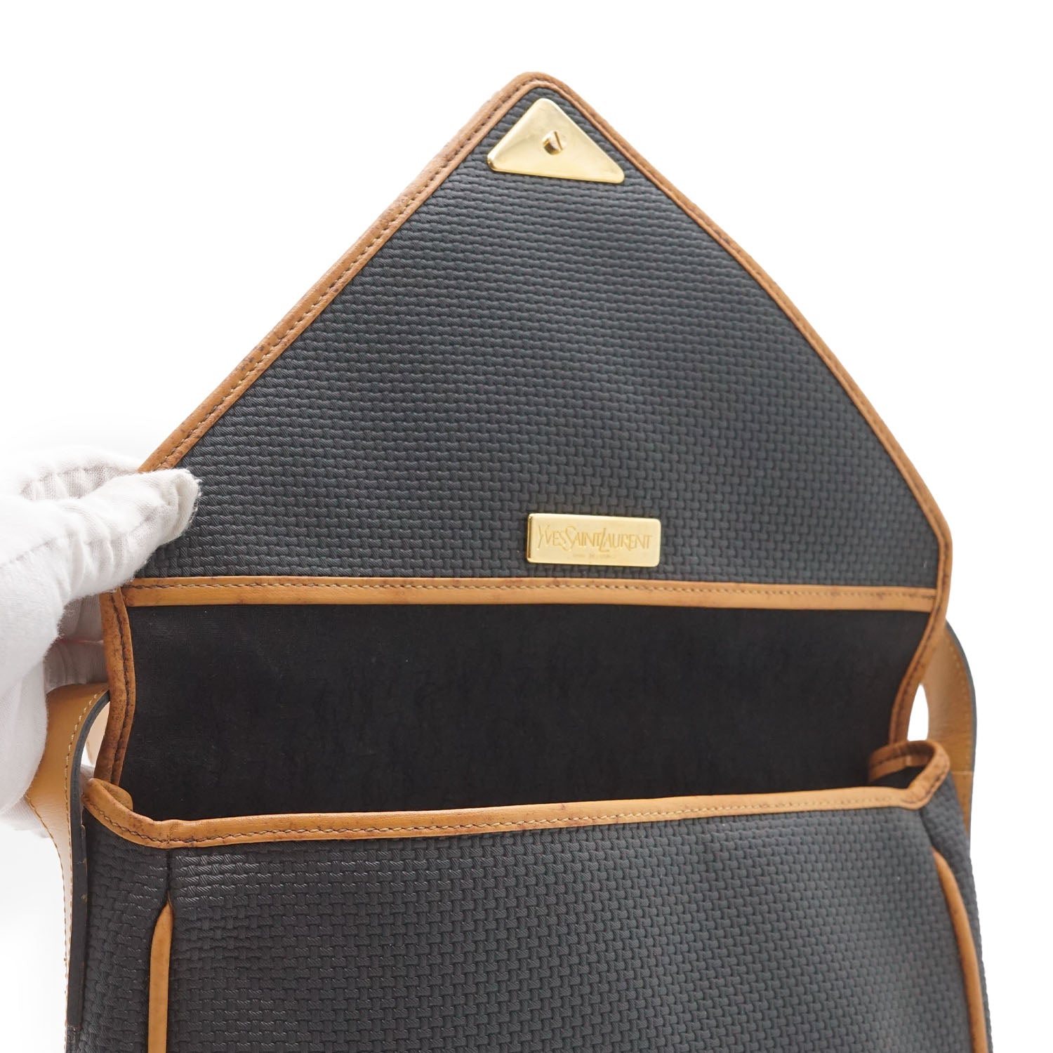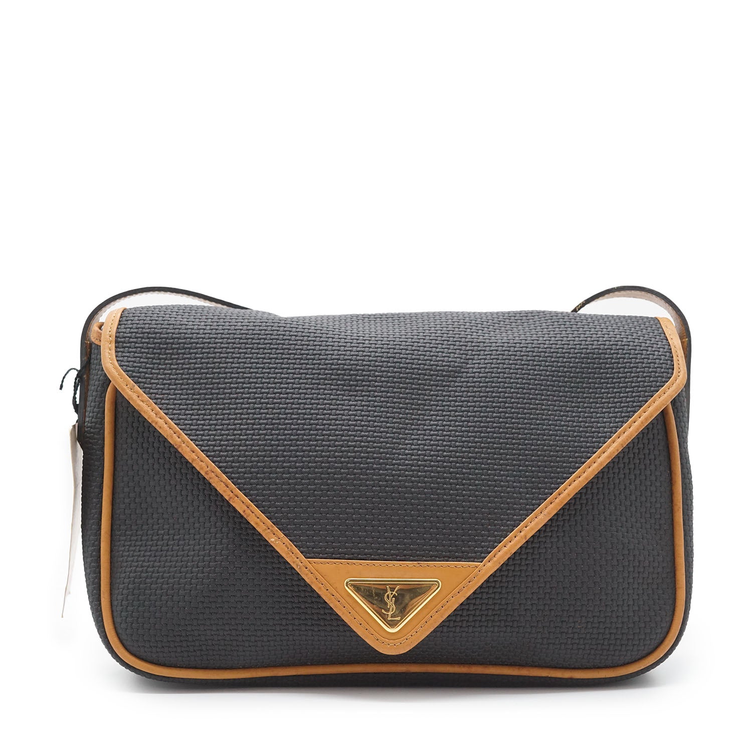 YSL Vintage Crossbody Bag Black Canvas, Leather
