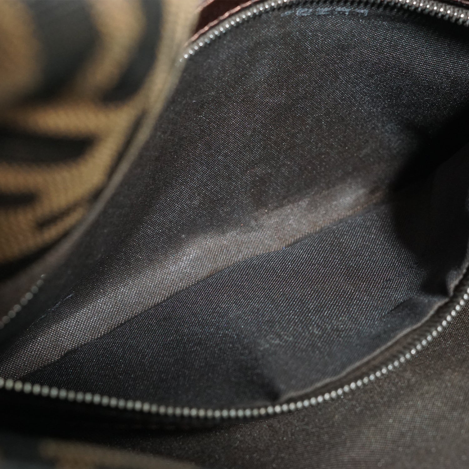 Discoloration: Noticeable hardware tarnish, minor discoloration throughout the inside fabric and on the leather parts