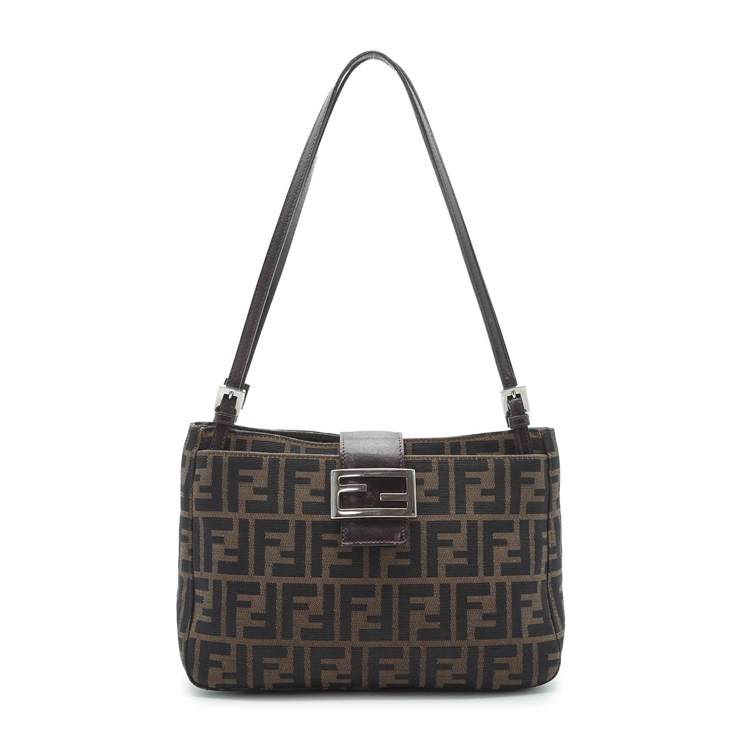 Zucca Canvas Shoulder Bag Brown Canvas, Leather